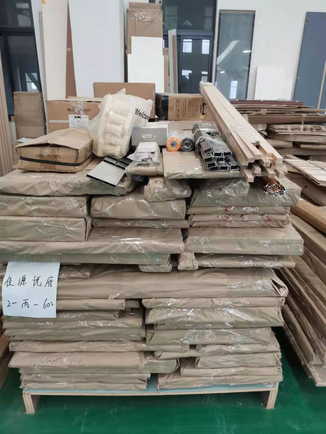 打包完成的板材堆放在一起