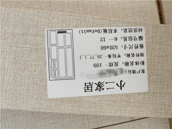 我家不管大小板都是四面封邊哦!每塊板上都貼有小標簽,方便后期安裝師傅安裝。