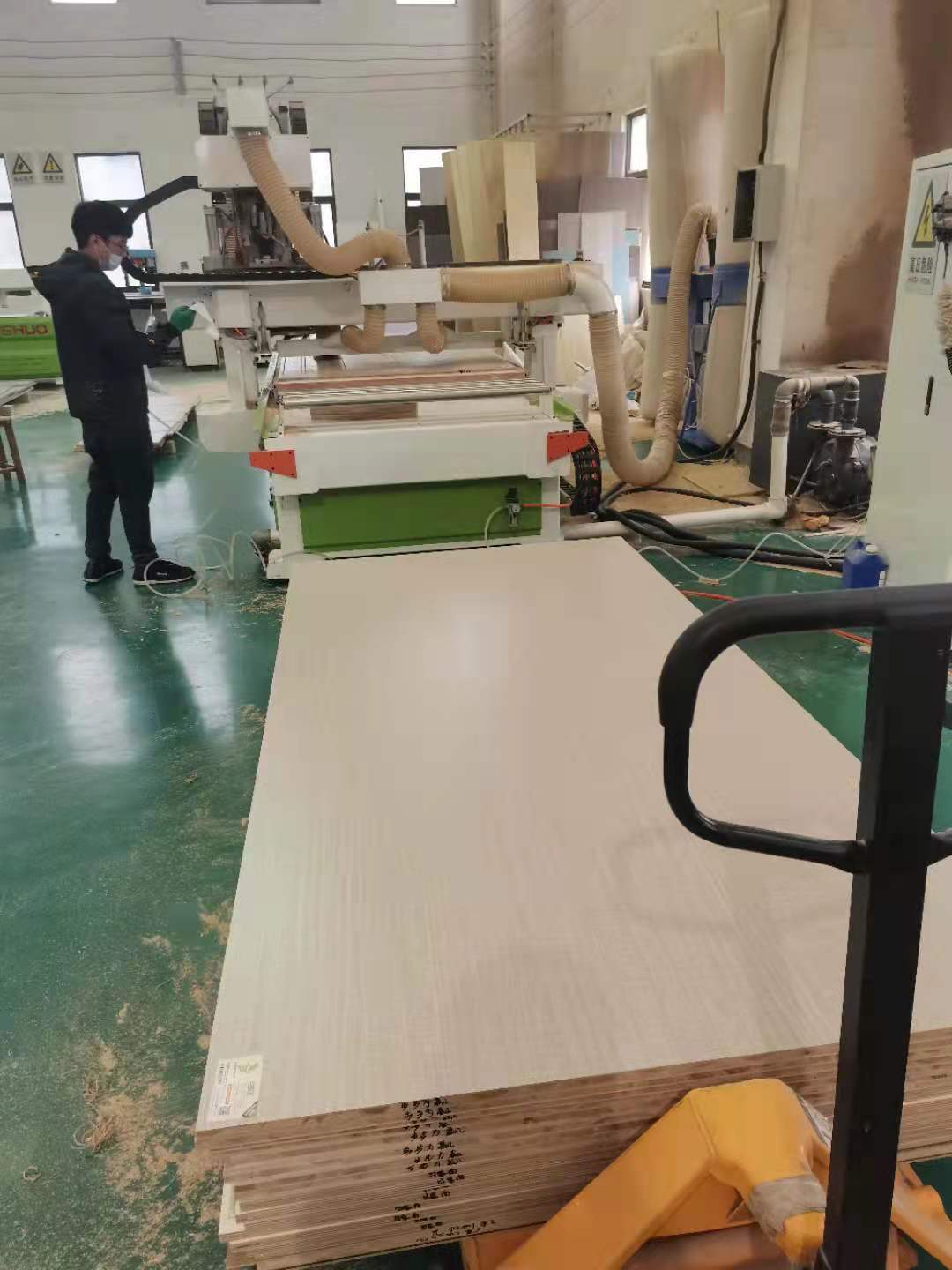 正在進行開料裁板啦,專業設備全自動生產