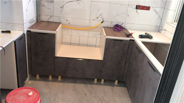 柜子安裝好后進入臺面測量環節,臺面量完后一個星期內送貨并安裝。