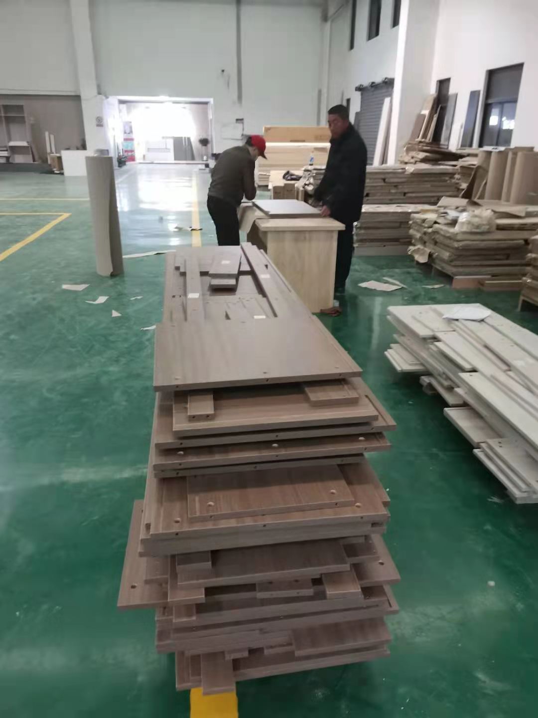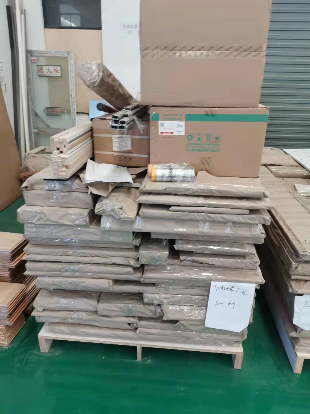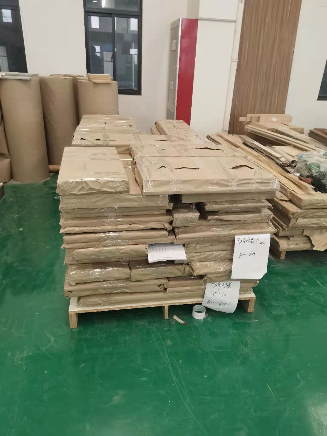 打包完成的板材堆放在一起