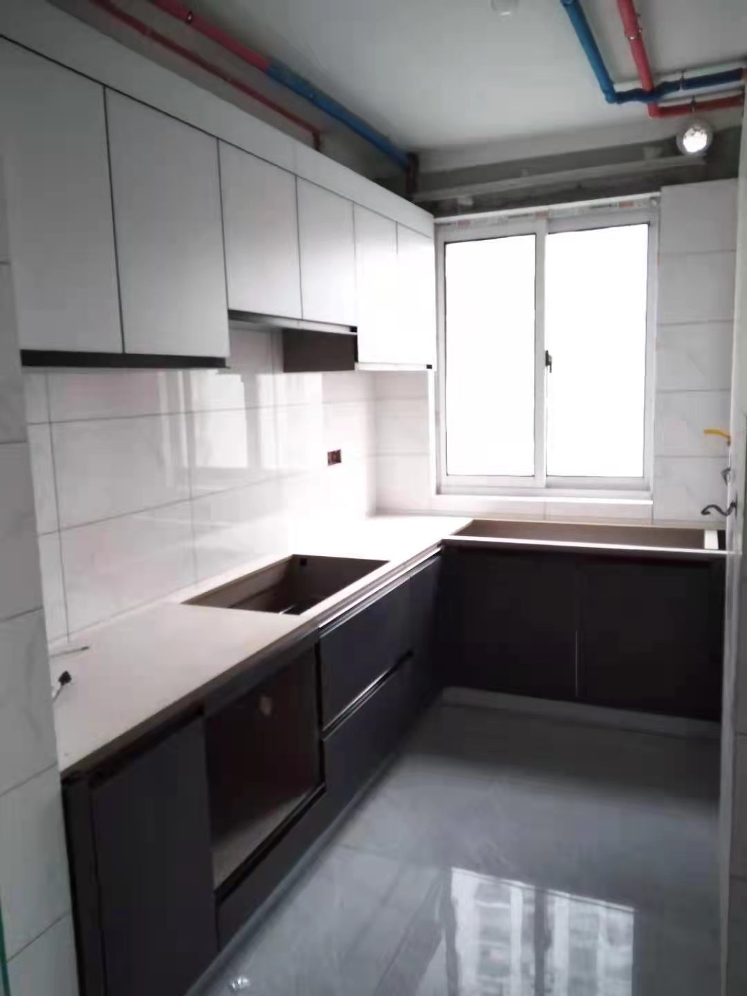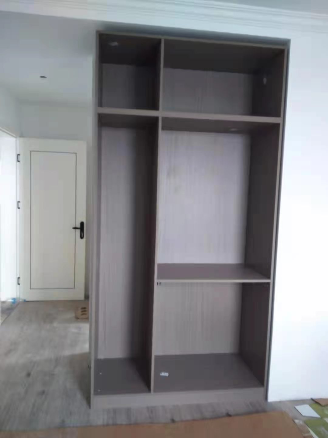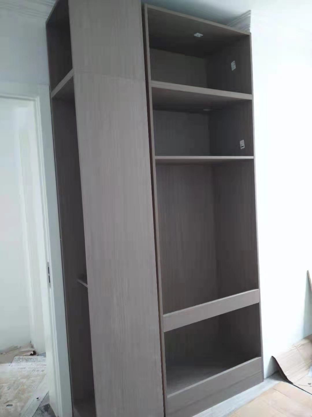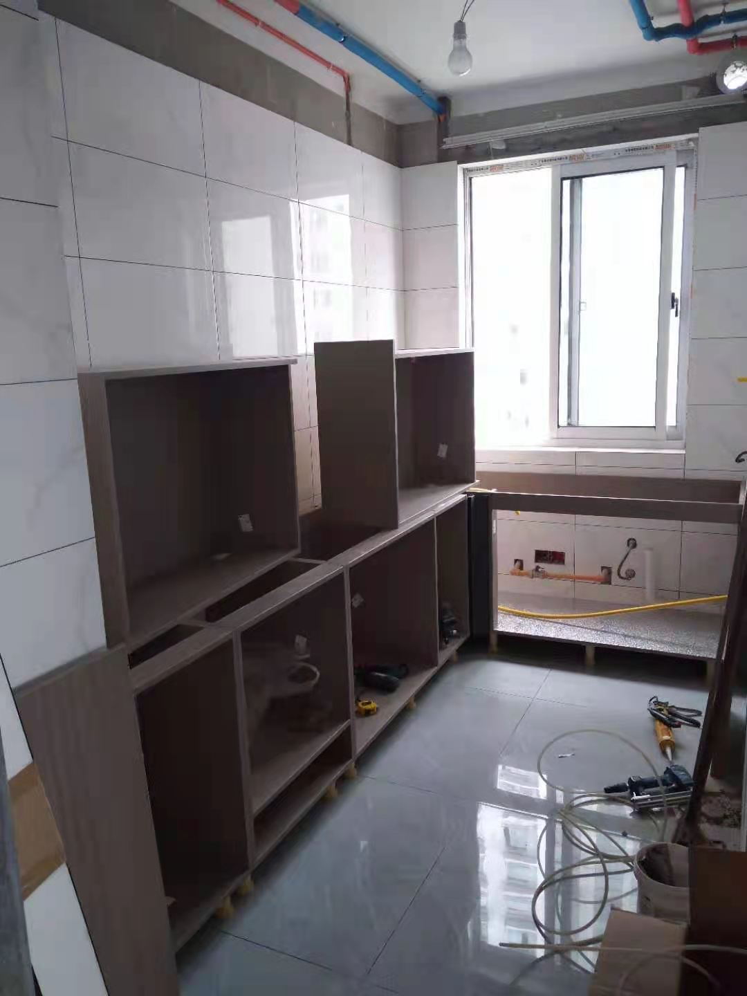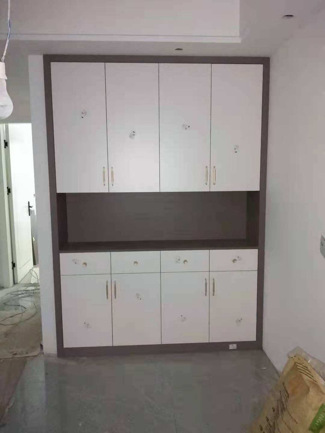 柜體安裝初步完成,業主家柜體顏色色調統一,高級感的灰調,把家居環境營造的更典雅,期待柜門安裝上的效果。
