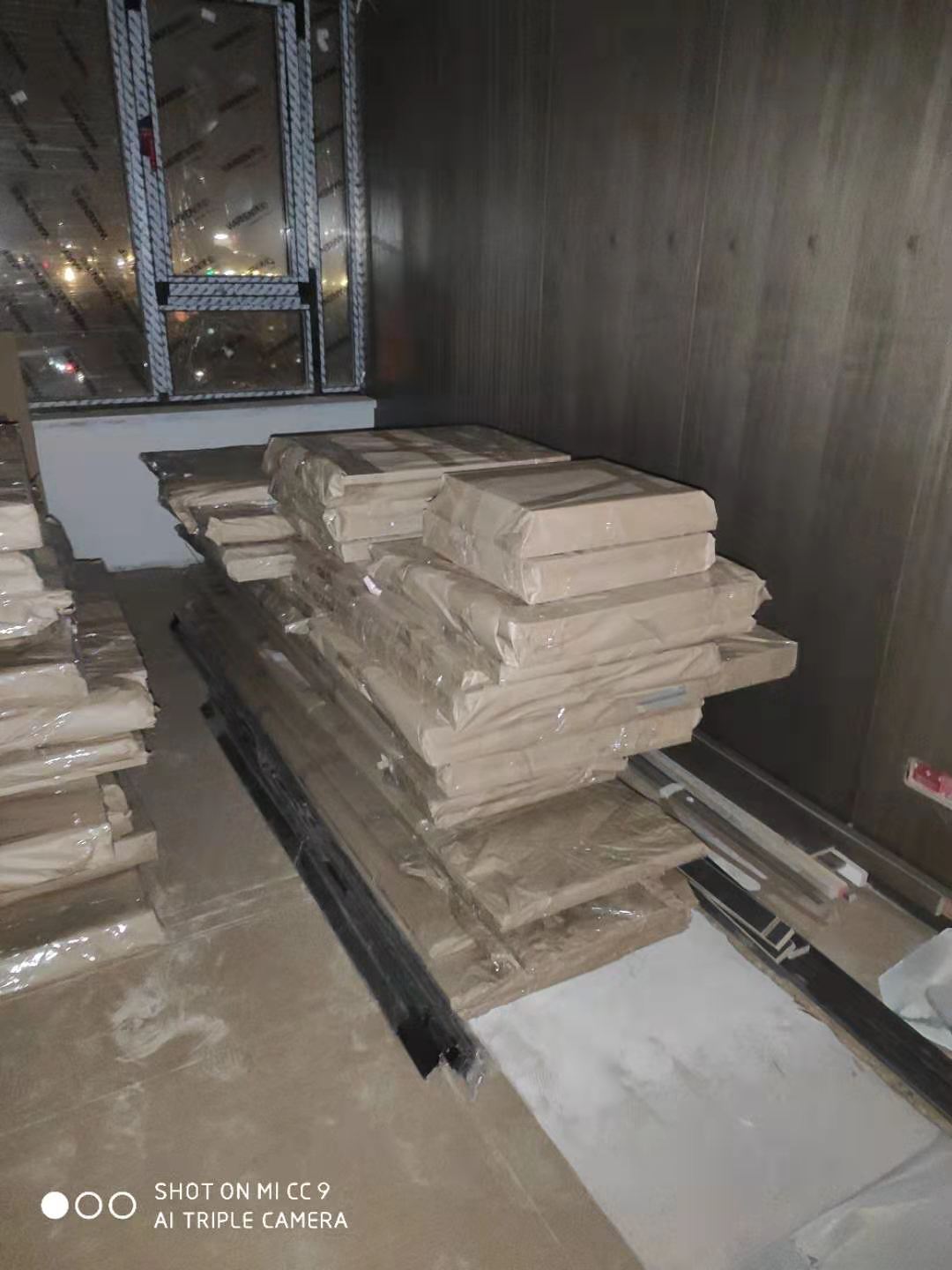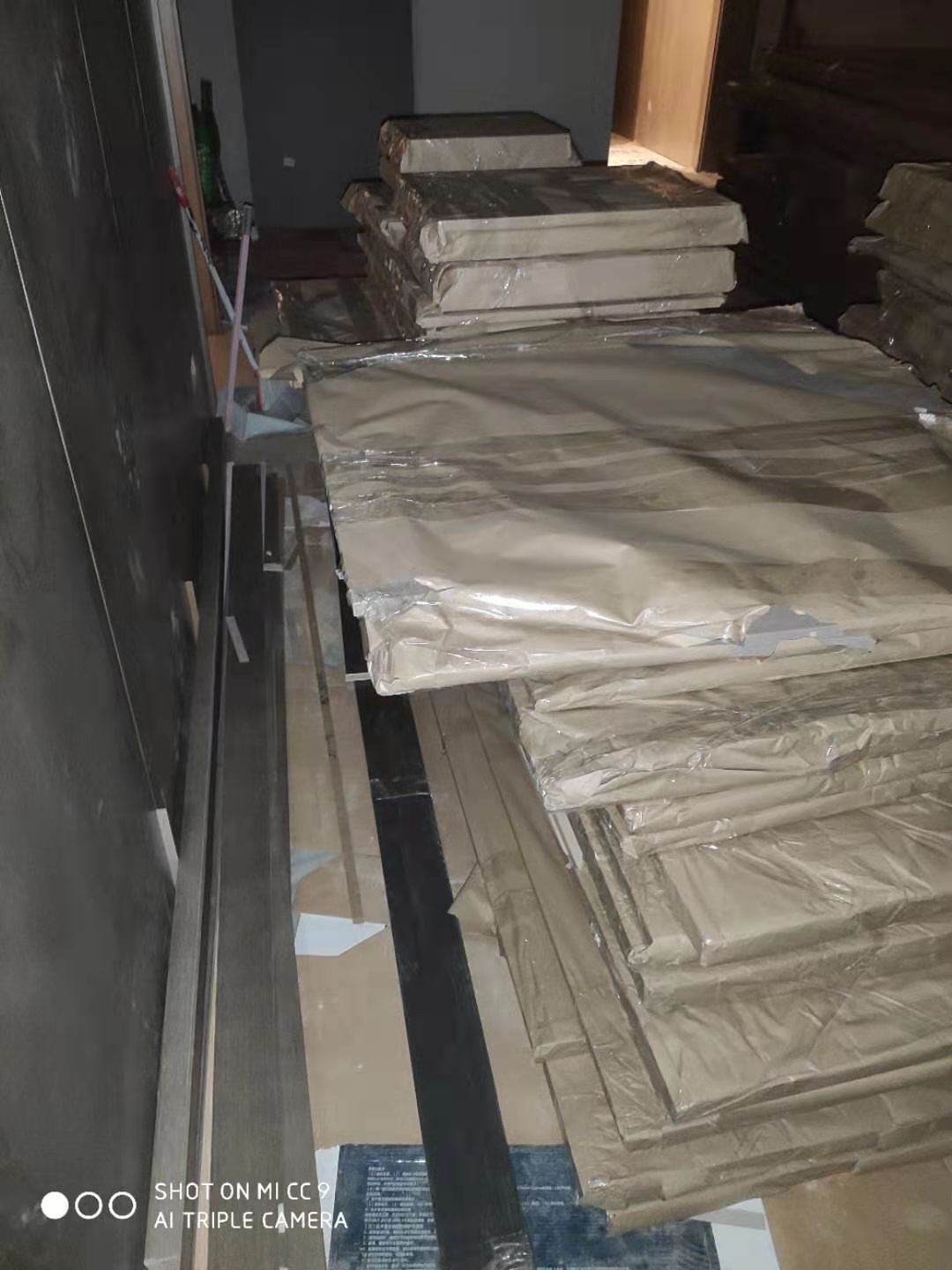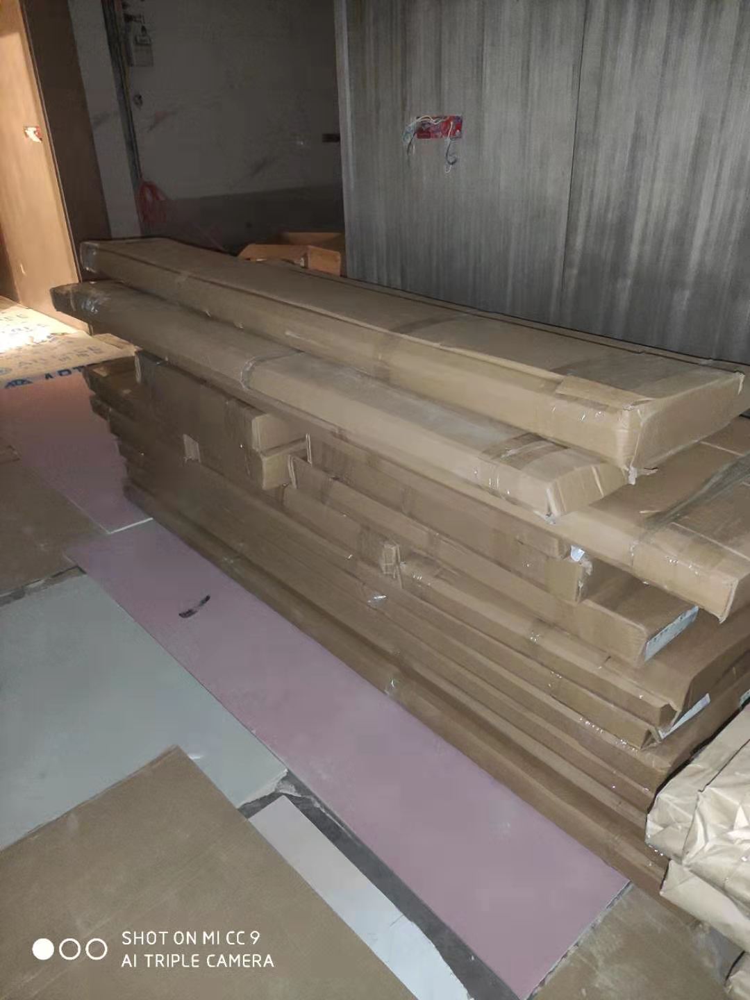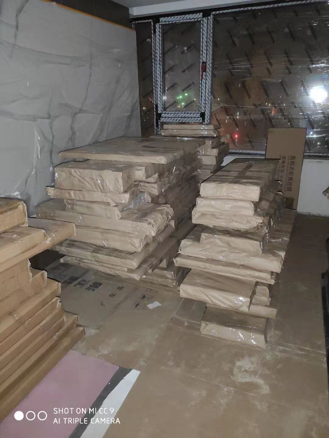 已經(jīng)完成加工工序的板材會堆放在待打包區(qū)域,等待打包