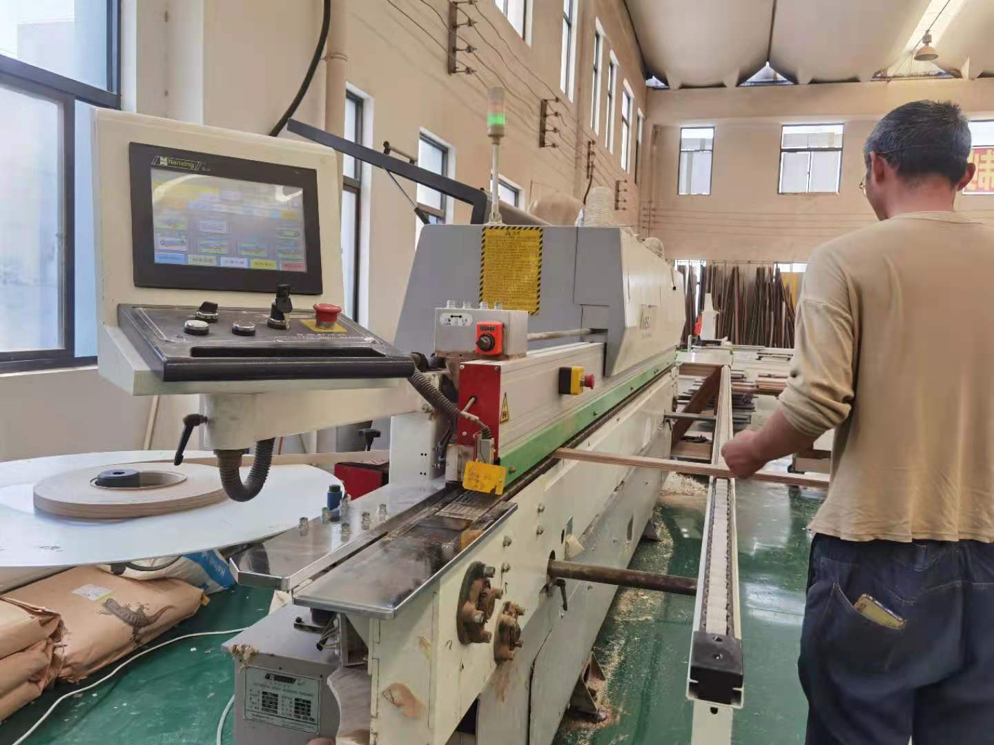 裁板完成開始封邊,我們家都是四面封邊的哦,Bostik膠封邊固定號,粘性強,而且健康環保。