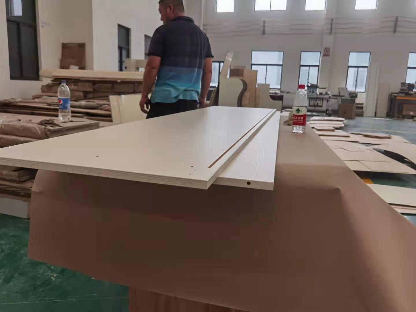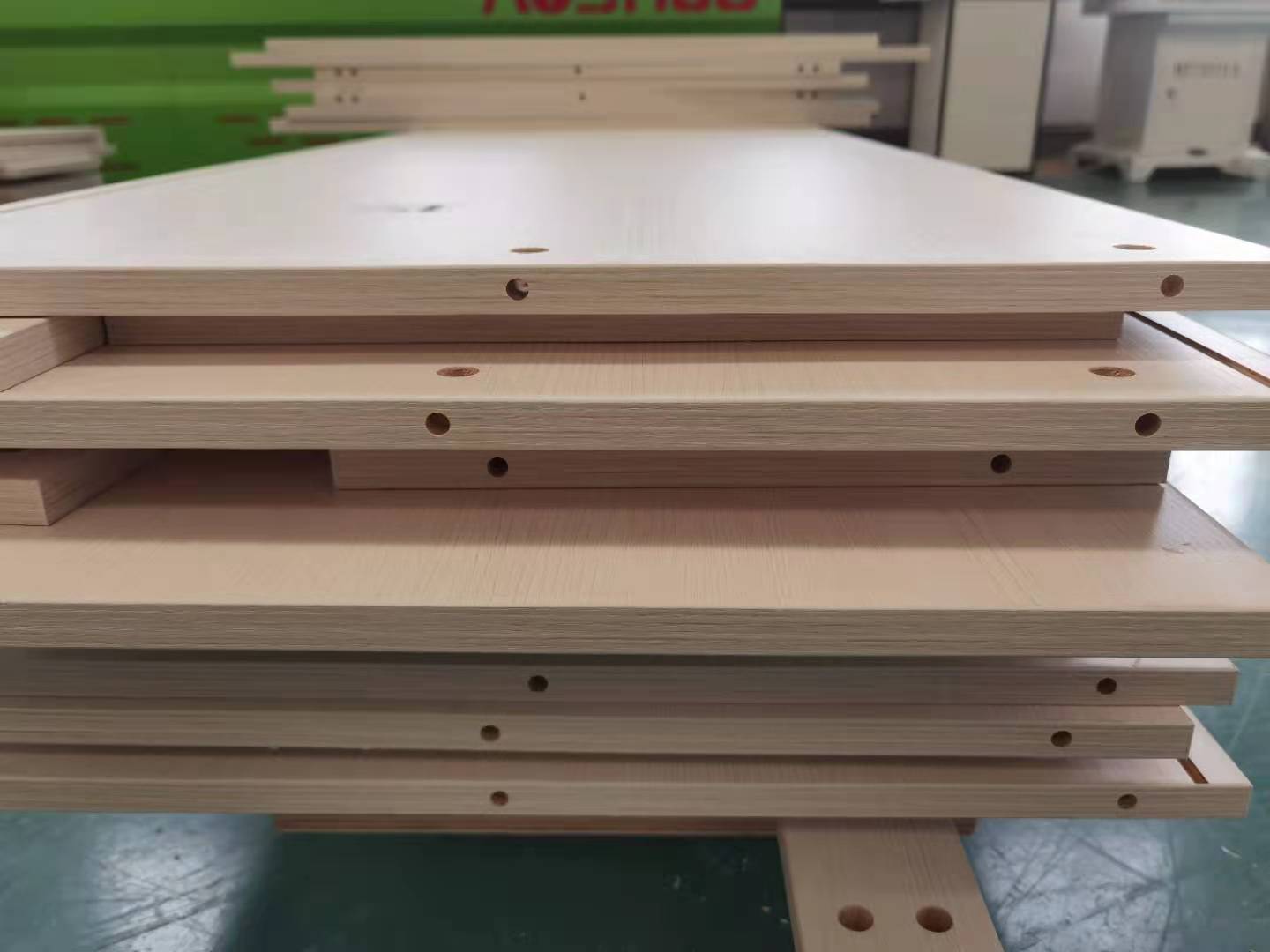 實木多層-荷塘玉橡 主臥衣柜封邊打孔已經完成,馬上進入打包階段。