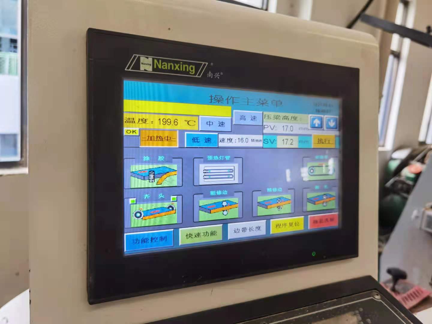 膠水采用美國波士熱熔顆粒膠,當設備溫度達到180℃以上就好開始封邊了。