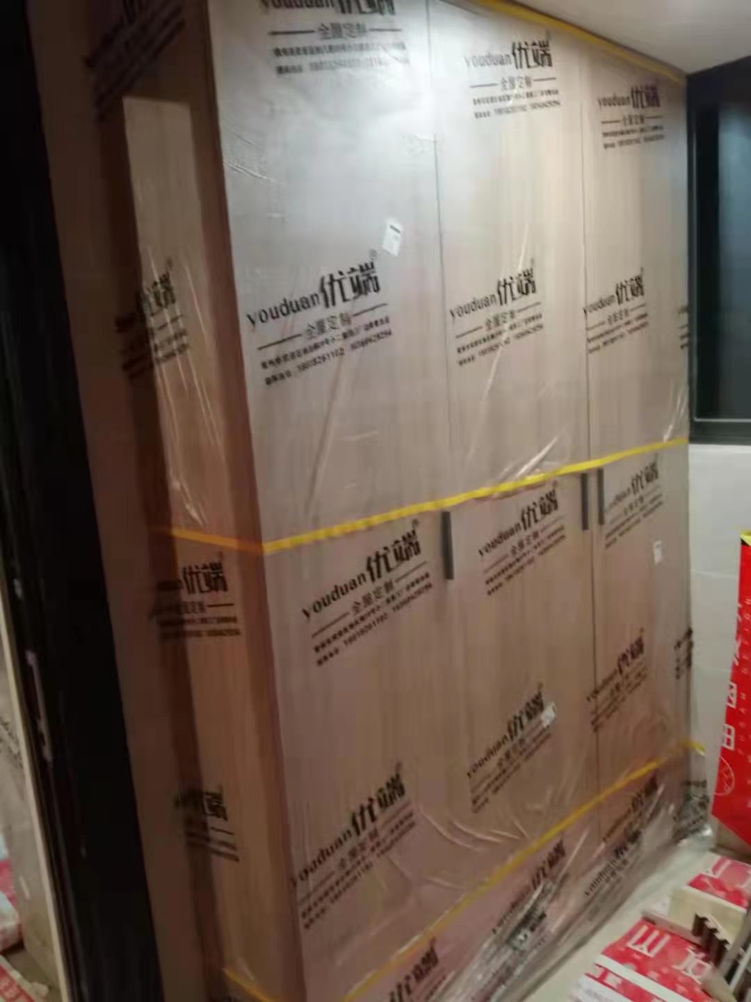 我家柜子每塊板都是整個打包起來的,以防運輸過程中劃傷或者磕碰到,跟板材下面墊板一個原理哦!等全部打包好就可以聯系客戶送貨咯!