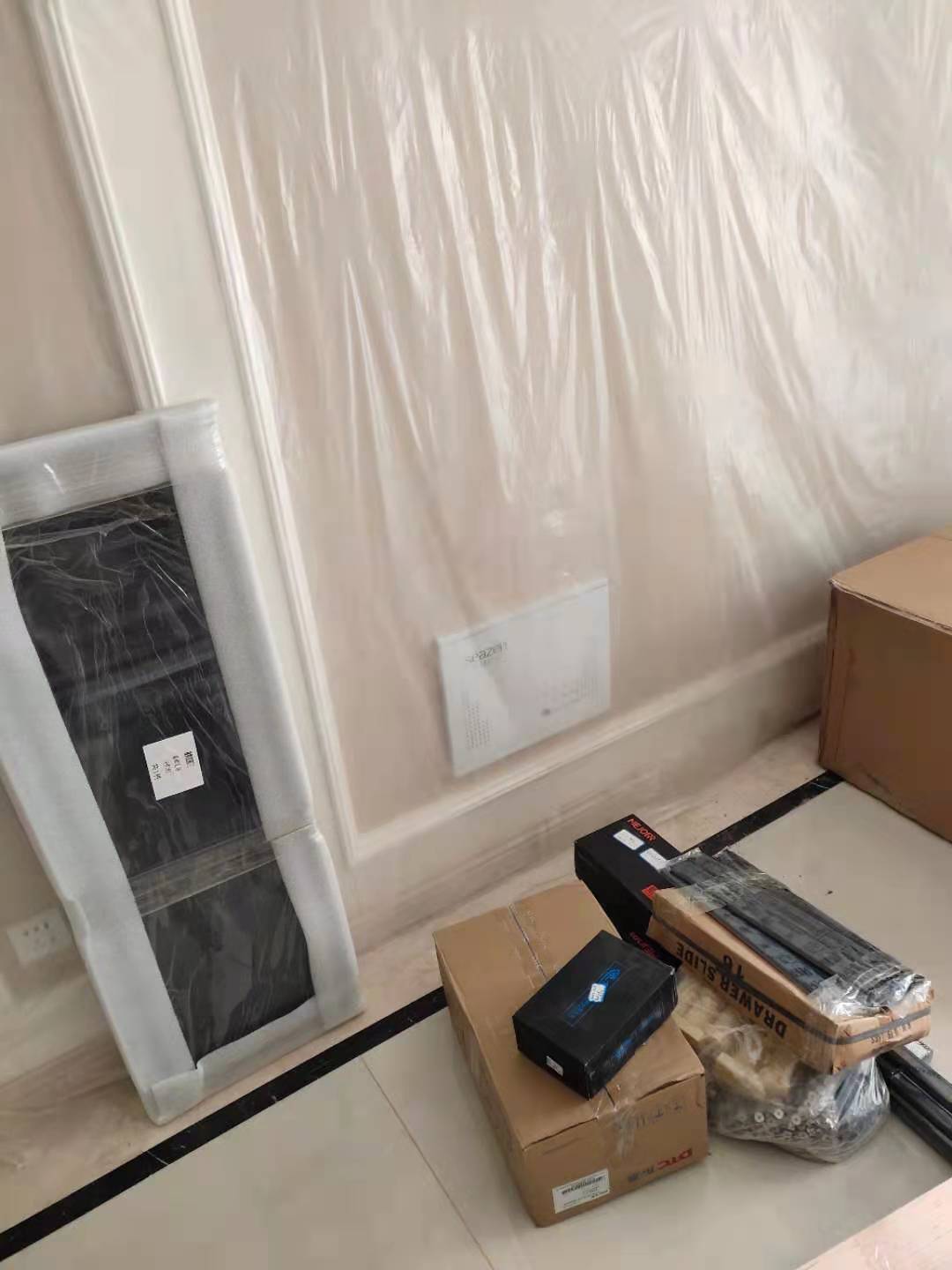 我家柜子每塊板都是整個打包起來的,以防運輸過程中劃傷或者磕碰到。