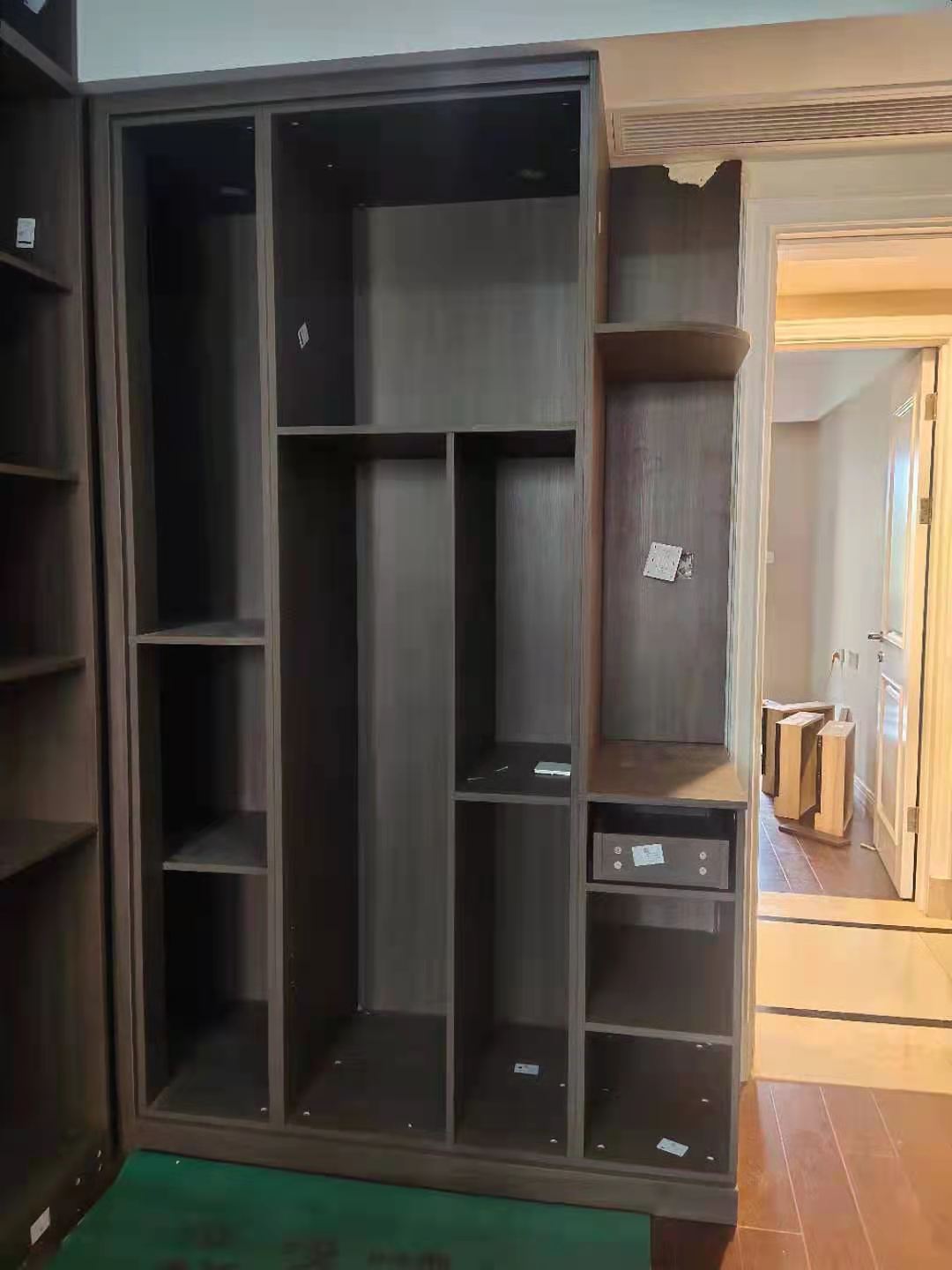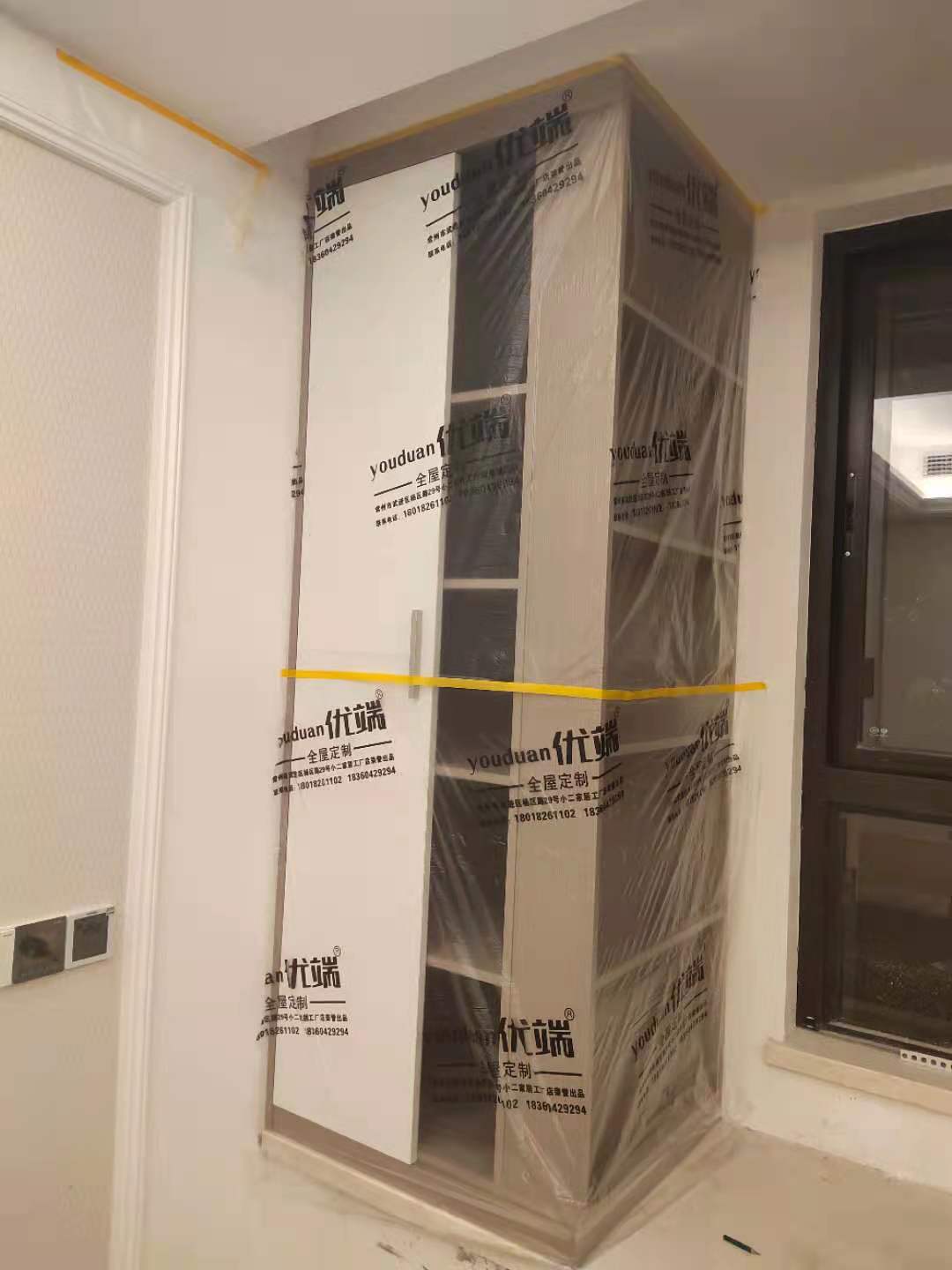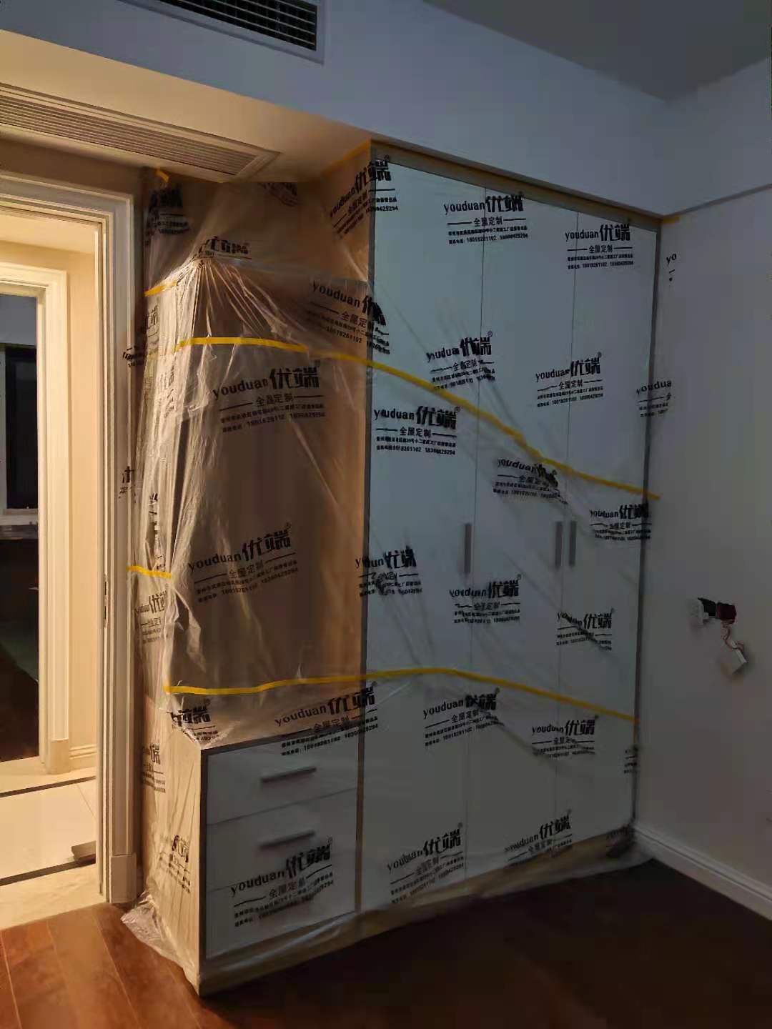 柜門師傅會用柏油清洗劑全部擦拭一遍,以保證裝到客戶家整潔美觀。