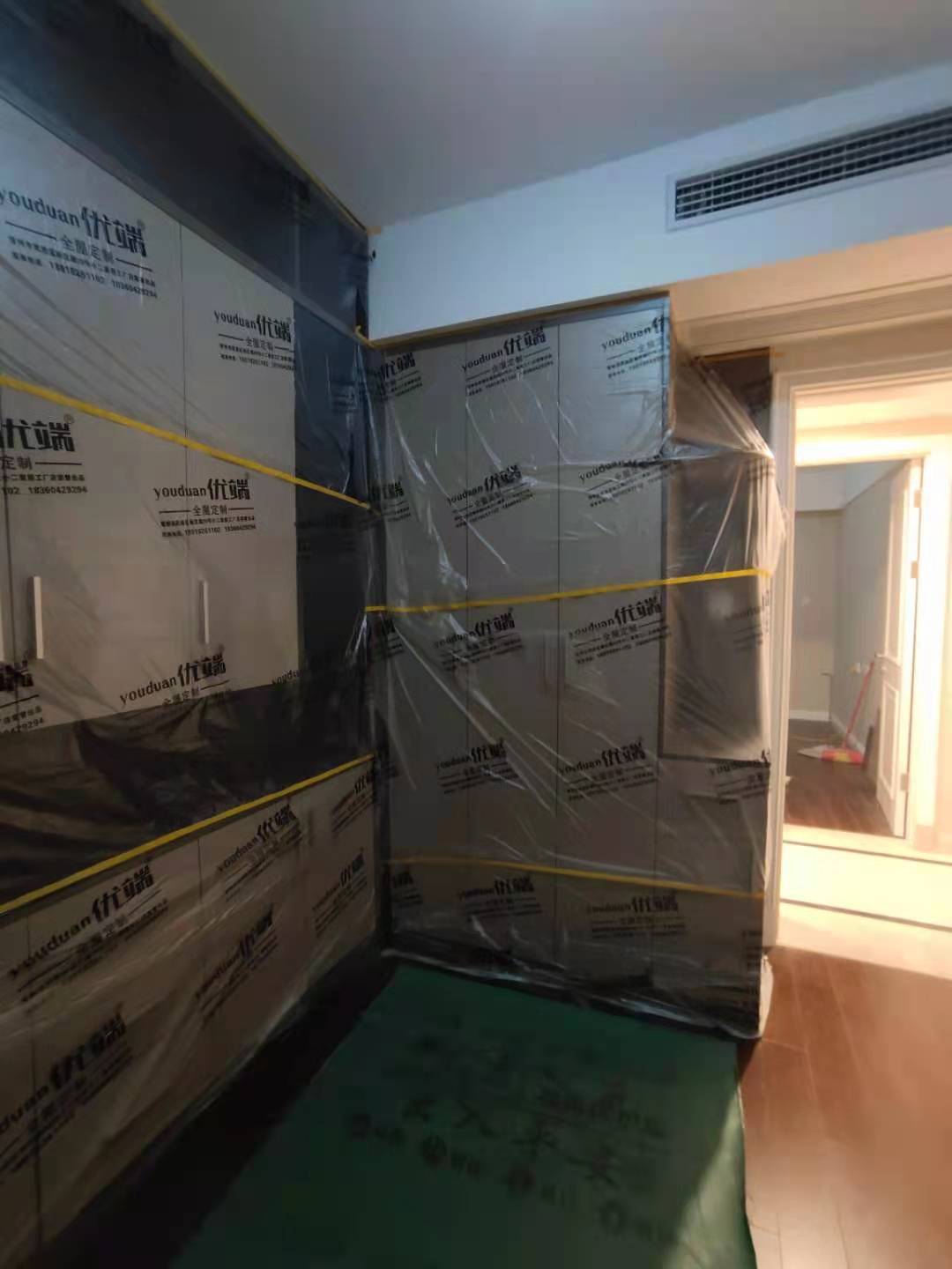 我家柜子每塊板都是整個打包起來的,以防運輸過程中劃傷或者磕碰到,跟板材下面墊板一個原理哦!