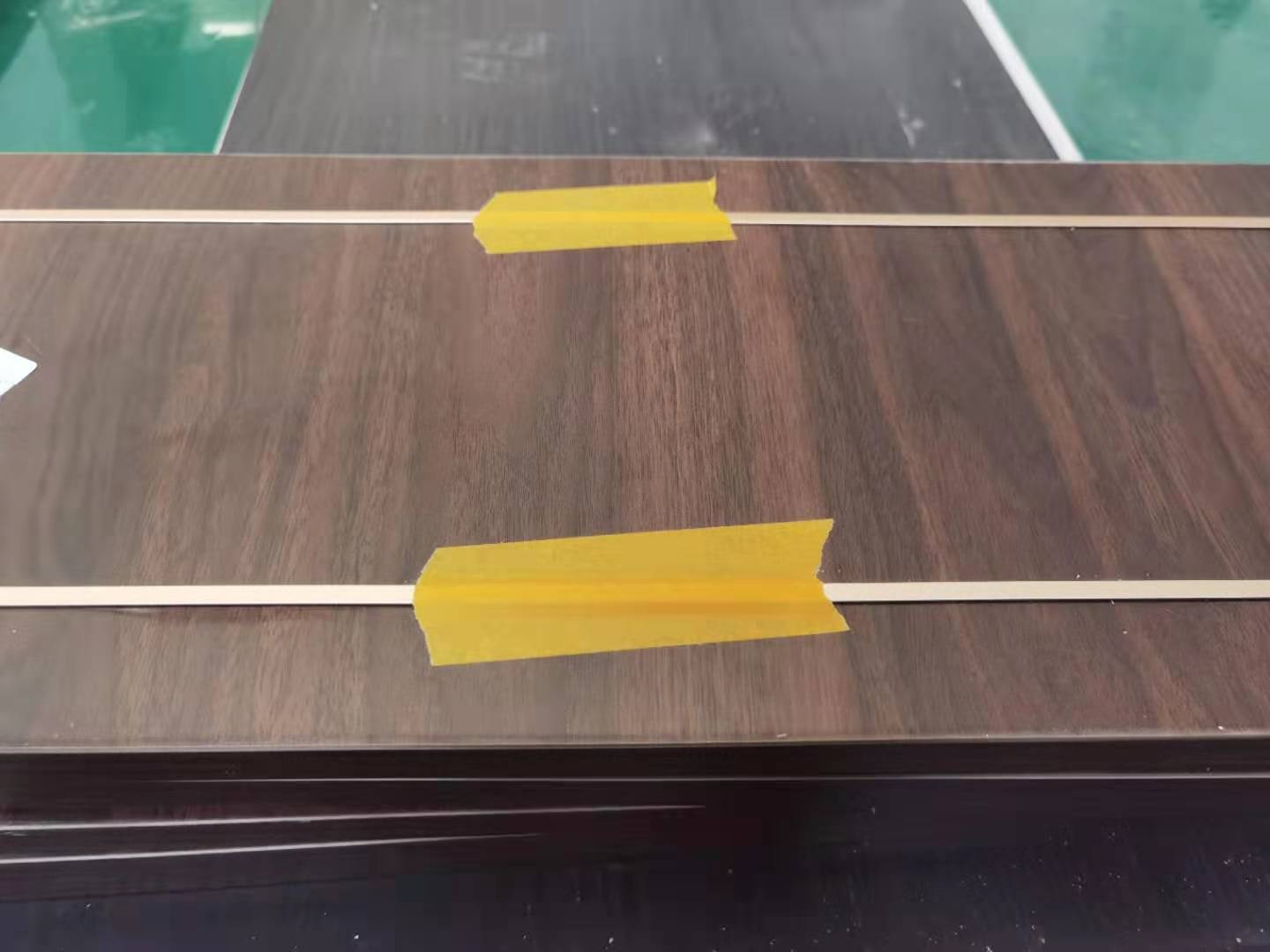 開槽-槽里打膠-金屬條裁剪-鑲嵌好-最后膠帶紙在固定