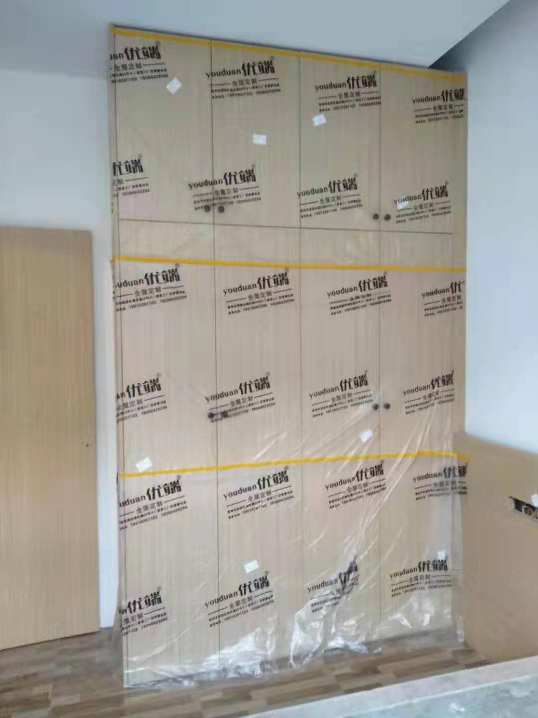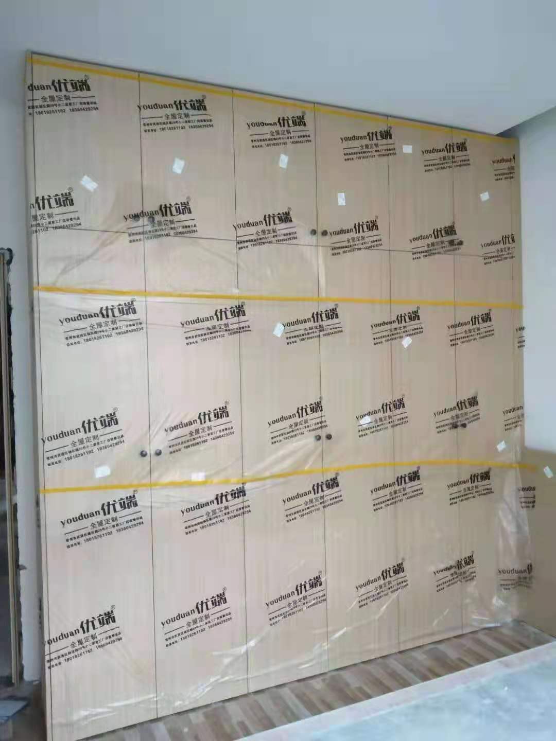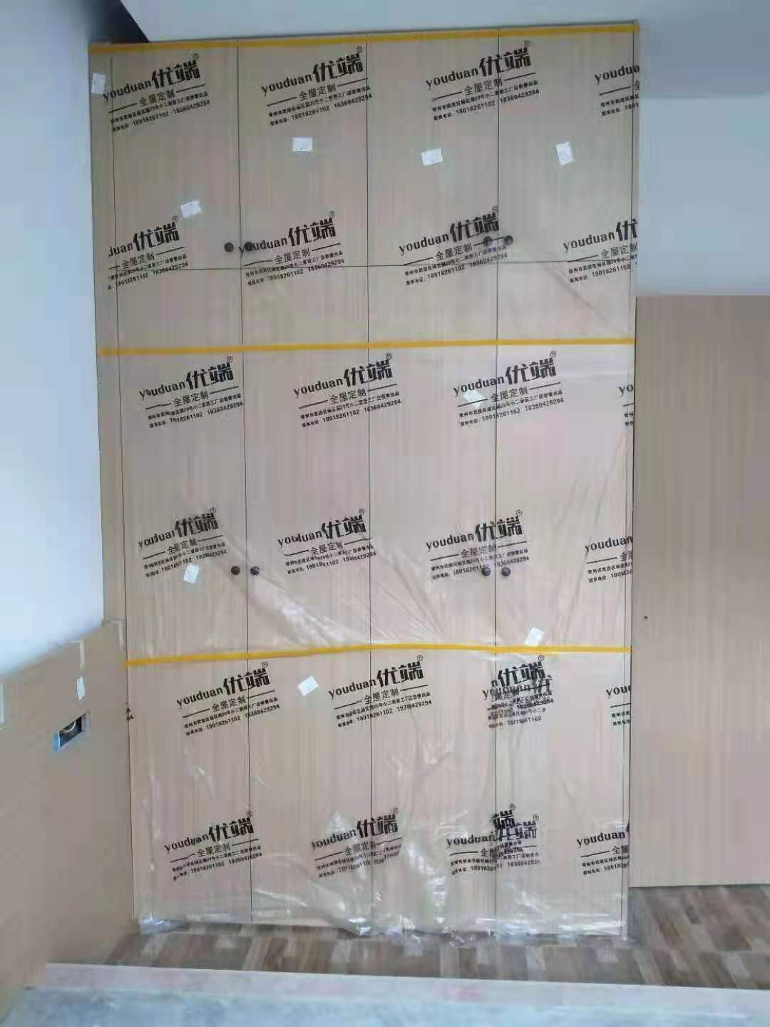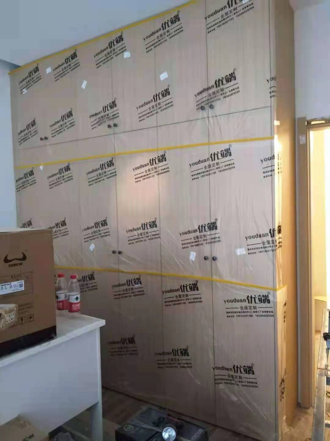 安裝完成的柜子都用塑料膜保護起來了
