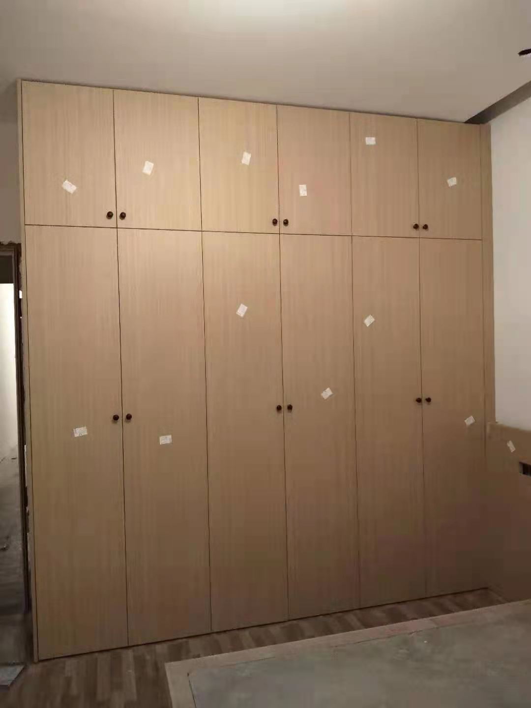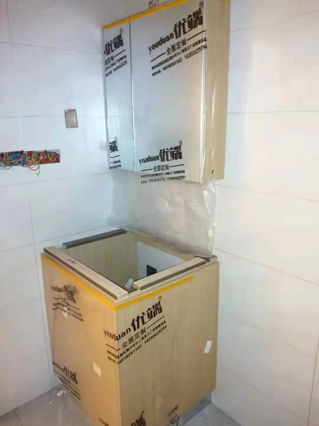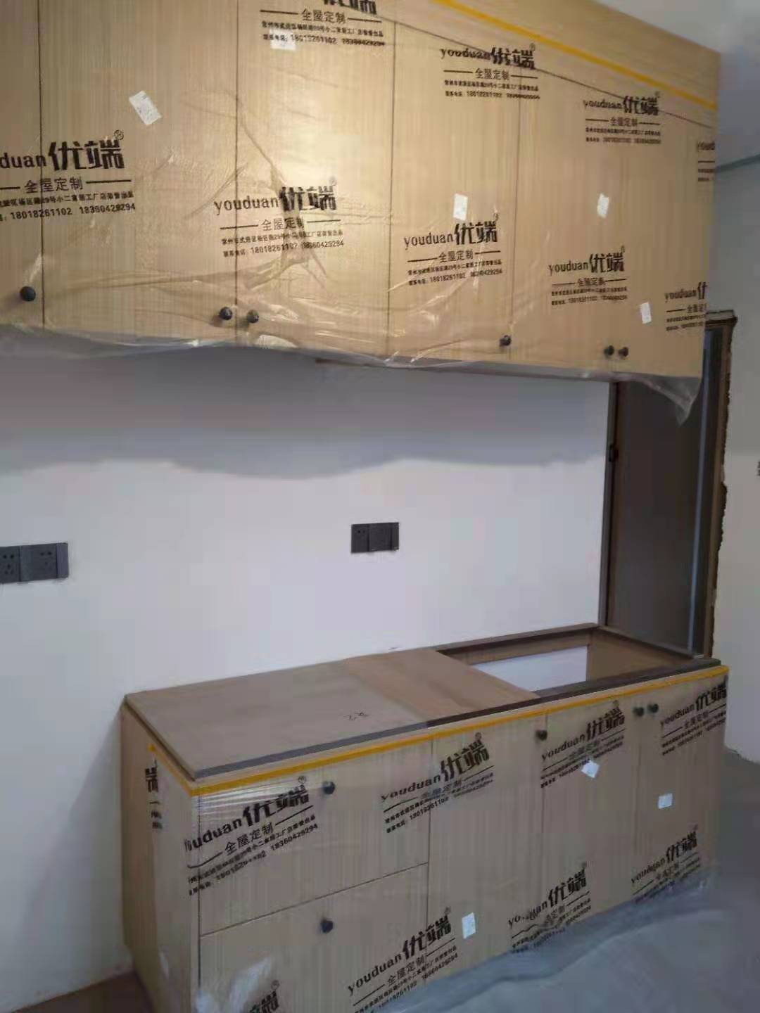 安裝完成的柜子都用塑料膜保護起來了