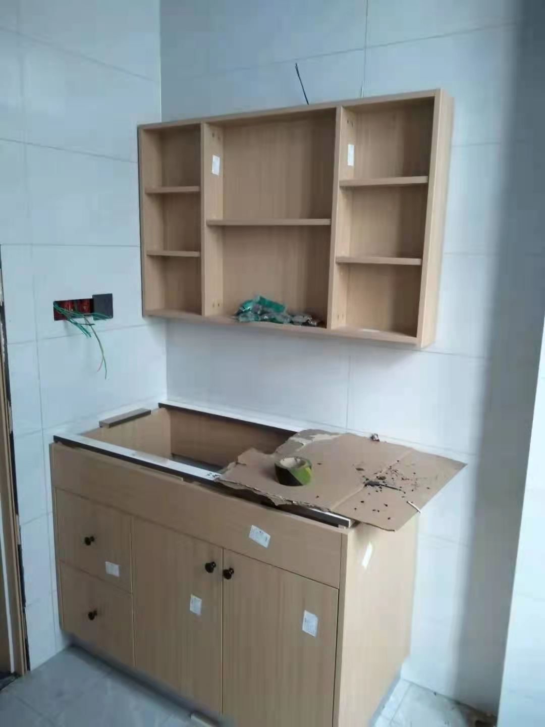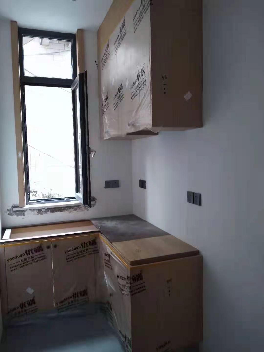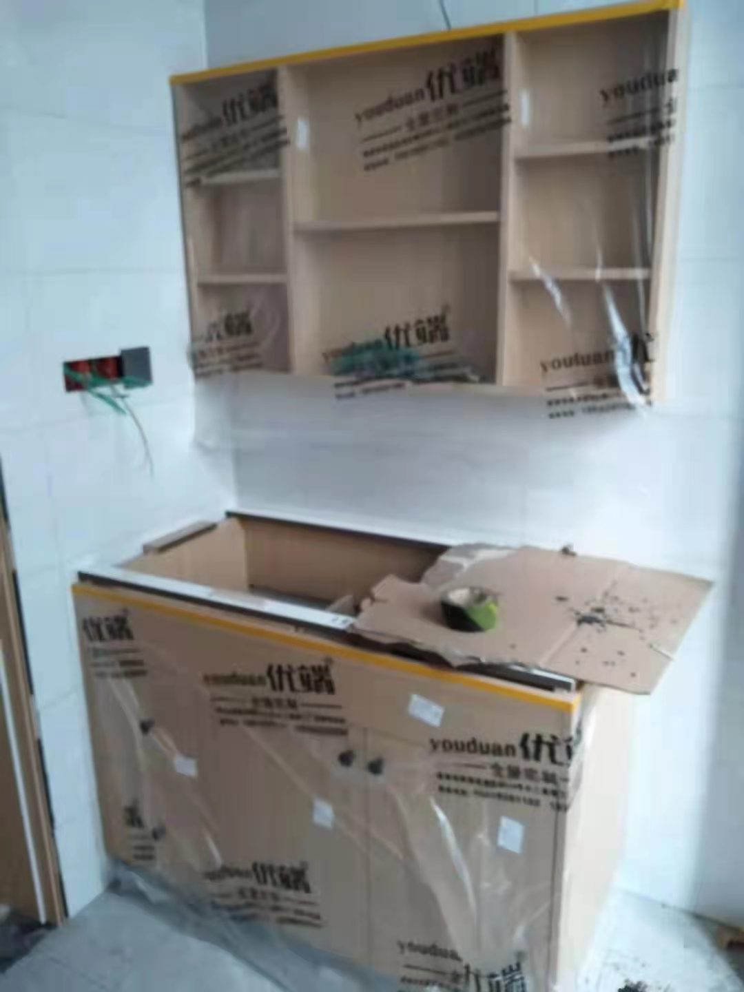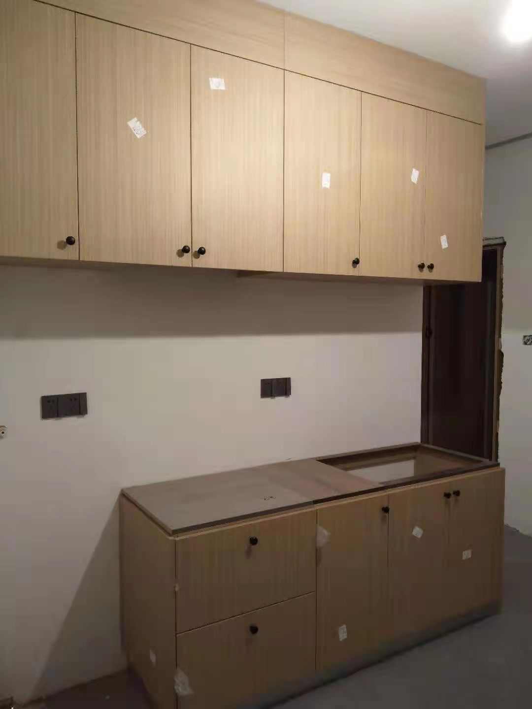 安裝完成的柜子都用塑料膜保護起來了
