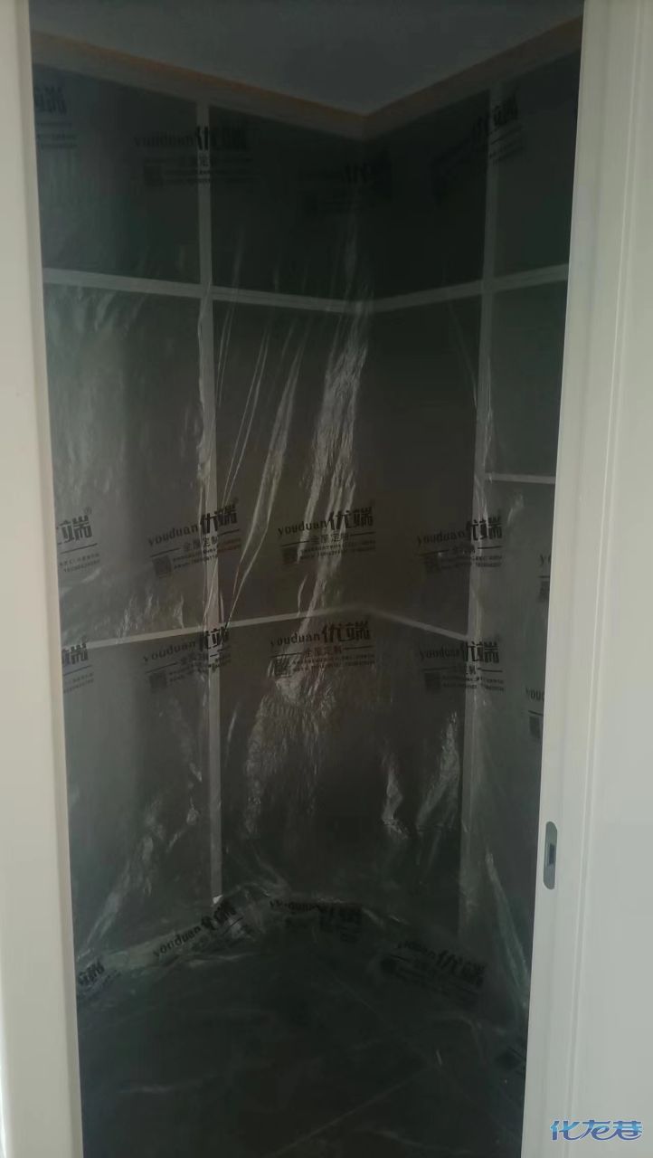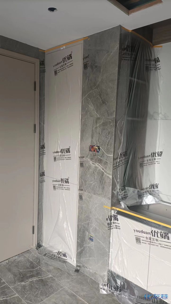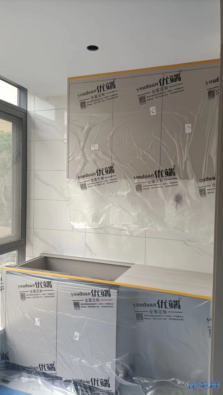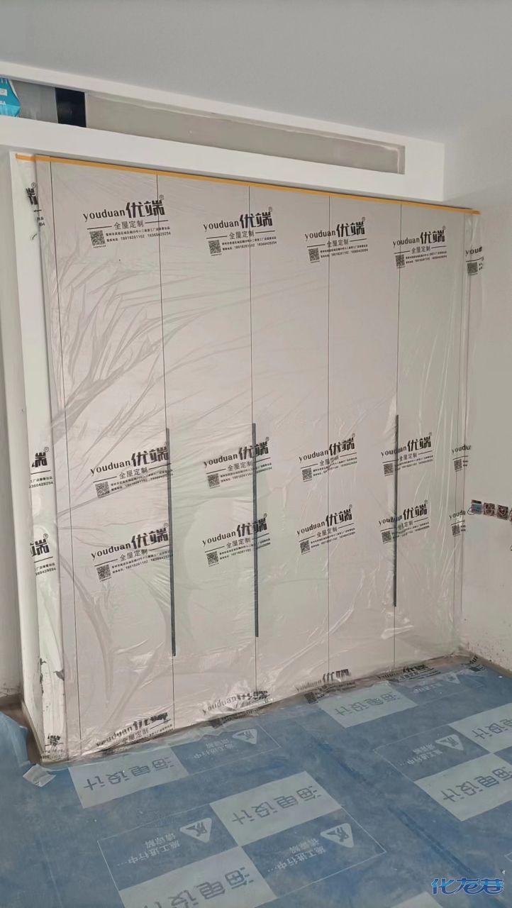 安裝完成的柜子都用塑料膜保護(hù)起來(lái)了