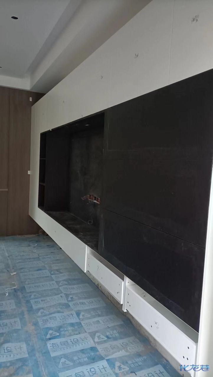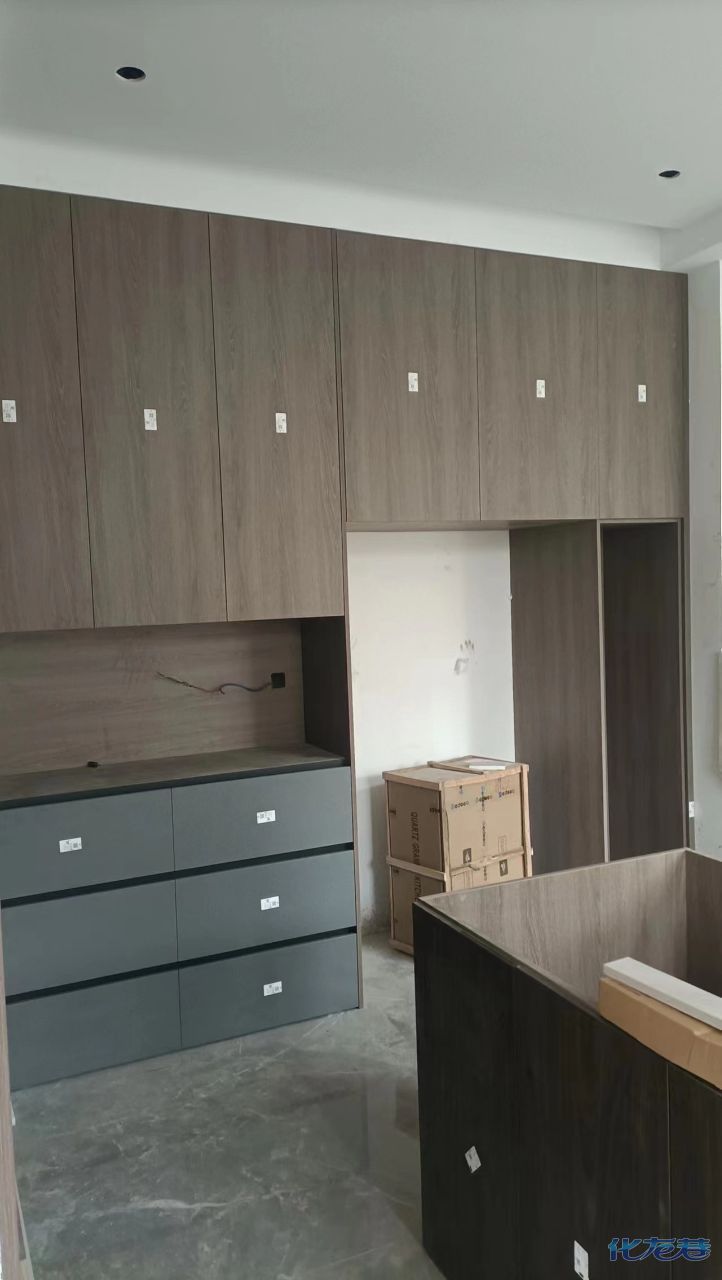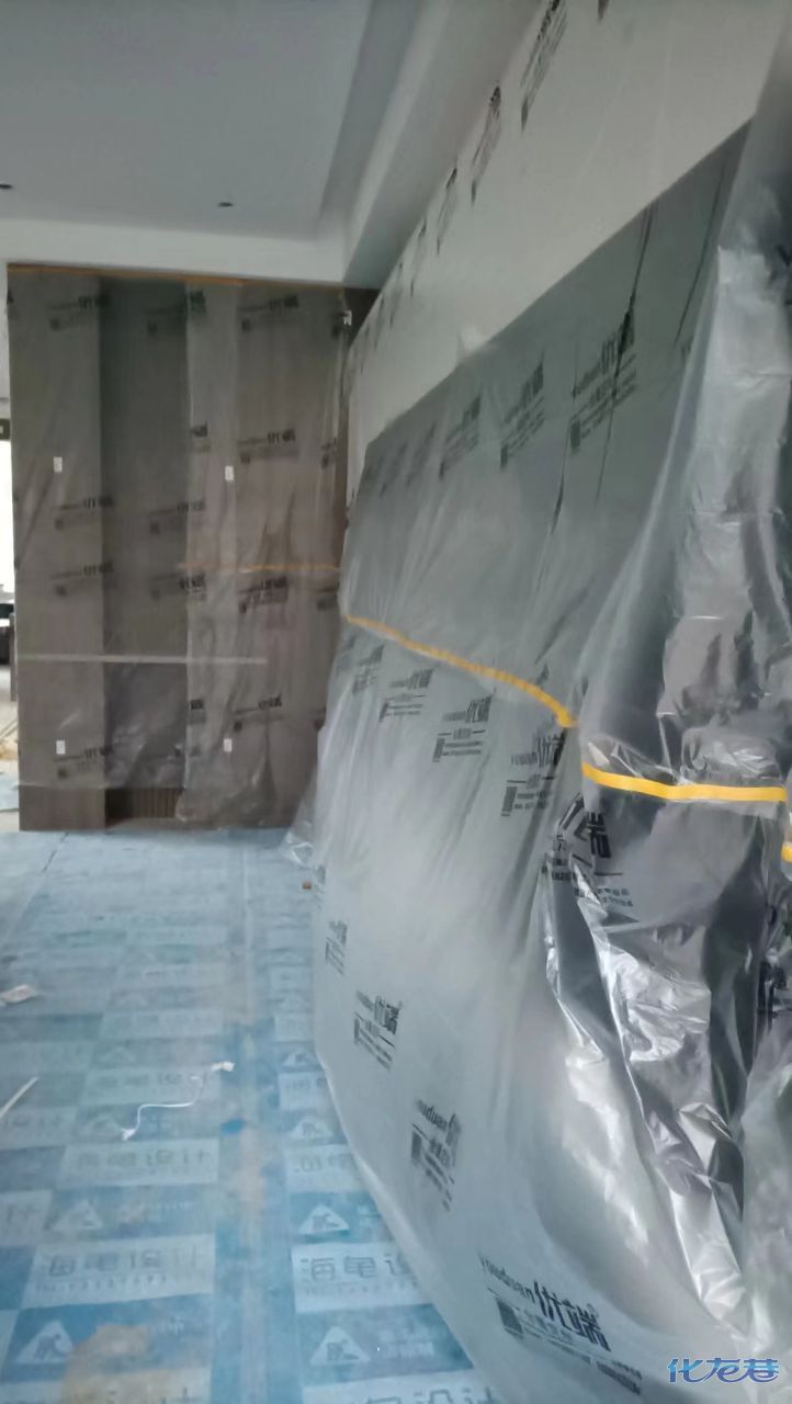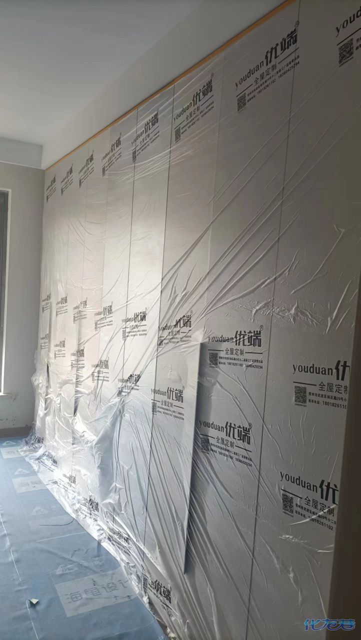 安裝完成的柜子都用塑料膜保護(hù)起來(lái)了