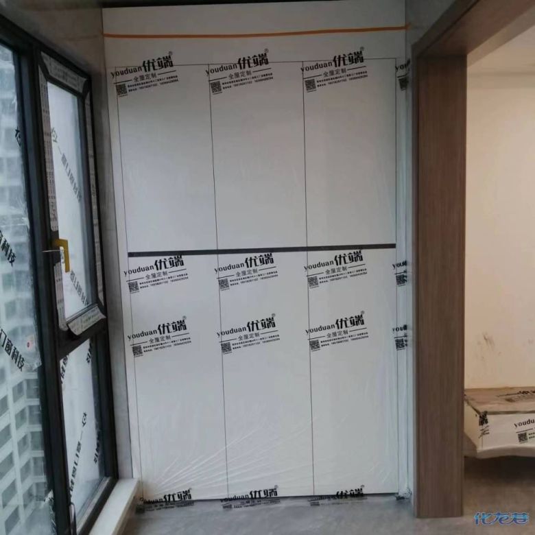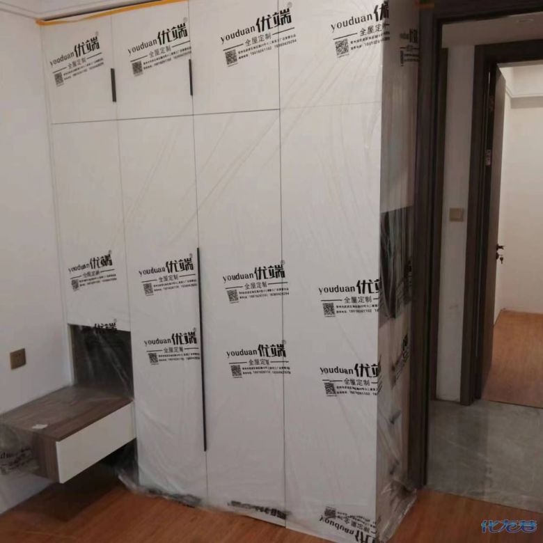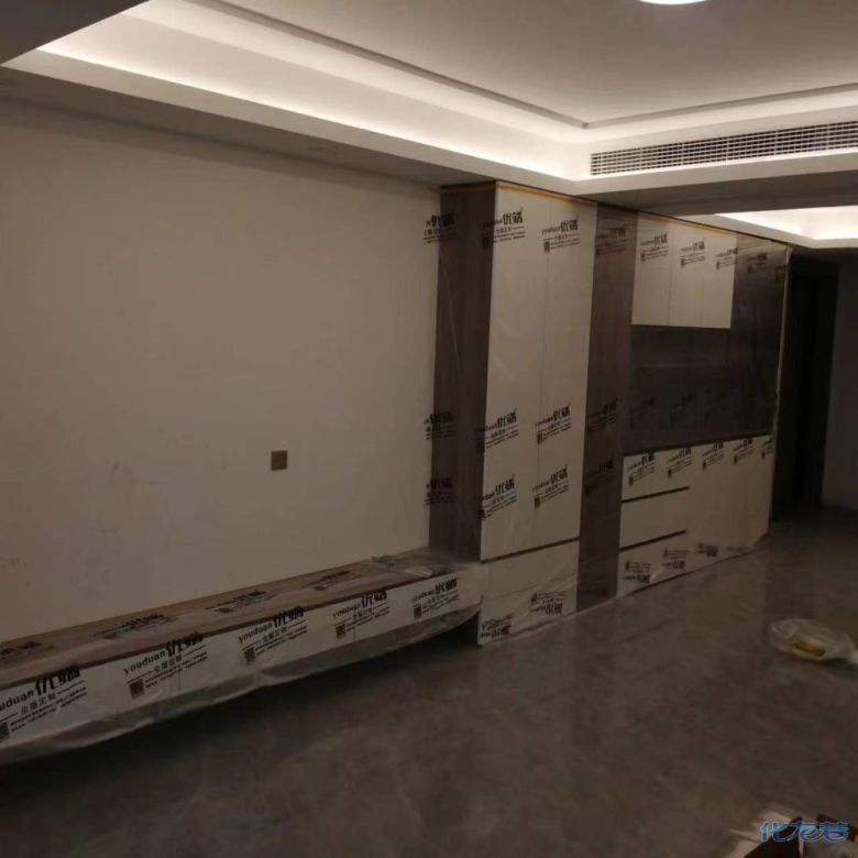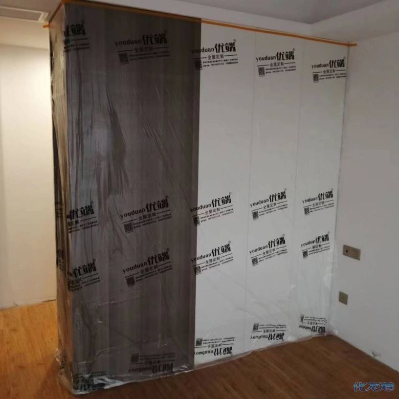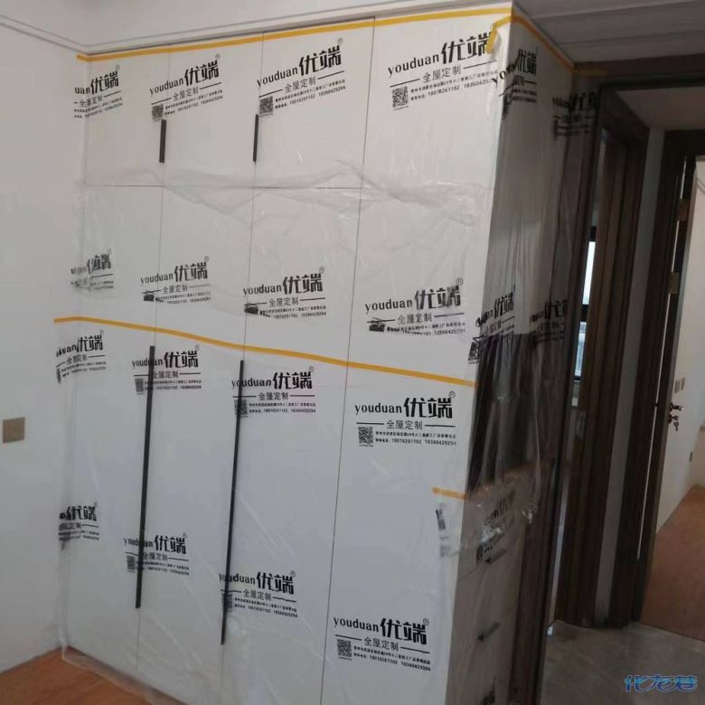安裝完成的柜子都用塑料膜保護起來了