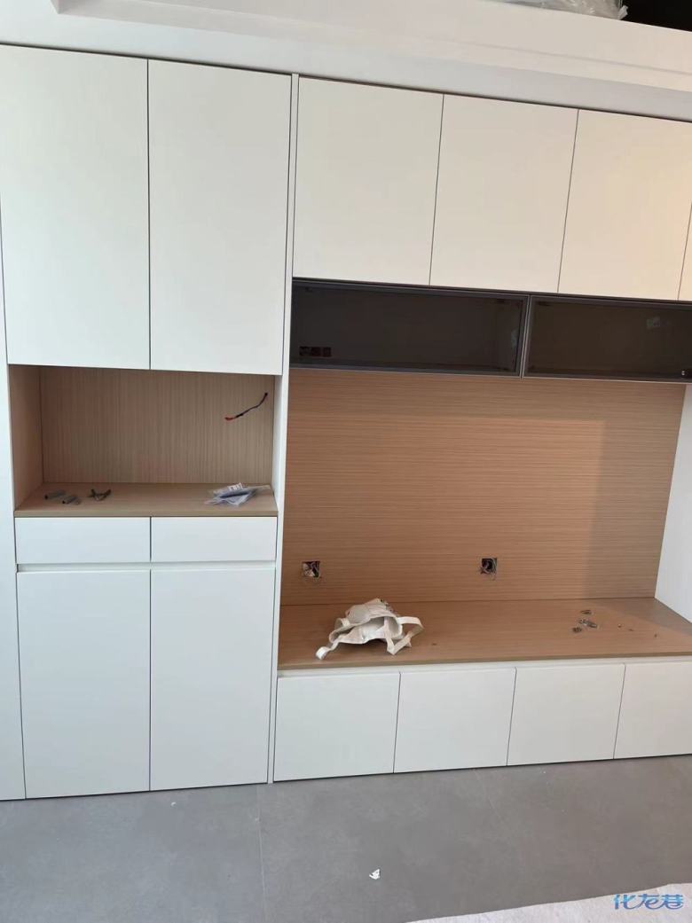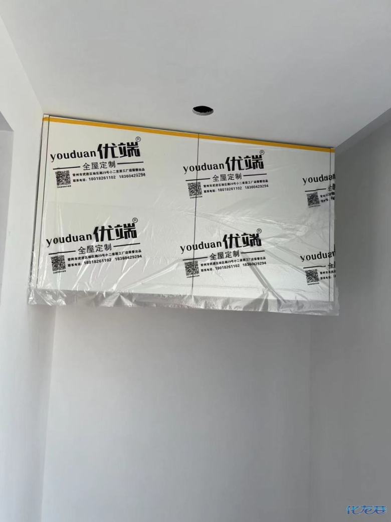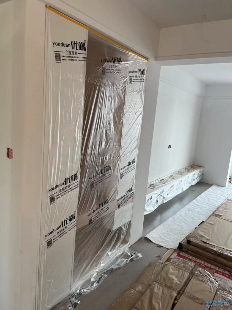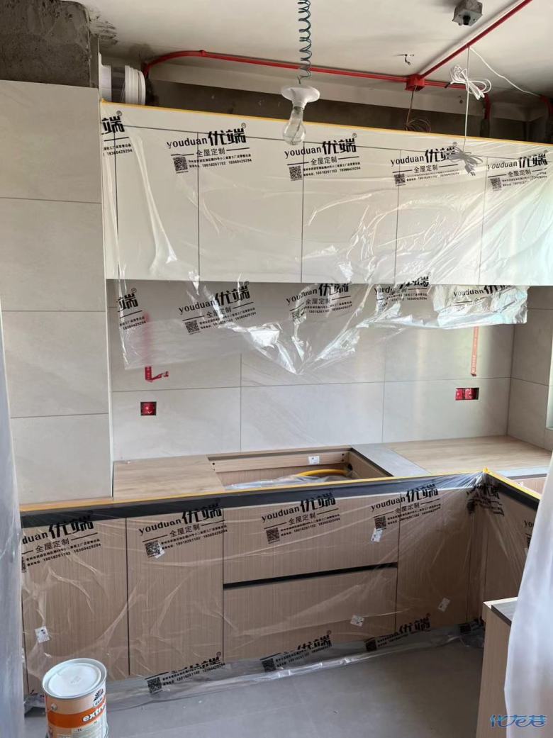 安裝完成的柜子都用塑料膜保護起來了