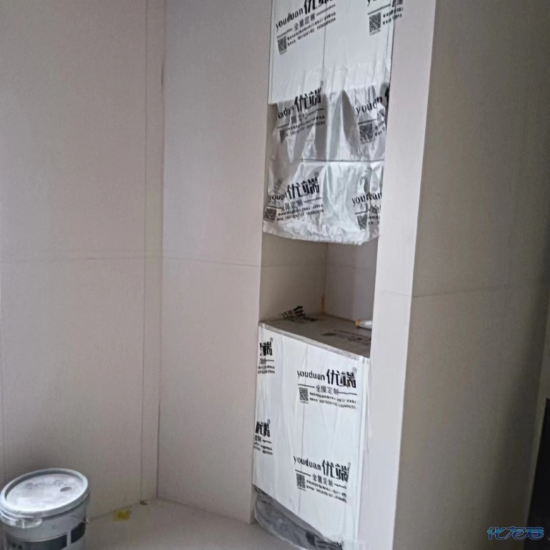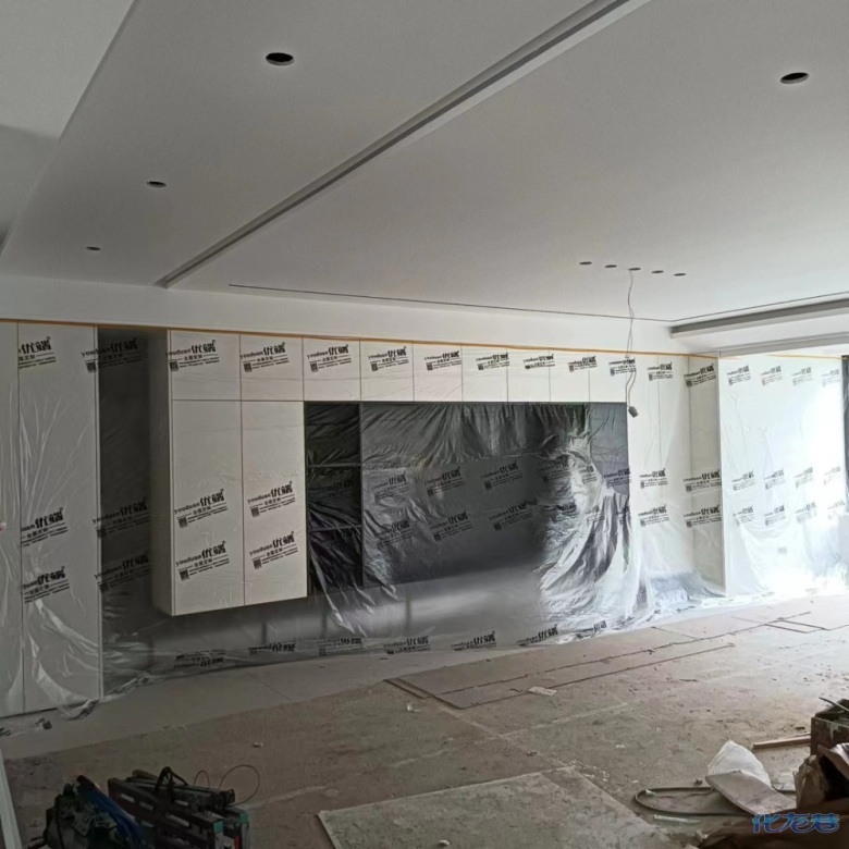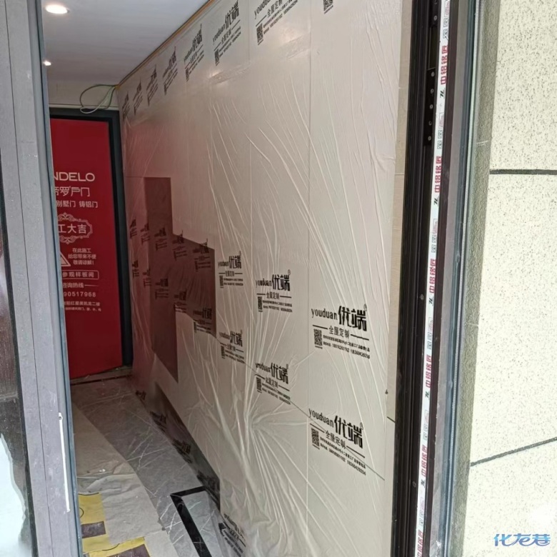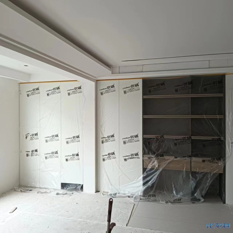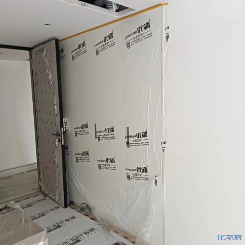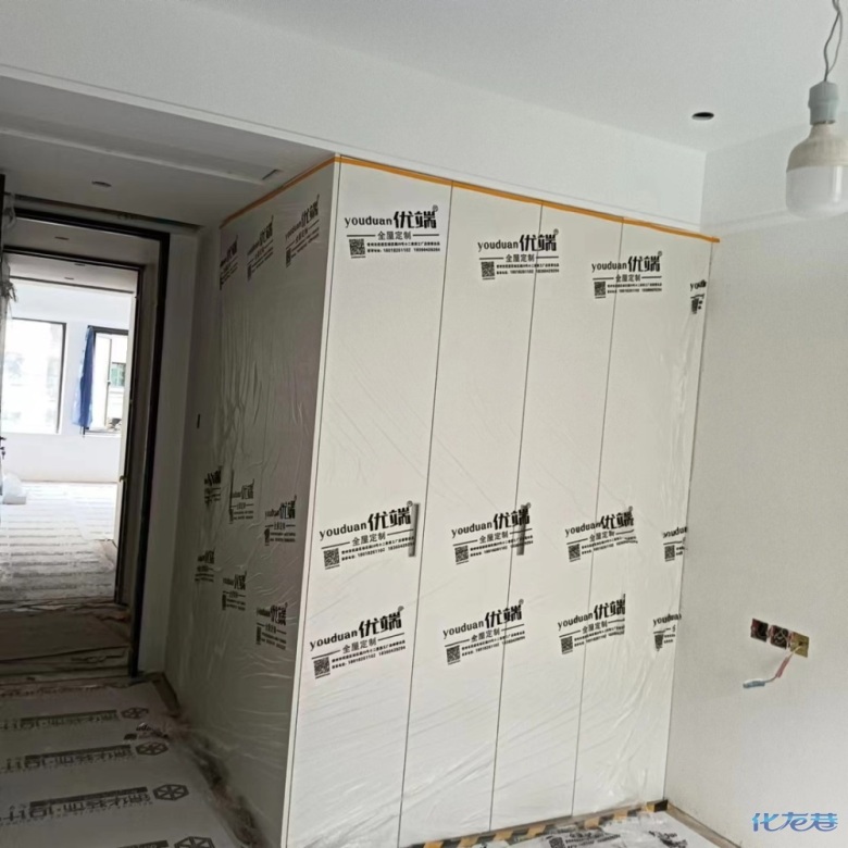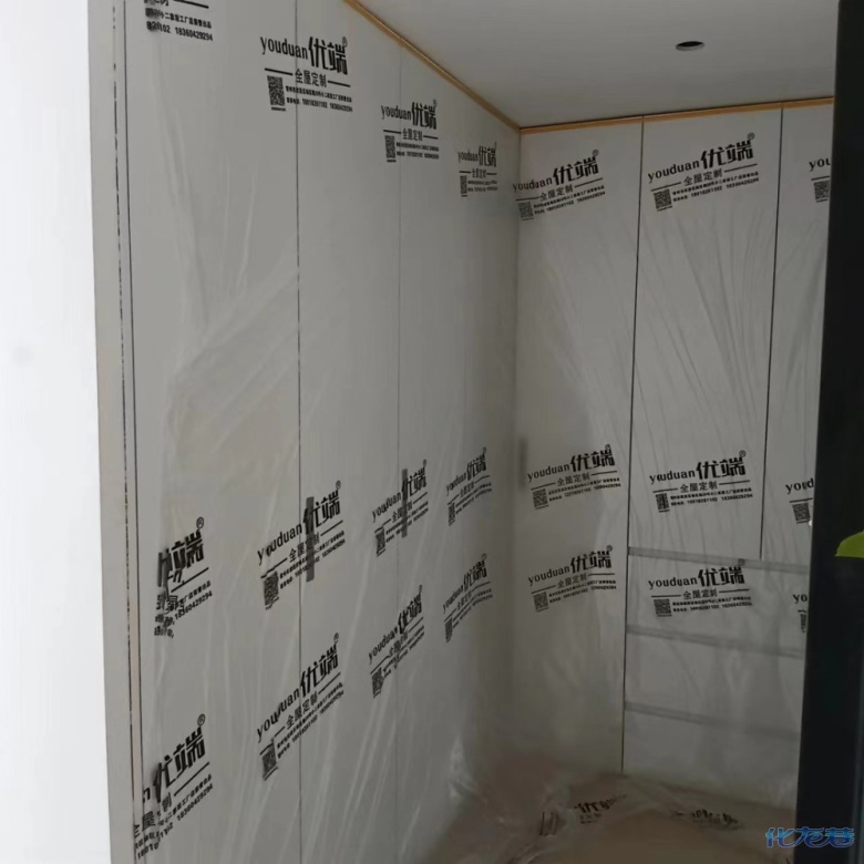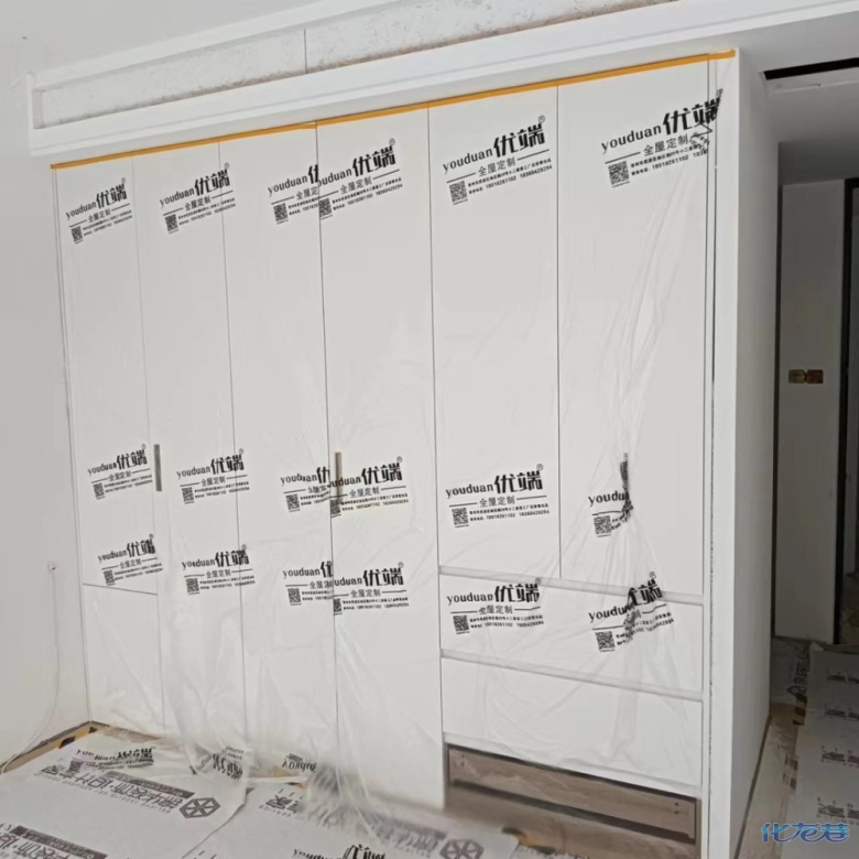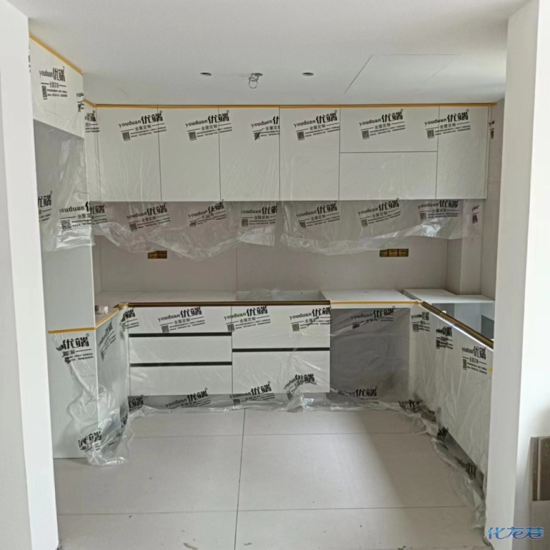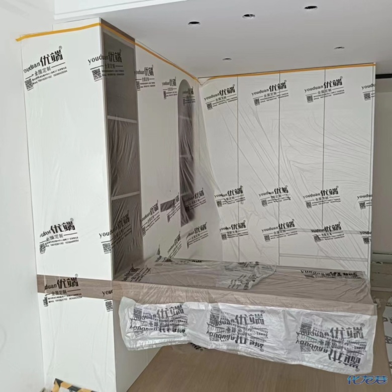 安裝完成的柜子都用塑料膜保護起來了