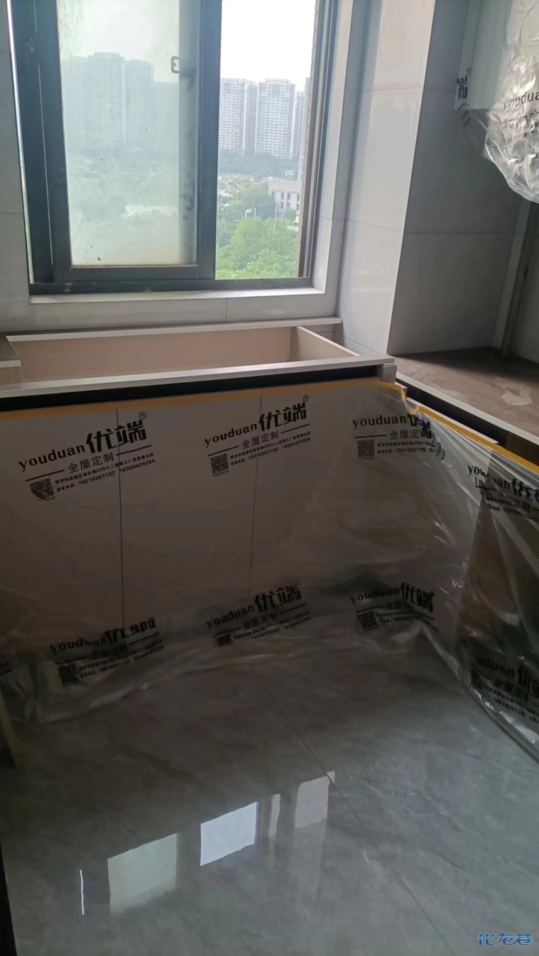 貨已安全送到客戶家了,5天內安排師傅上門安裝哦。安裝階段請您把您家需要用到的廚房水槽、灶具、浴柜臺盆放置在現場,后期臺面安裝需用到。柜子安裝好后進入臺面測量環節,臺面量完后一個星期內送貨并安裝。