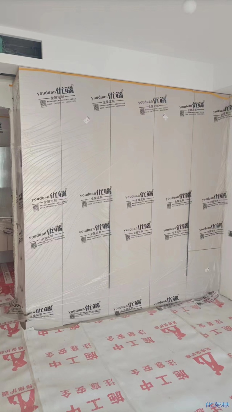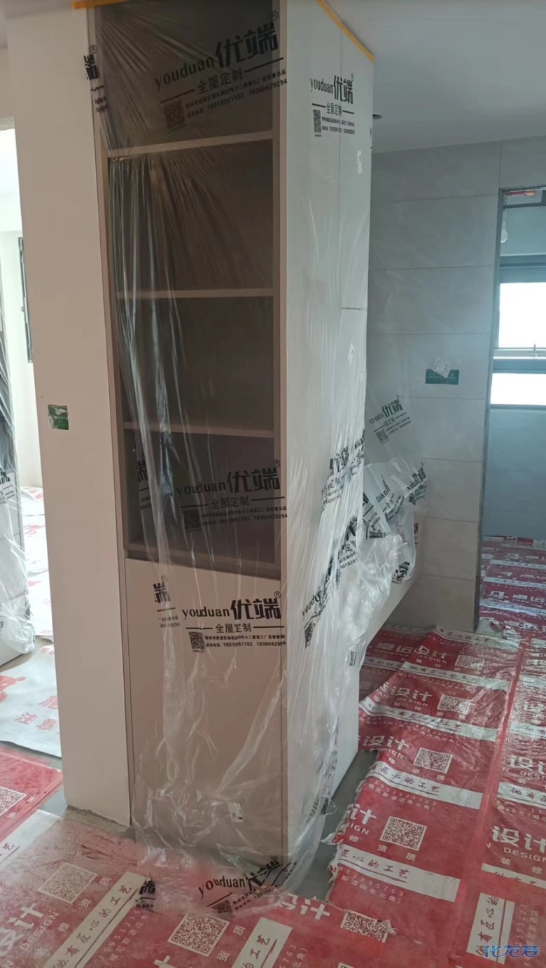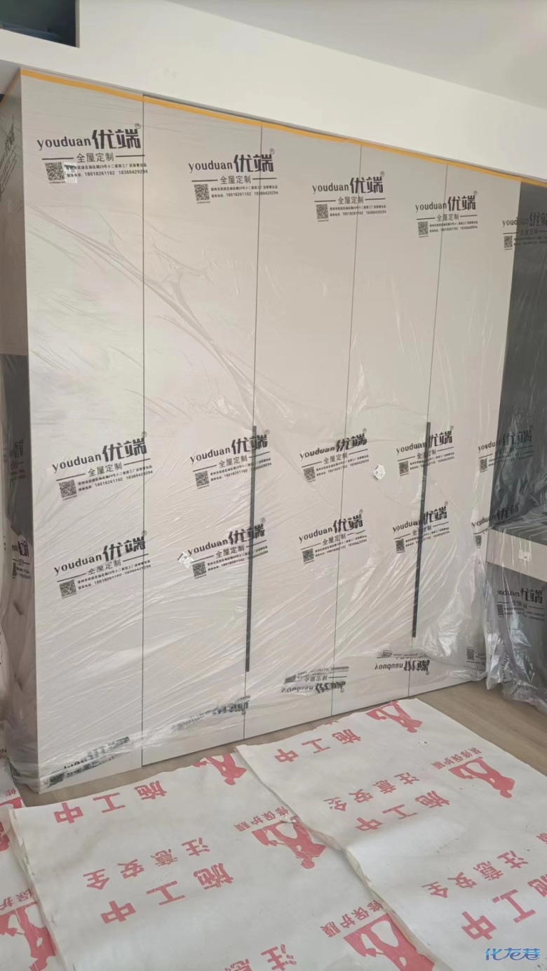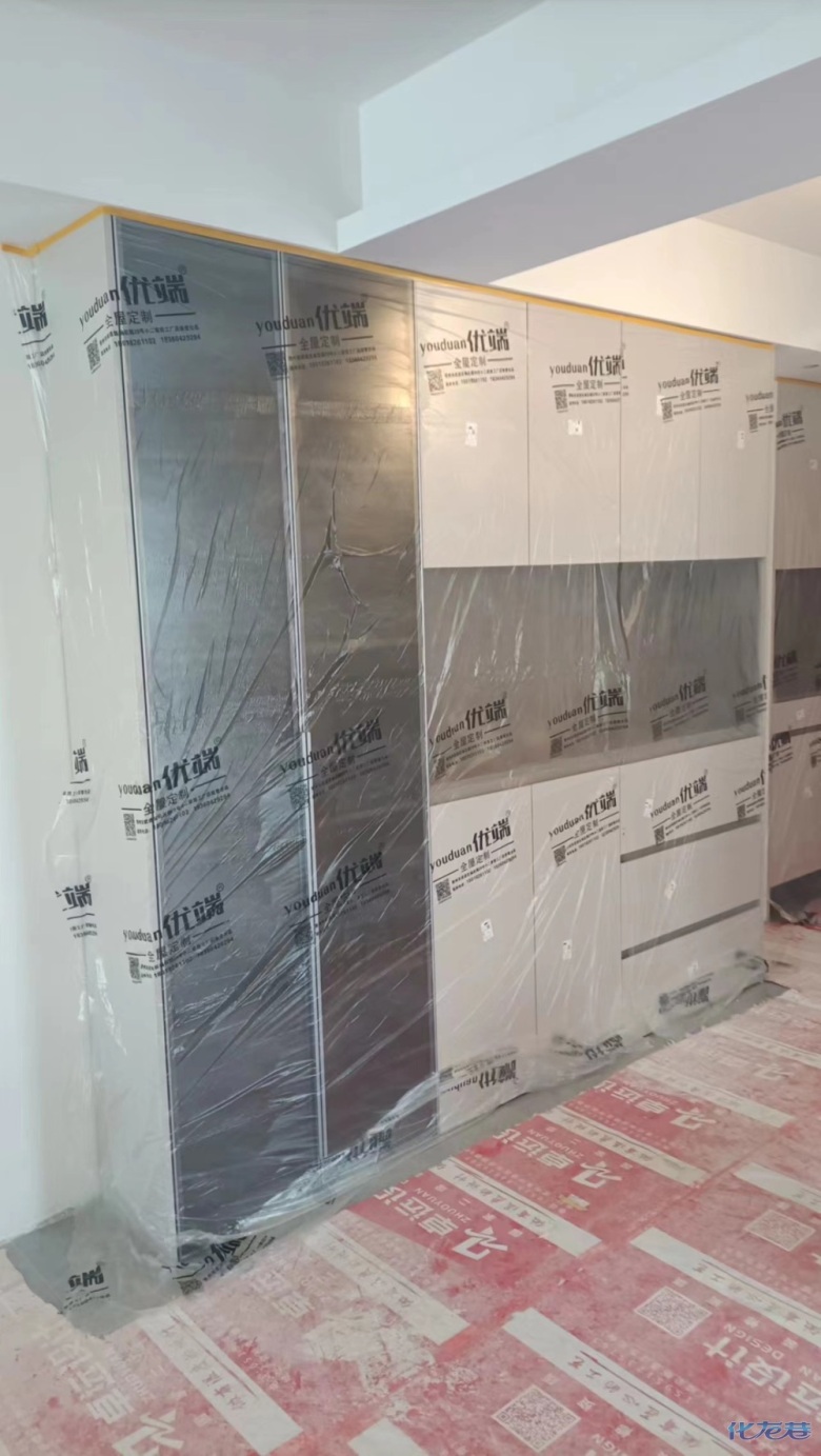 安裝完成的柜子都用塑料膜保護起來了