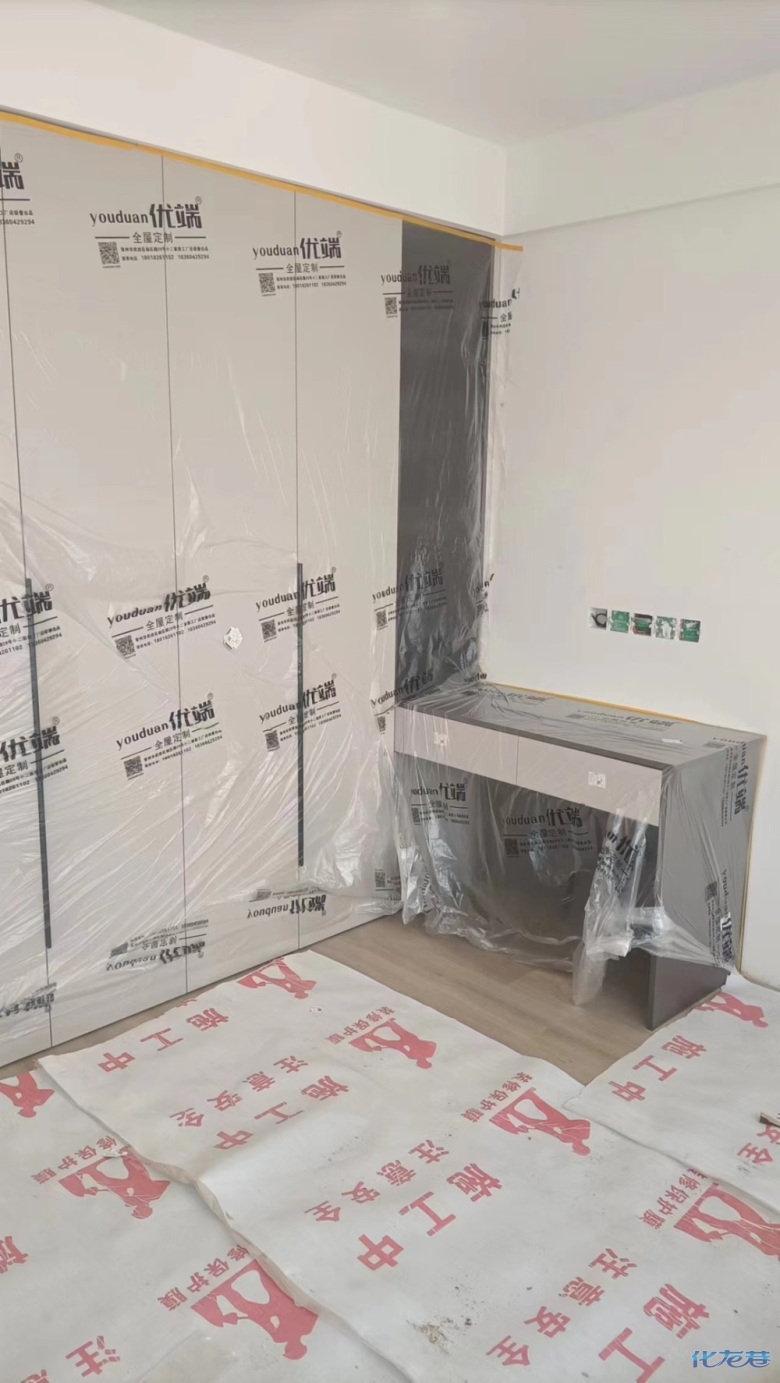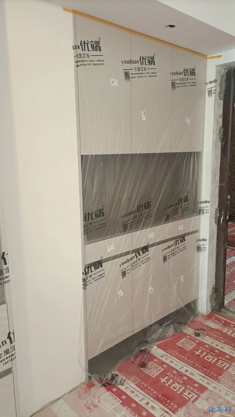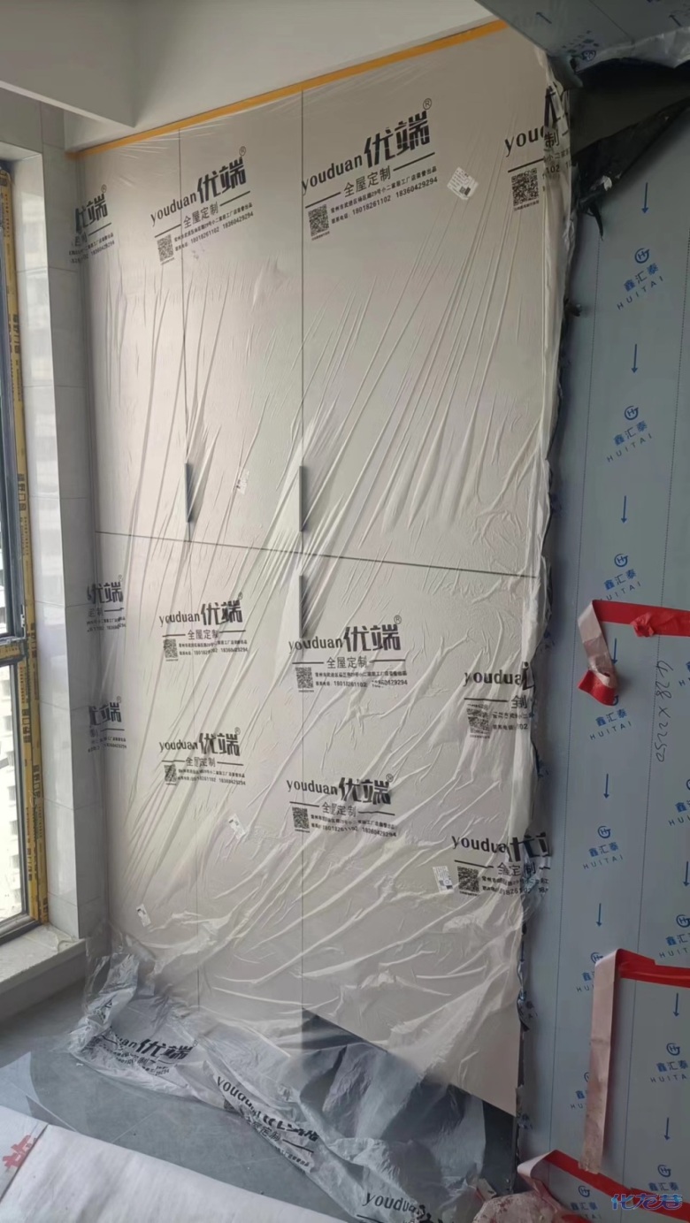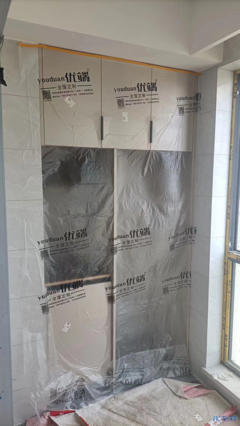 安裝完成的柜子都用塑料膜保護起來了