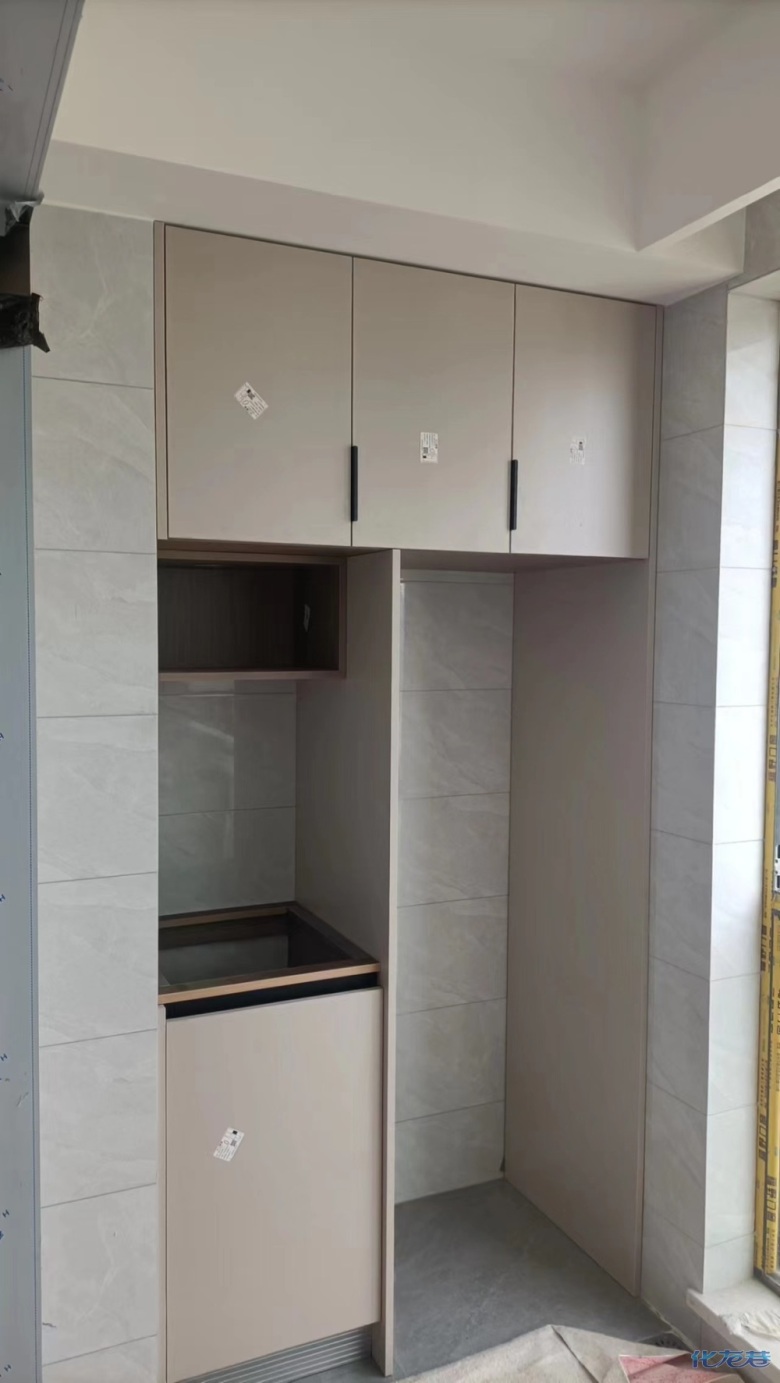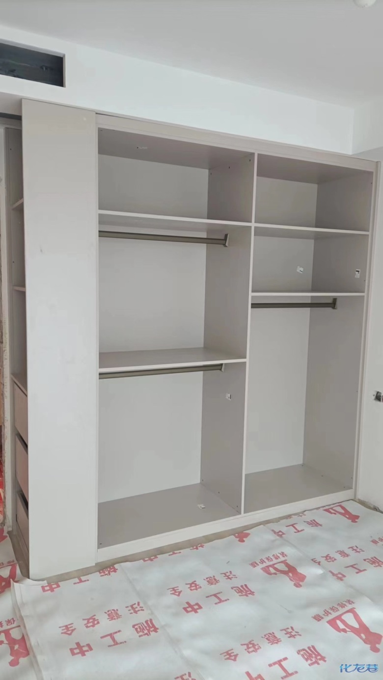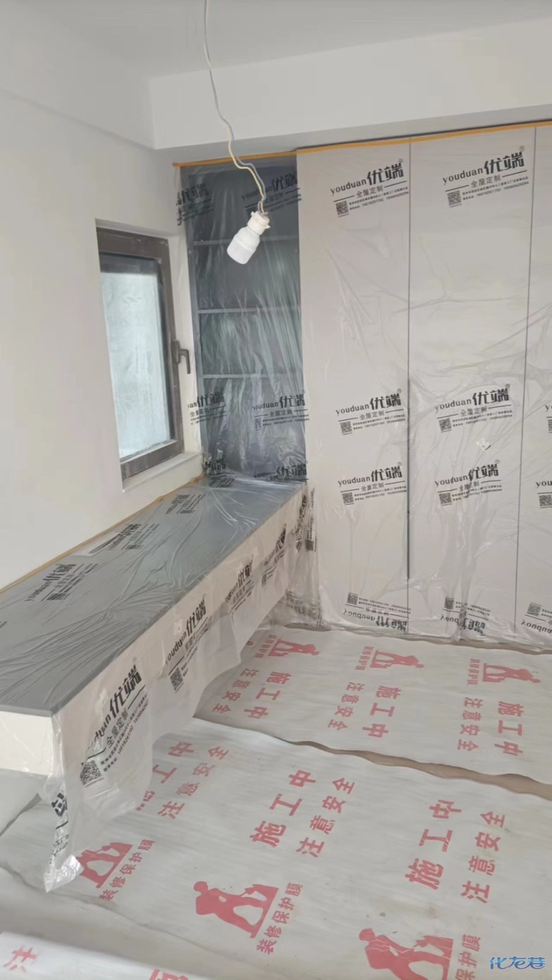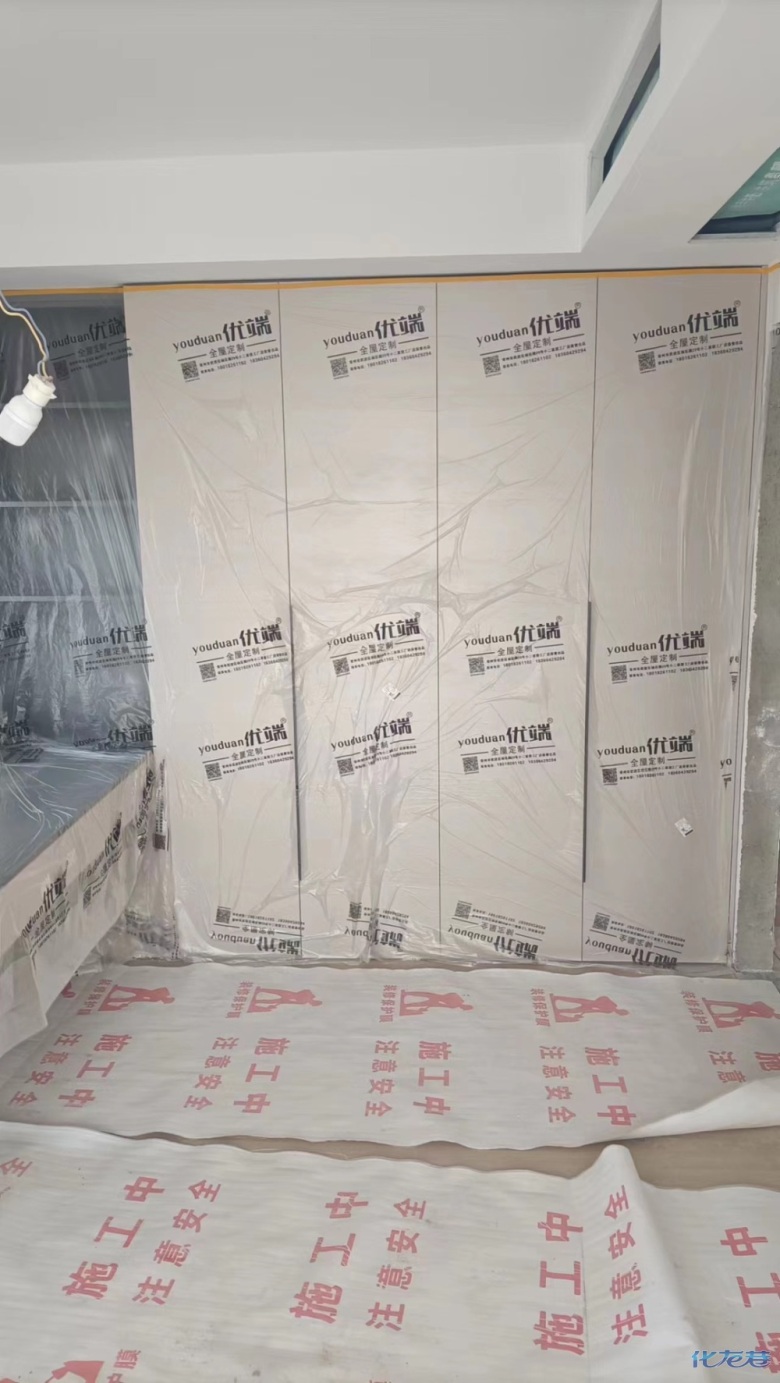 安裝完成的柜子都用塑料膜保護起來了