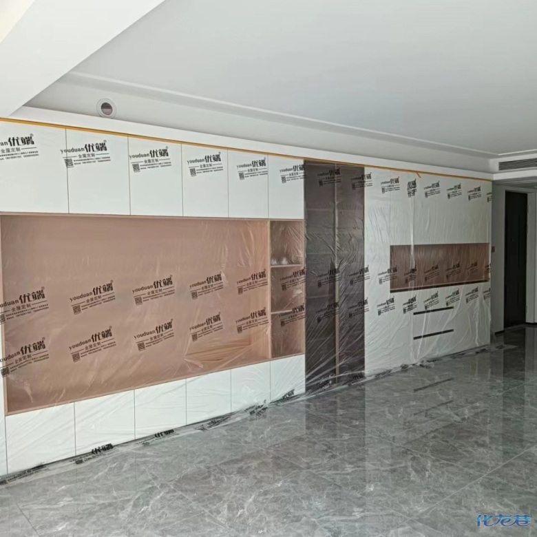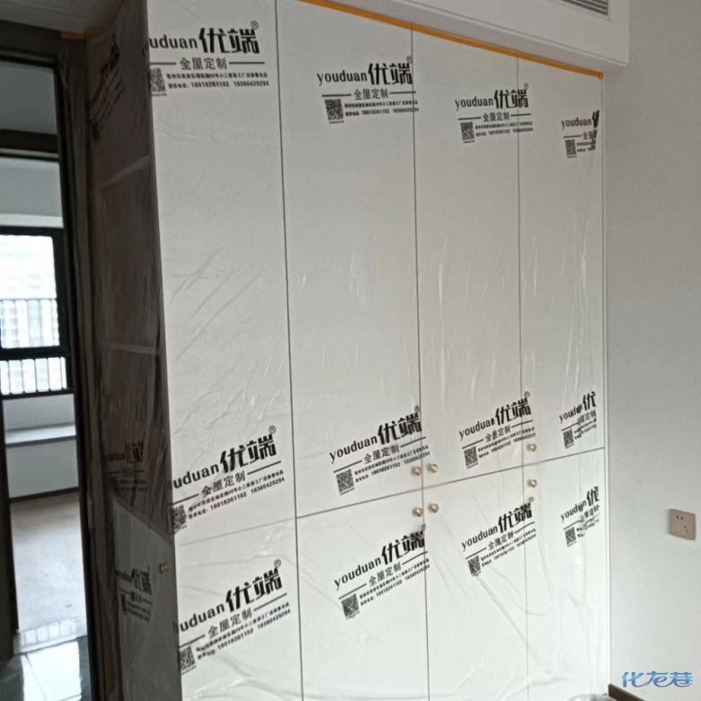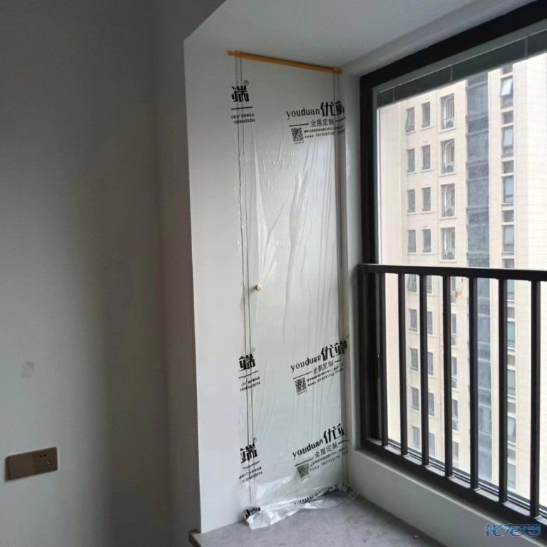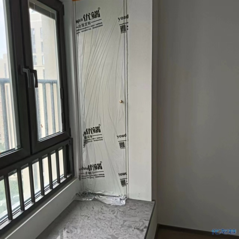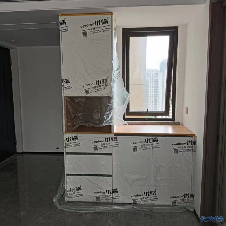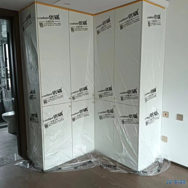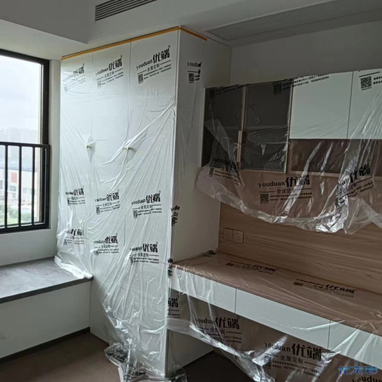 安裝完成的柜子都用塑料膜保護起來了