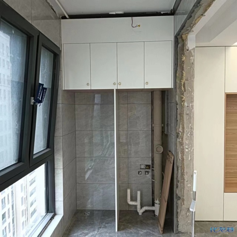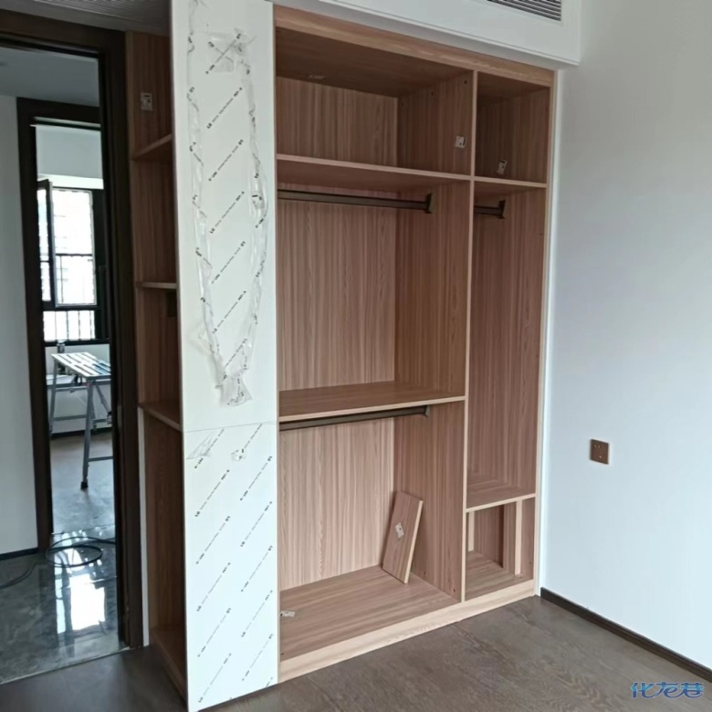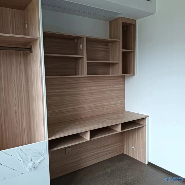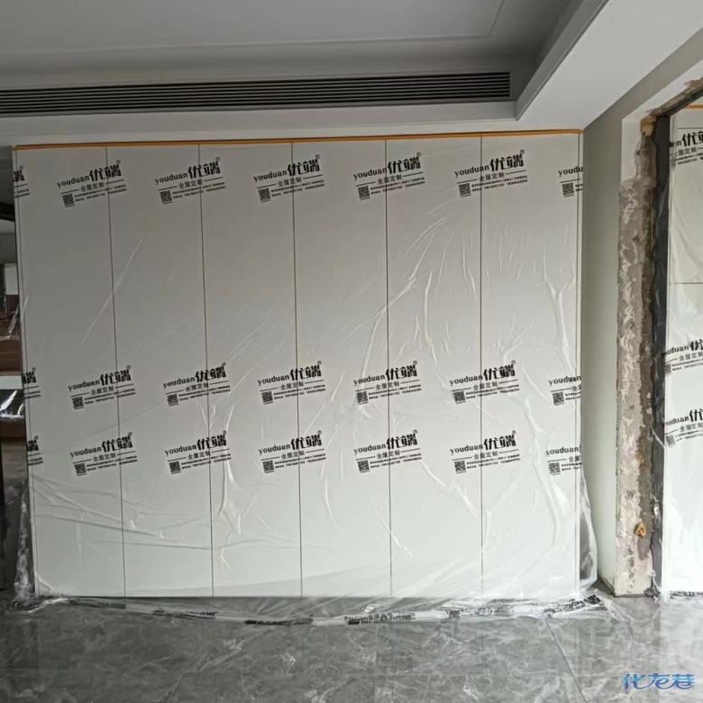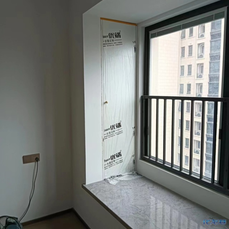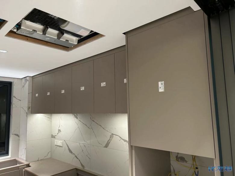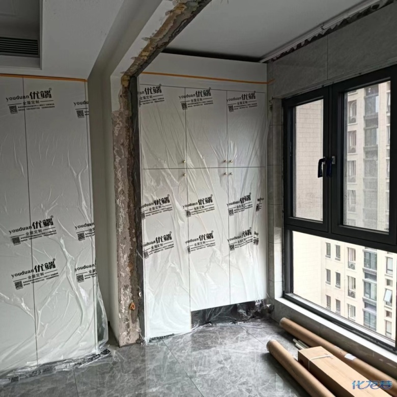 安裝完成的柜子都用塑料膜保護起來了