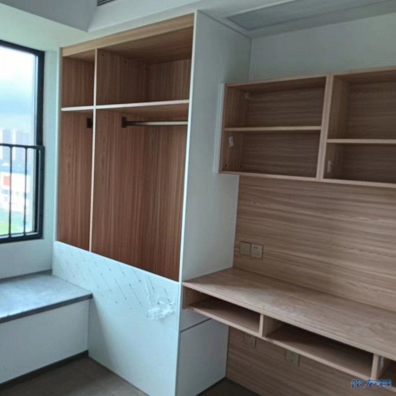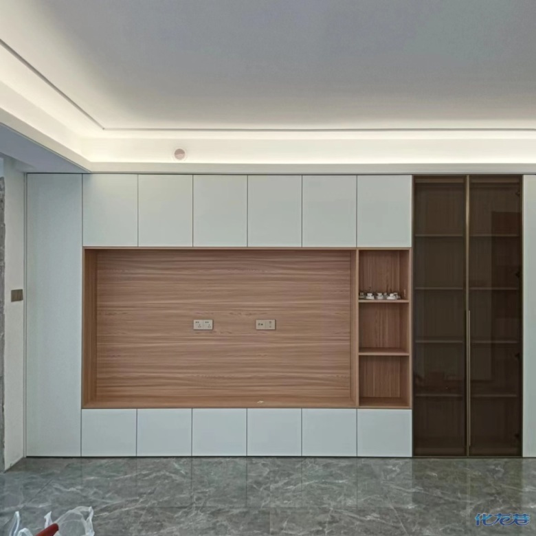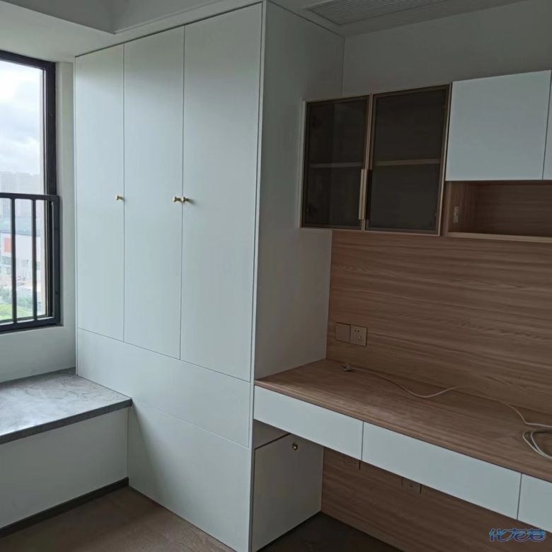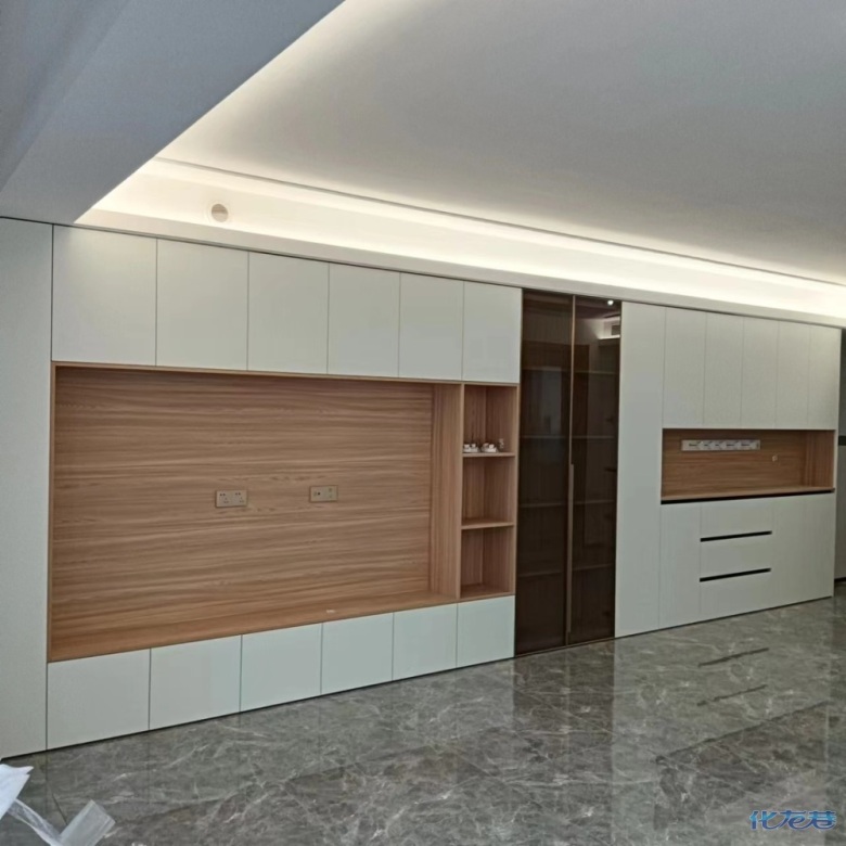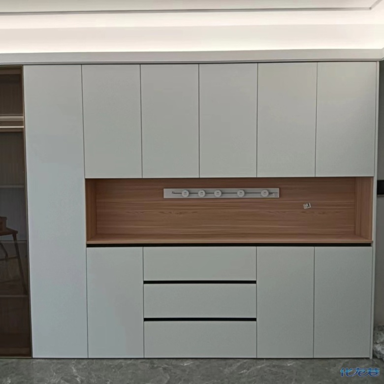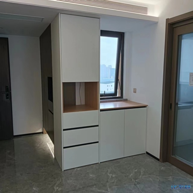 暖白色柜門原木色柜體