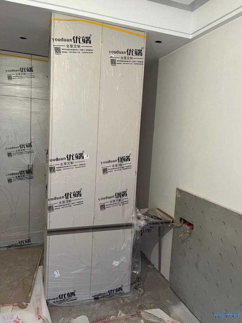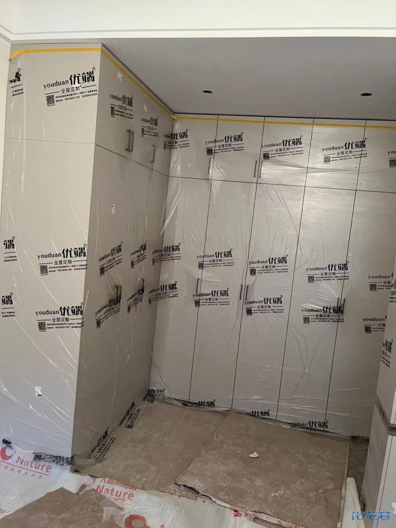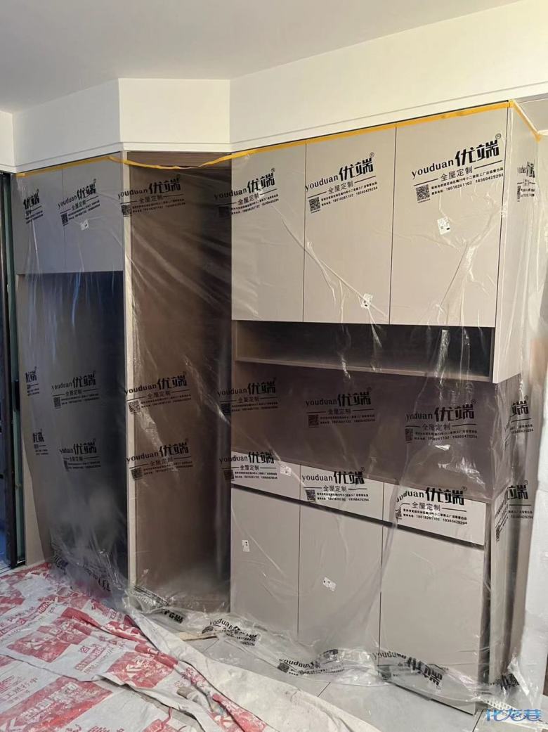 安裝完成的柜子都用塑料膜保護起來了