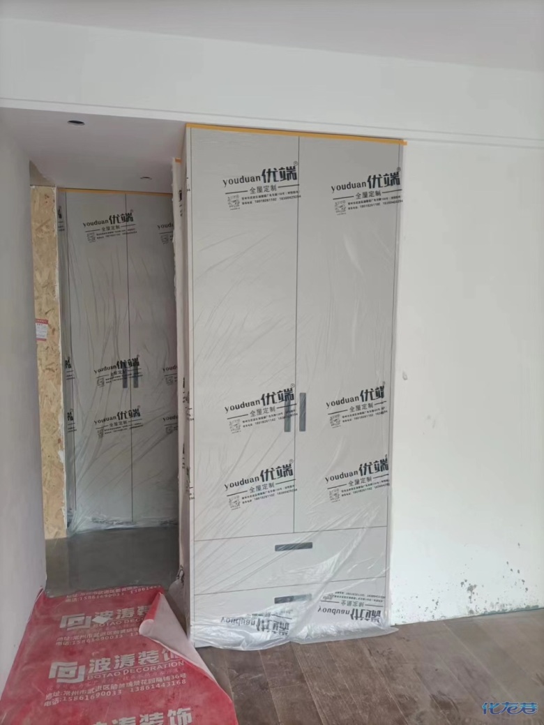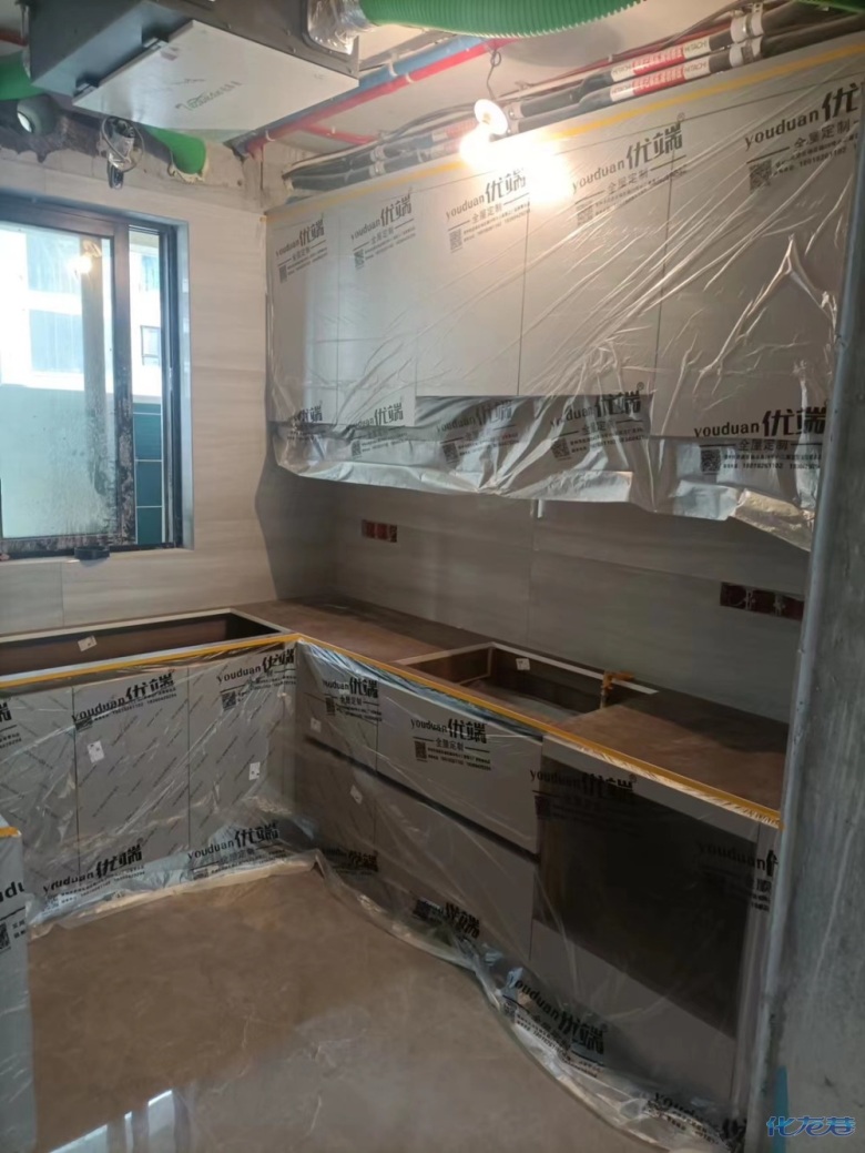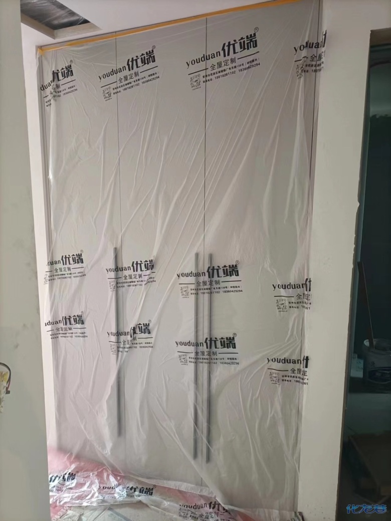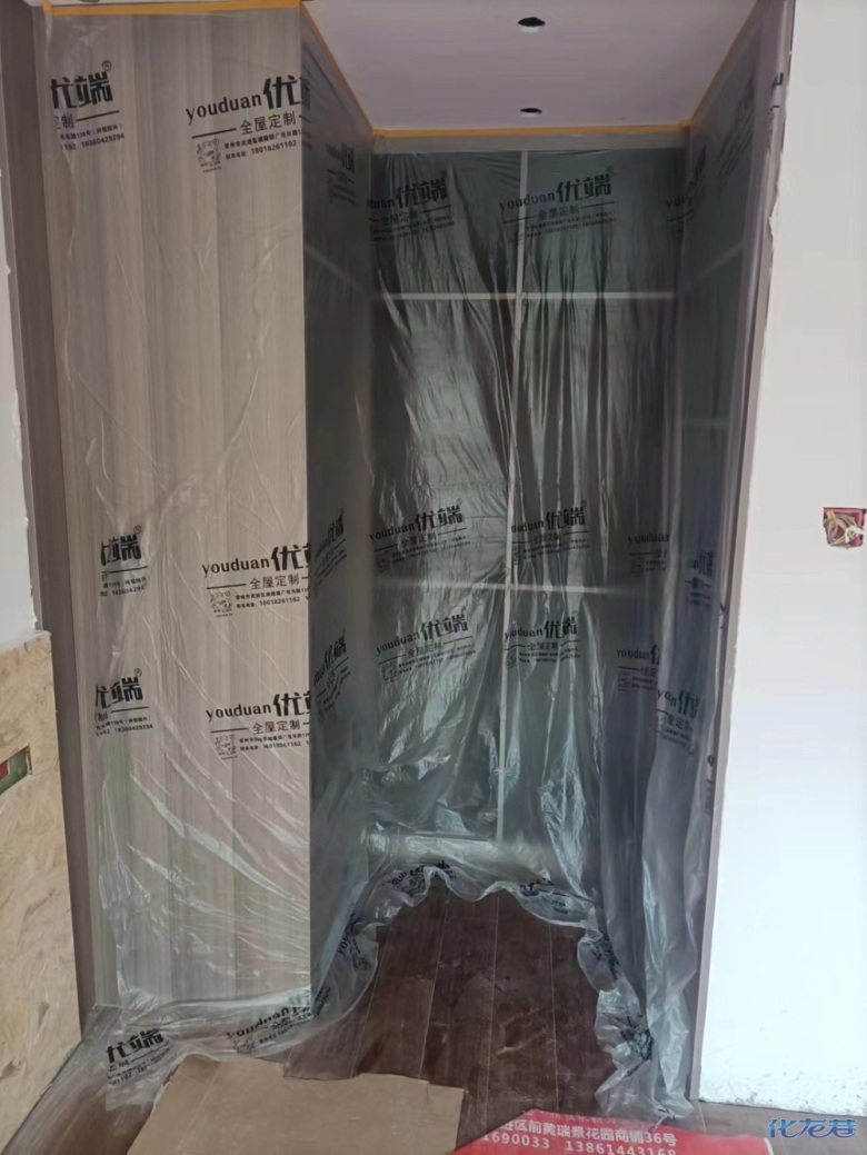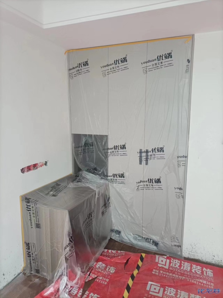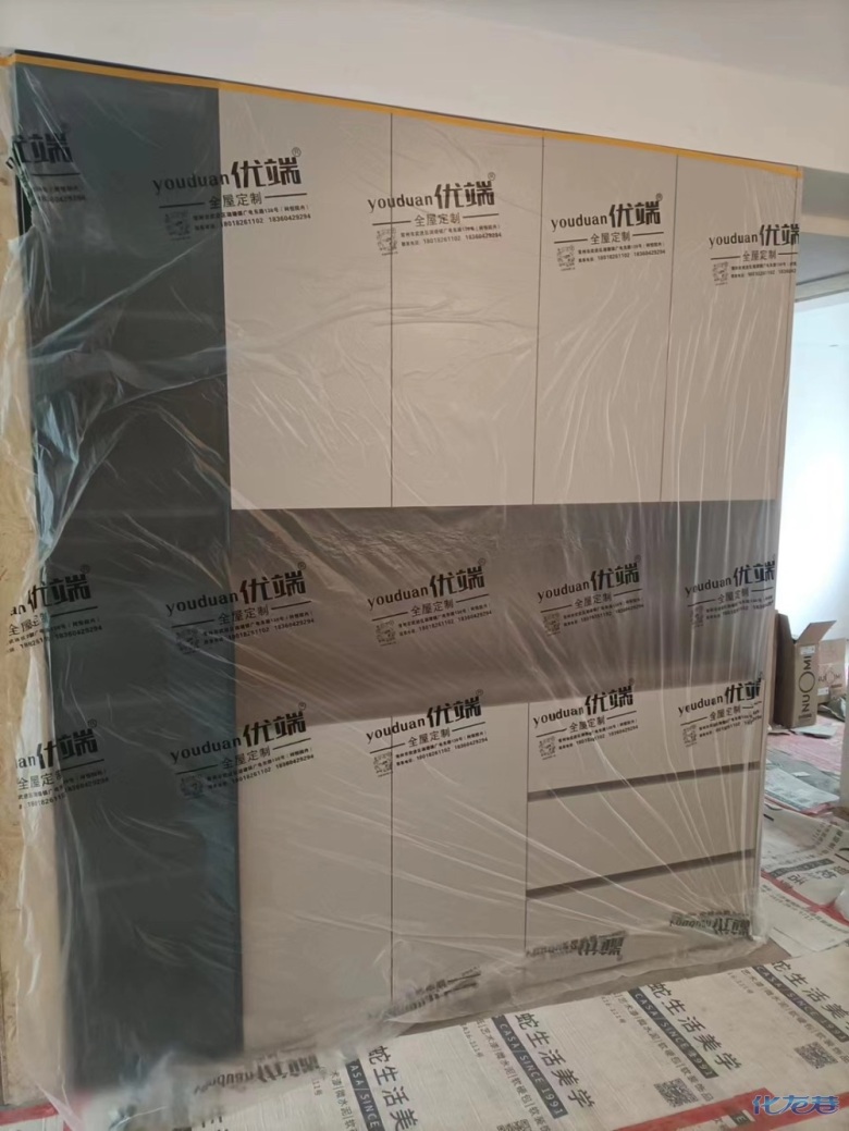 安裝完成的柜子都用塑料膜保護起來了
