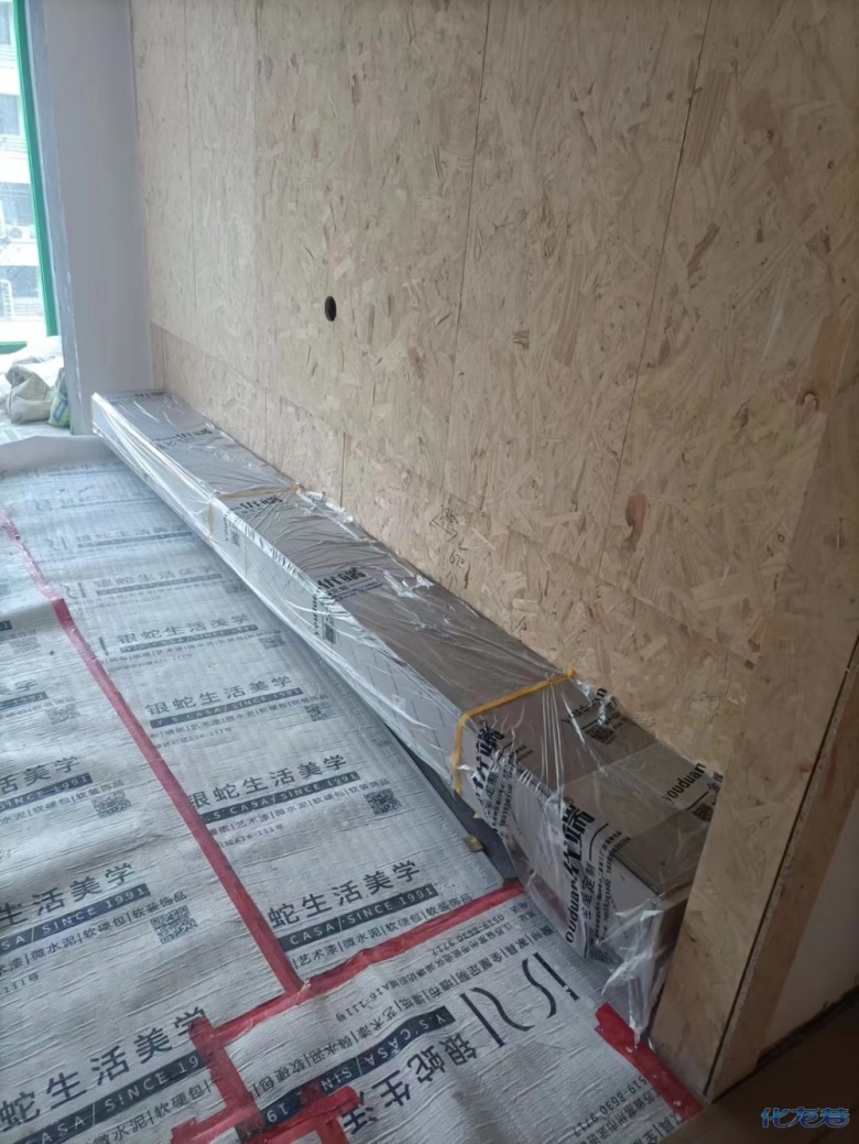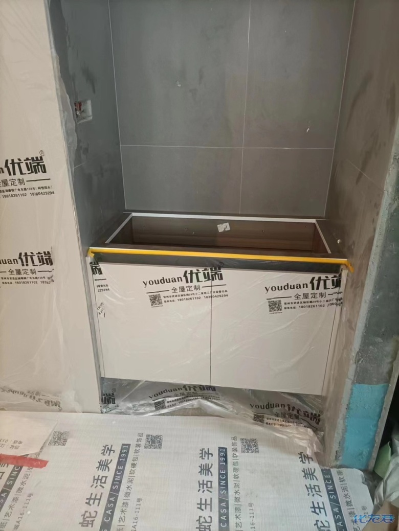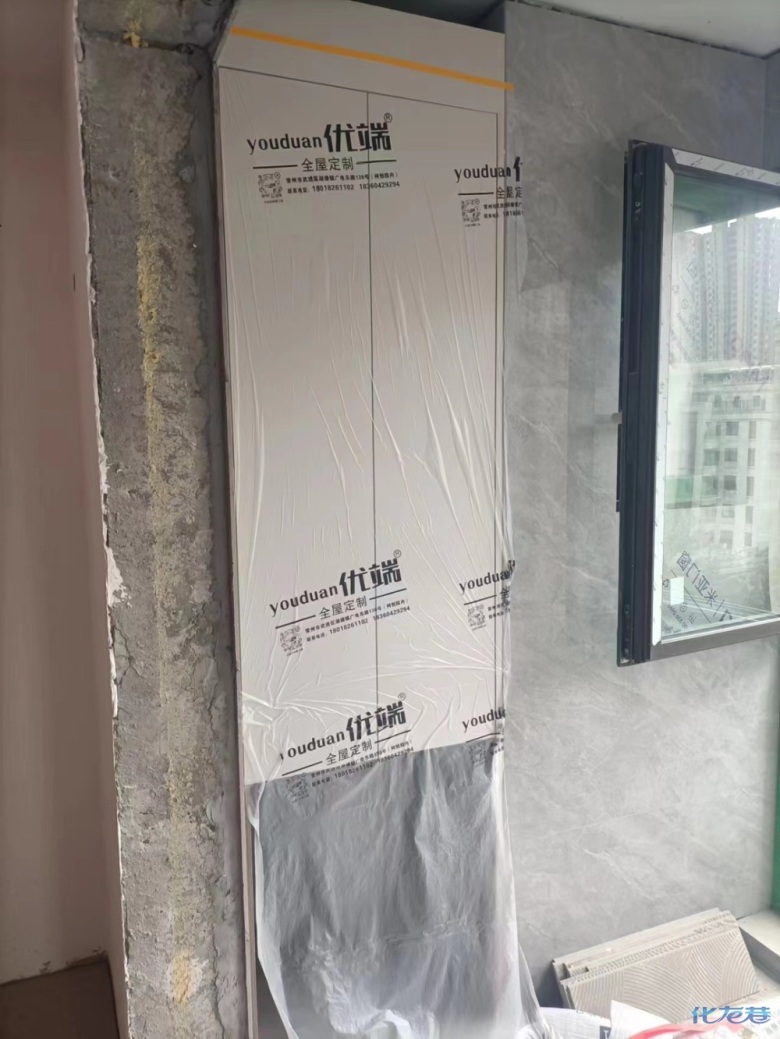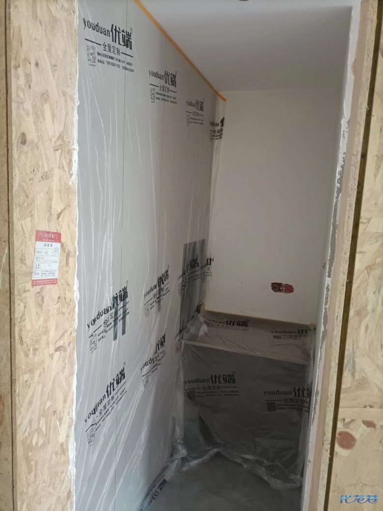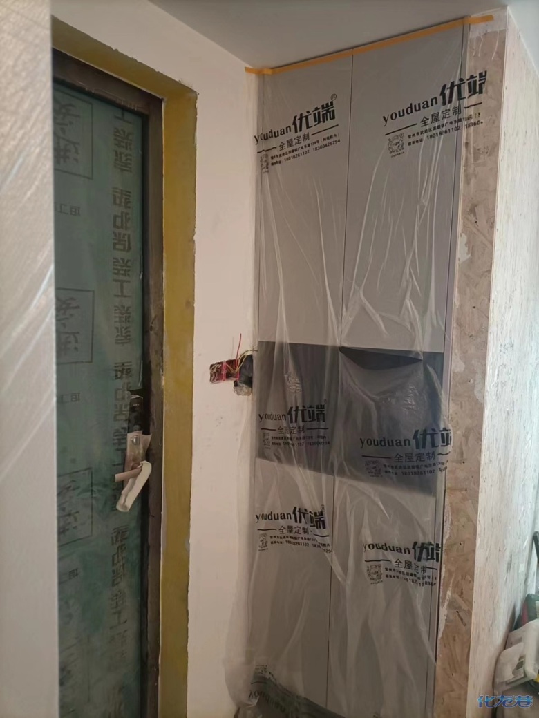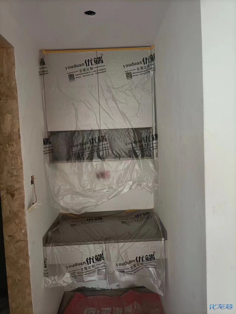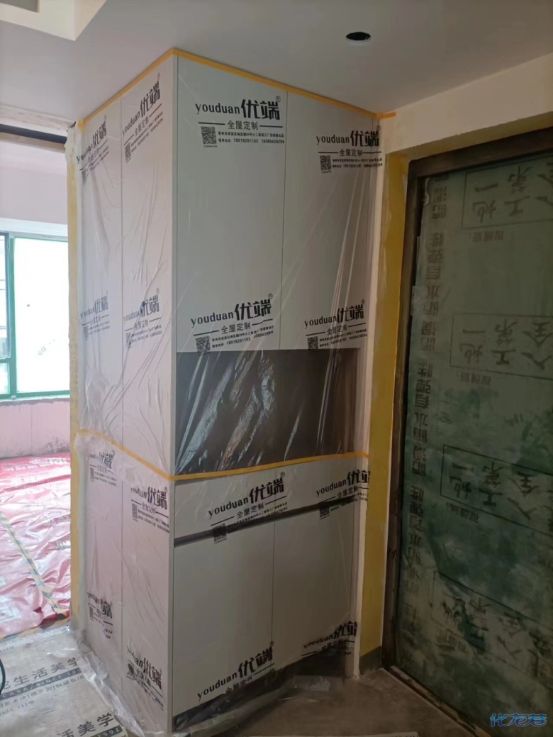 安裝完成的柜子都用塑料膜保護起來了