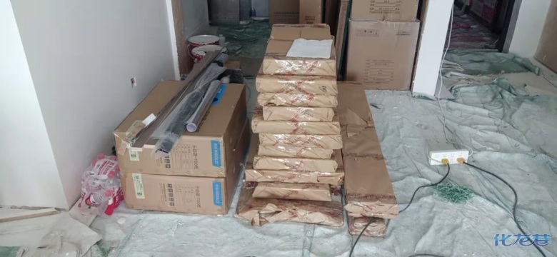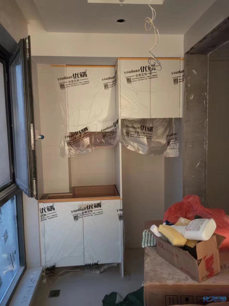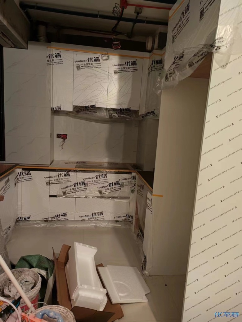 安裝完畢,安裝完成的柜子都用塑料膜保護起來了