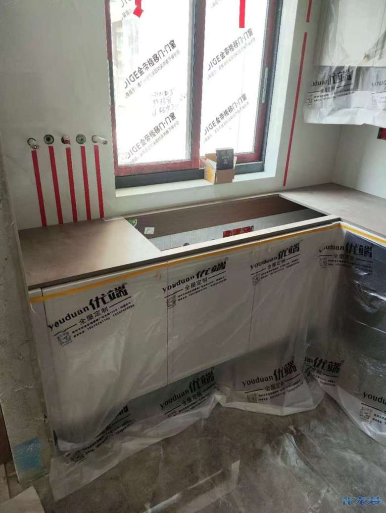 貨已安全送到客戶家了,7 天內安排師傅上門安裝哦。安裝階段請您把您家需要用到的廚房水槽、灶具、浴柜臺盆放置在現場,后期臺面安裝需用到。柜子安裝好后進入臺面測量環節,臺面量完后一個星期內送貨并安裝。