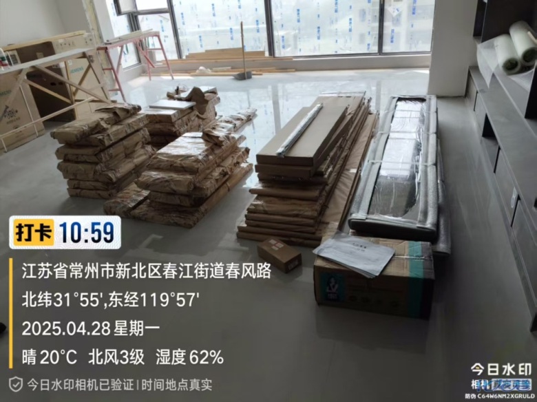 貨已安全送到客戶家了,7 天內安排師傅上門安裝哦。安裝階段請您把您家需要用到的廚房水槽、灶具、浴柜臺盆放置在現場,后期臺面安裝需用到。柜子安裝好后進入臺面測量環節,臺面量完后一個星期內送貨并安裝。