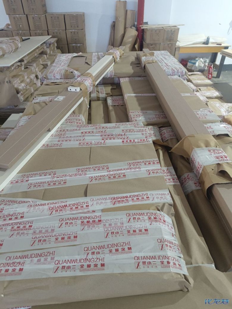 進入打包環(huán)節(jié),我家柜子每塊板都是整個打包起來的,以防運輸過程中劃傷或者磕碰到,跟板材下面墊板一個原理哦!重新訂板會存在色差,這是重點,圈起來必考。全部打包好就可以聯(lián)系客戶送貨咯!