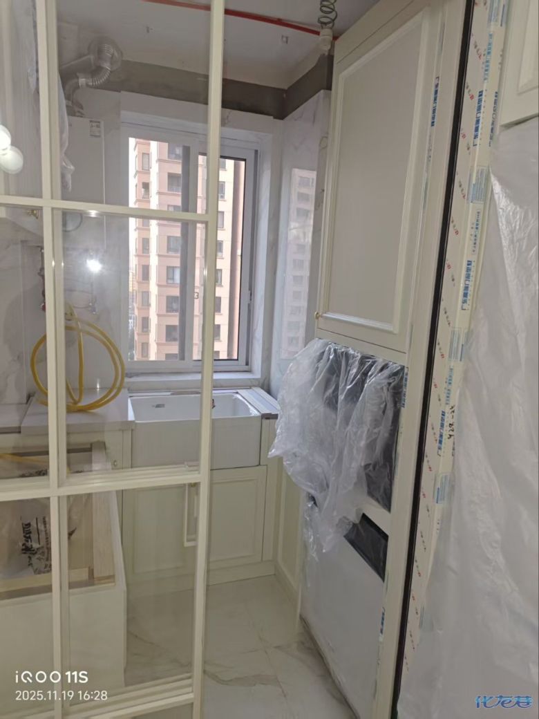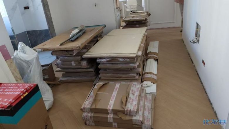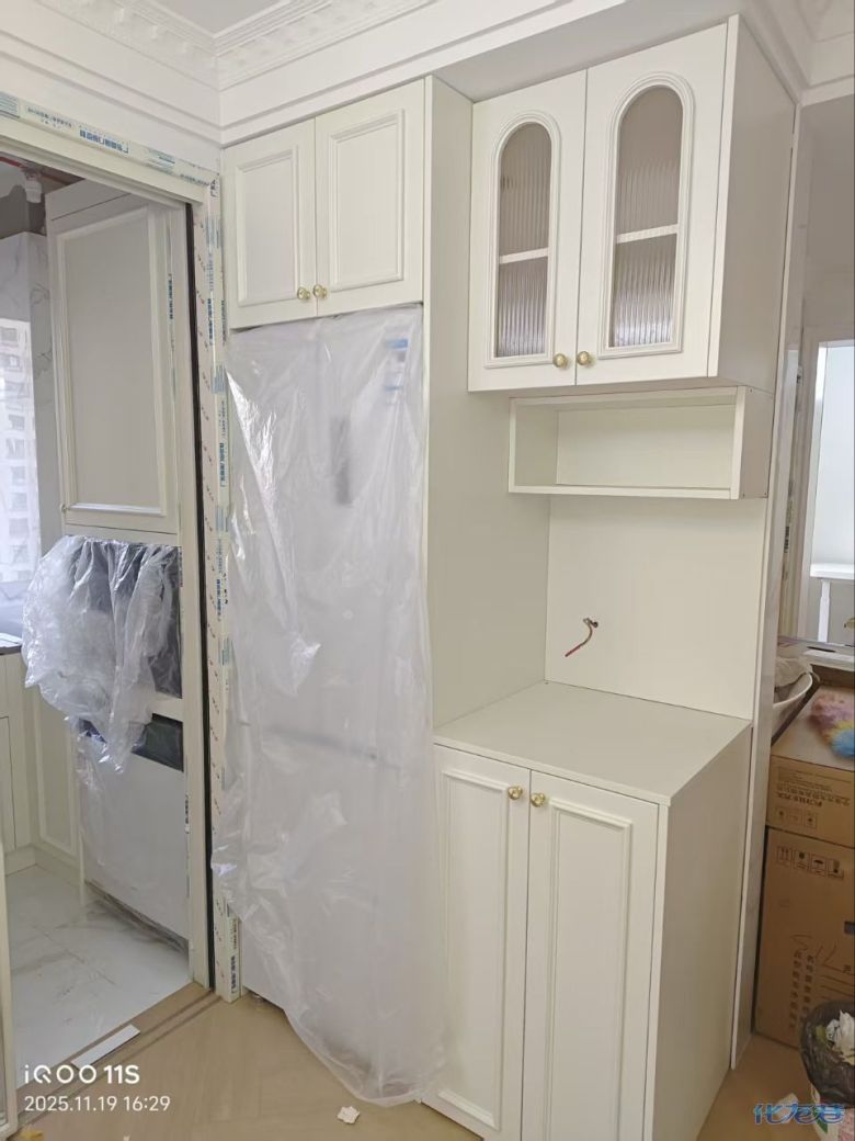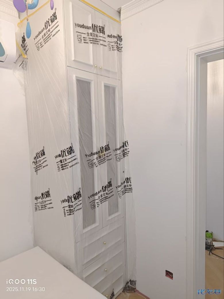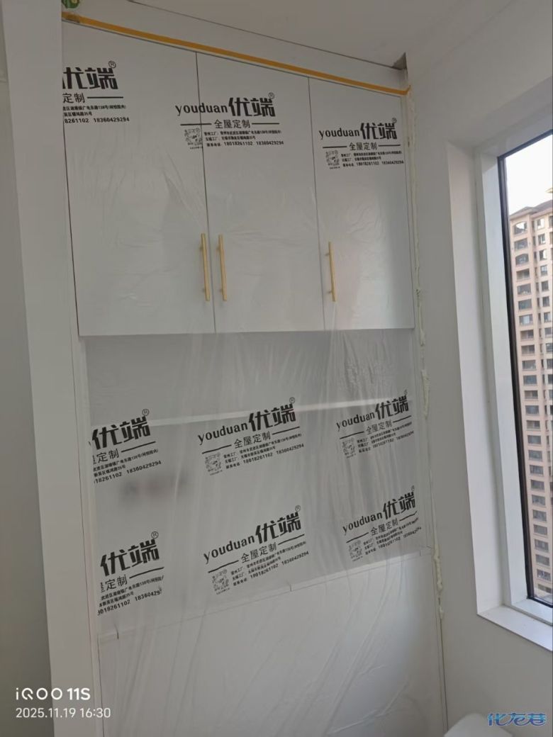 安裝完成的柜子都用塑料膜保護起來了