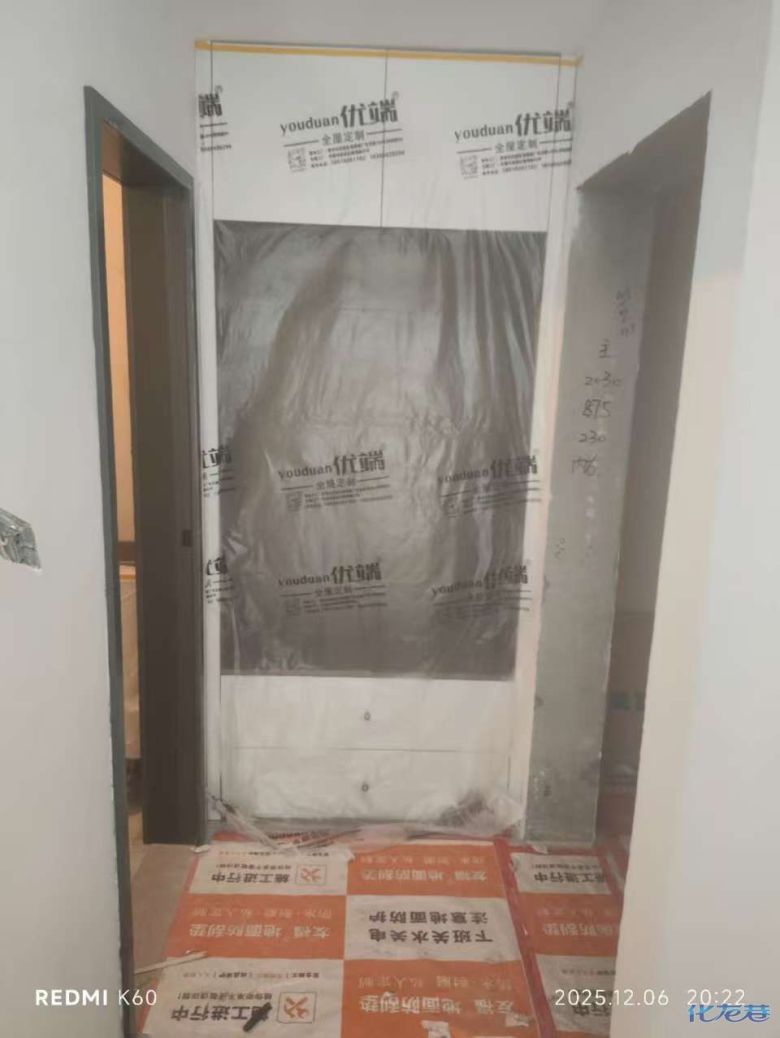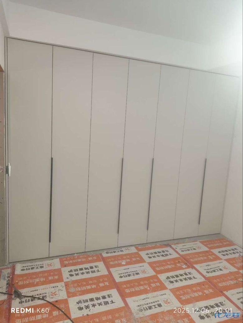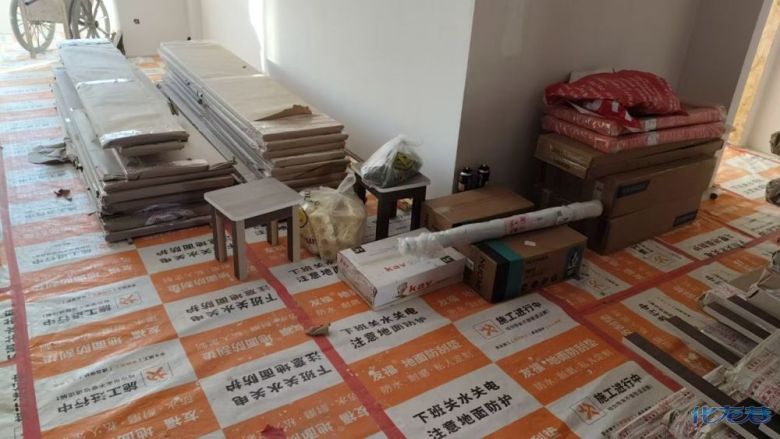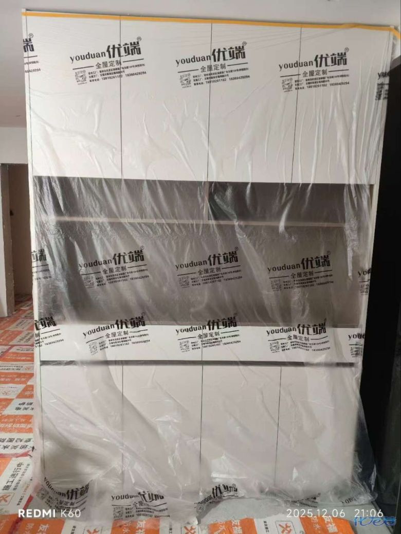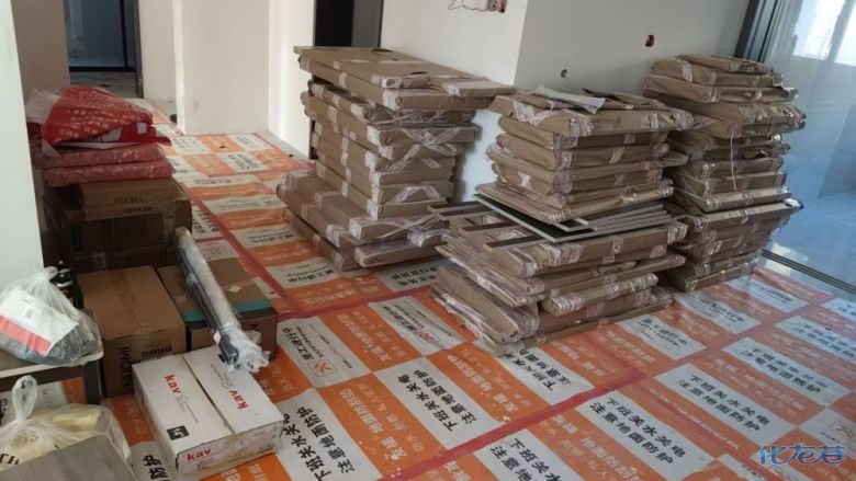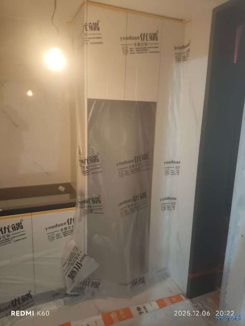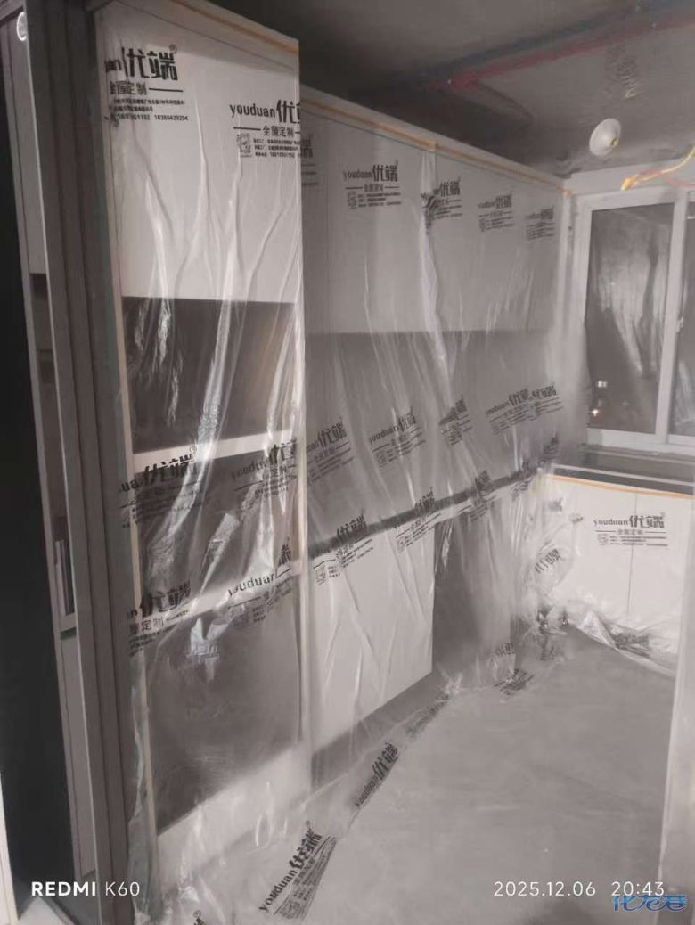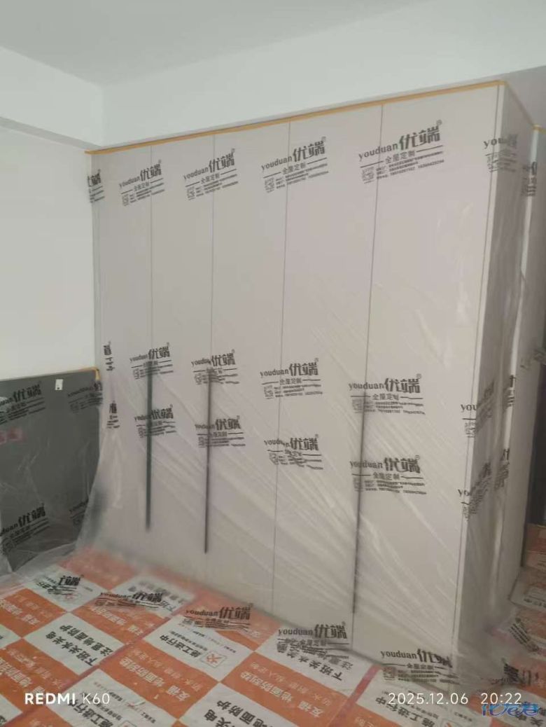 安裝完成的柜子都用塑料膜保護起來了