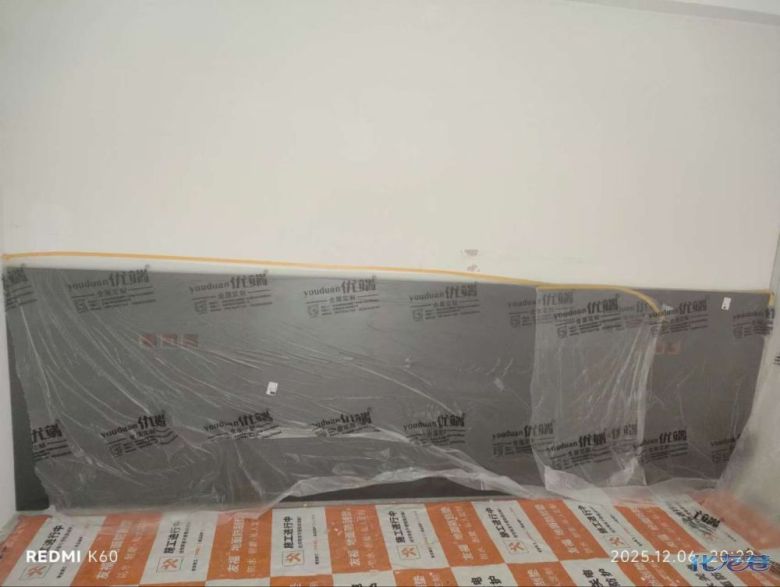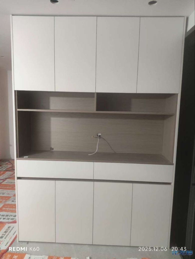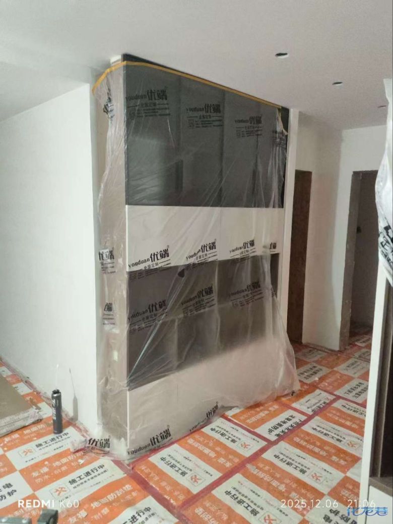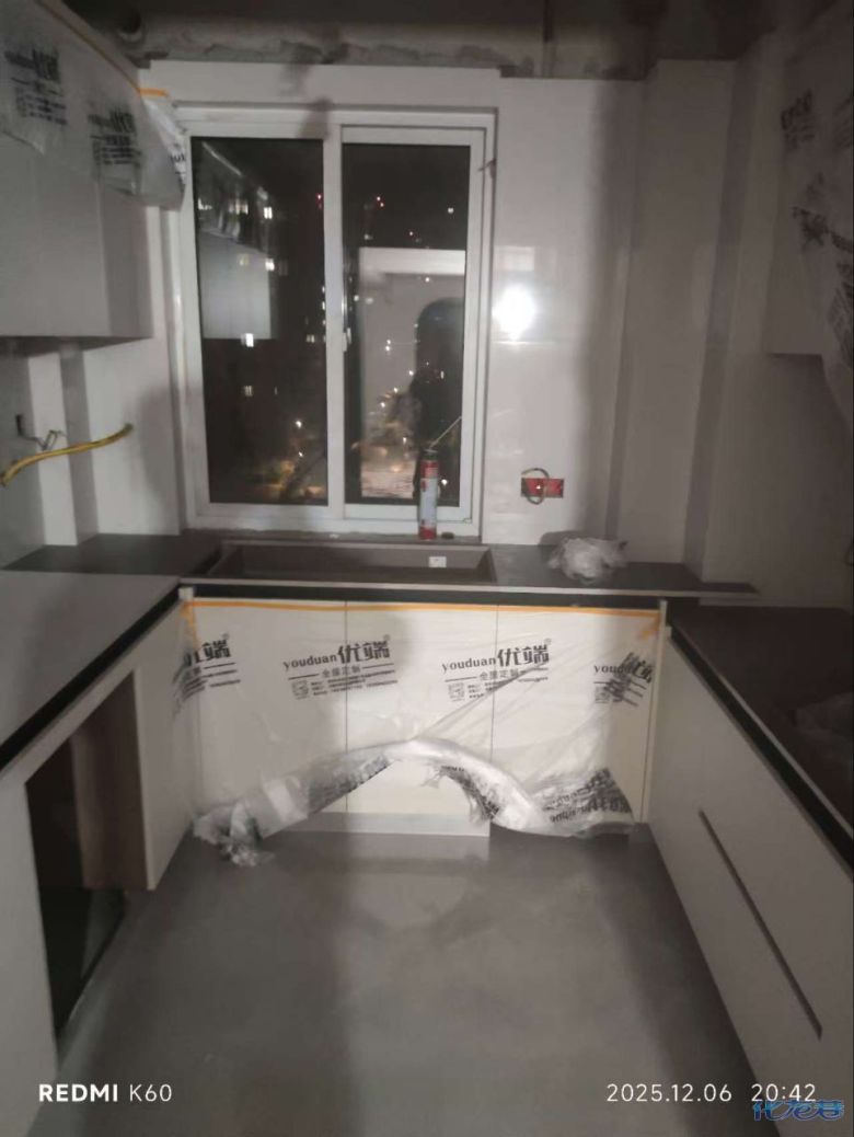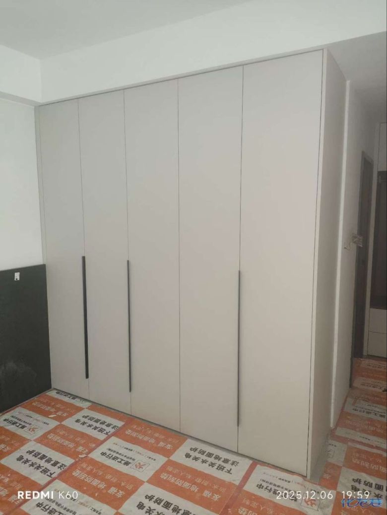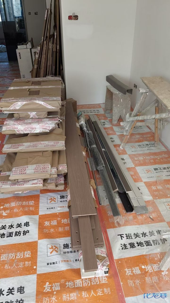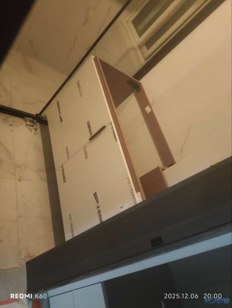 安裝完成的柜子都用塑料膜保護起來了
