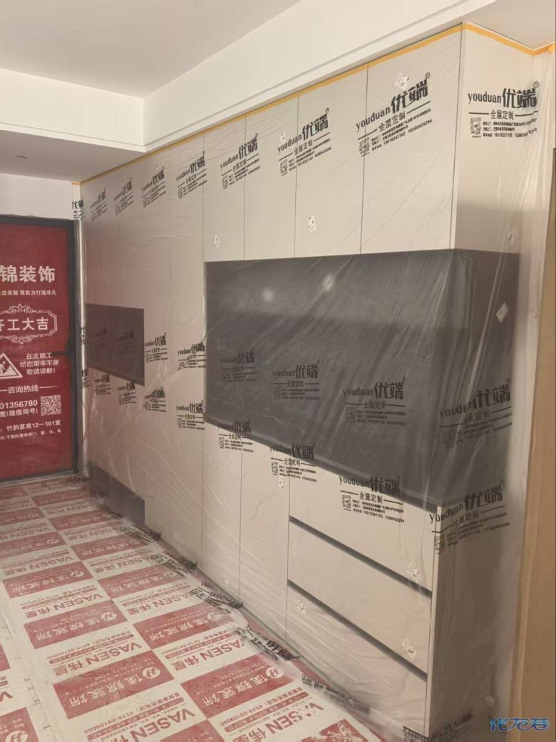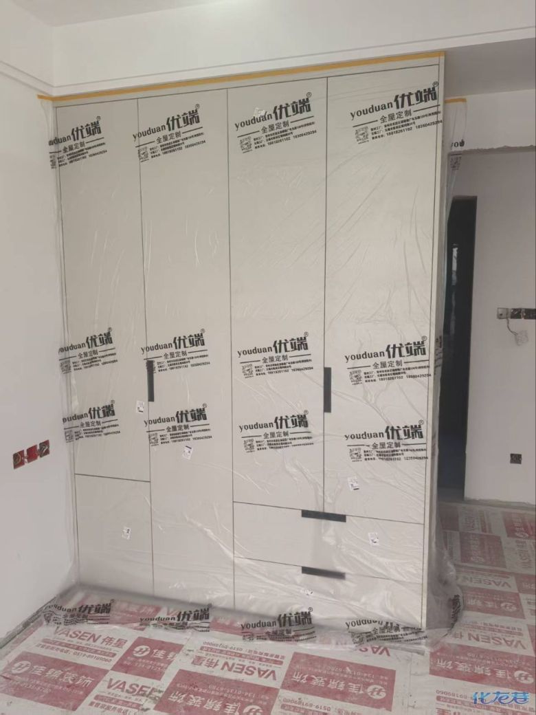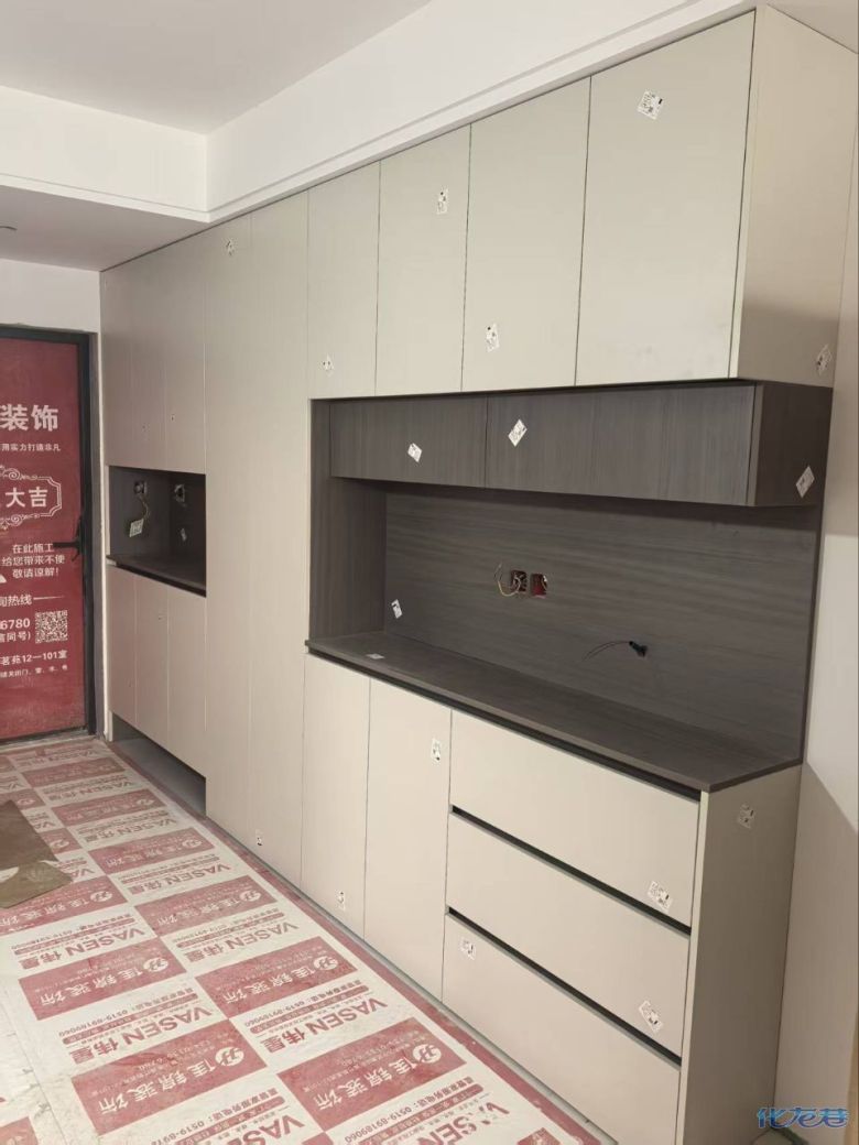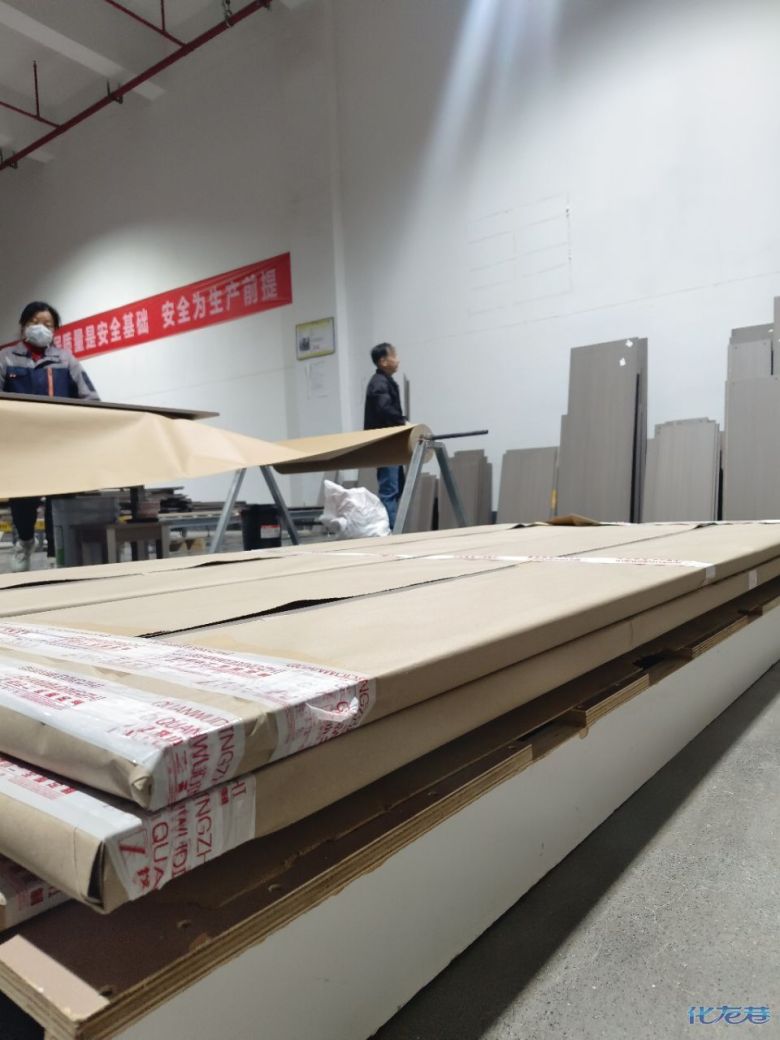 開始封邊啦 封邊的同時,側(cè)面打孔也進行時,雙管齊下。 進入打包環(huán)節(jié),我家柜子每塊板都是整個打包起來的,以防運輸過程中劃傷或者磕碰到,跟板材下面墊板一個原理哦!重新訂板會存在色差,這是重點,圈起來必考。全部打包好就可以聯(lián)系客戶送貨咯! 貨已安全送到客戶家了 安裝完成的柜子都用塑料膜保護起來了