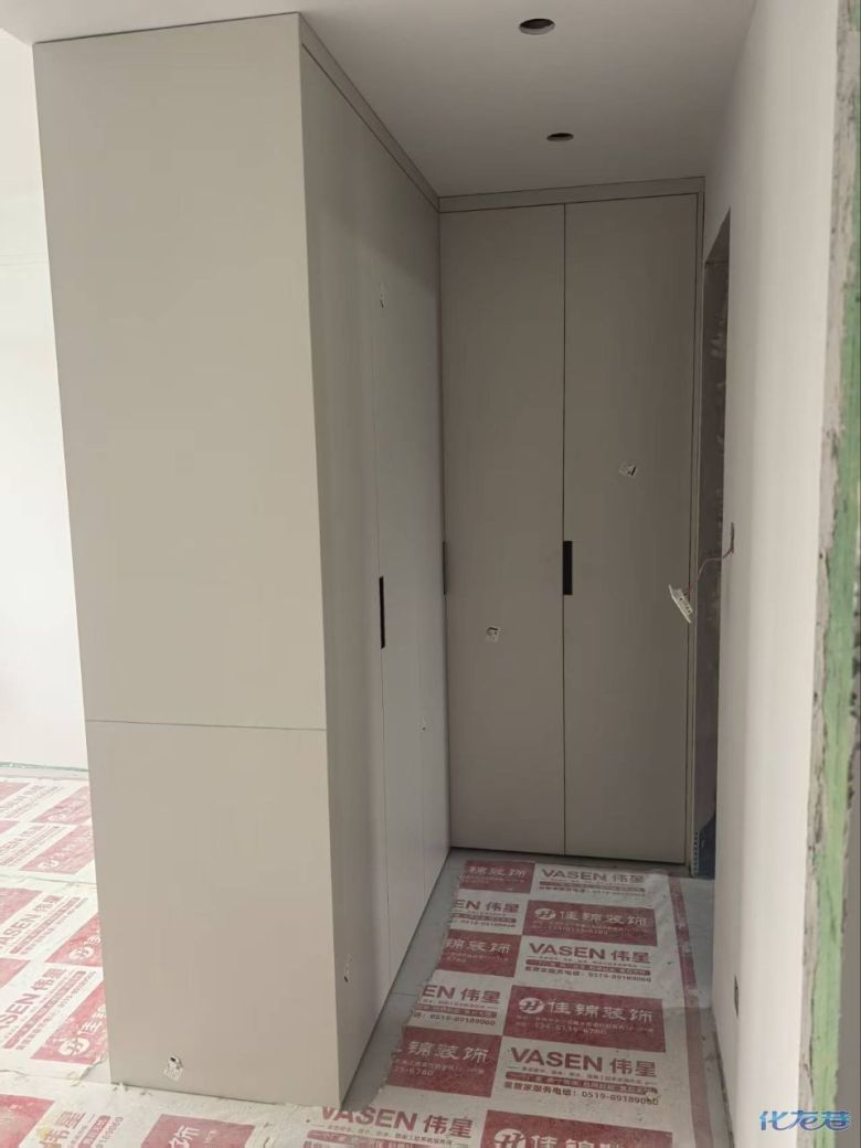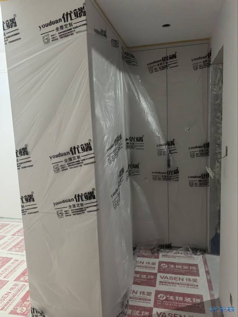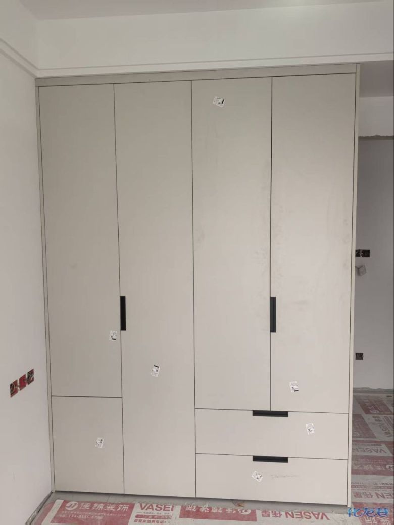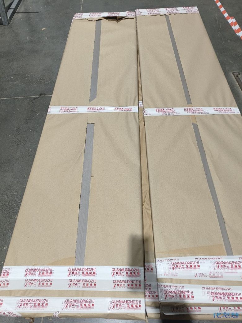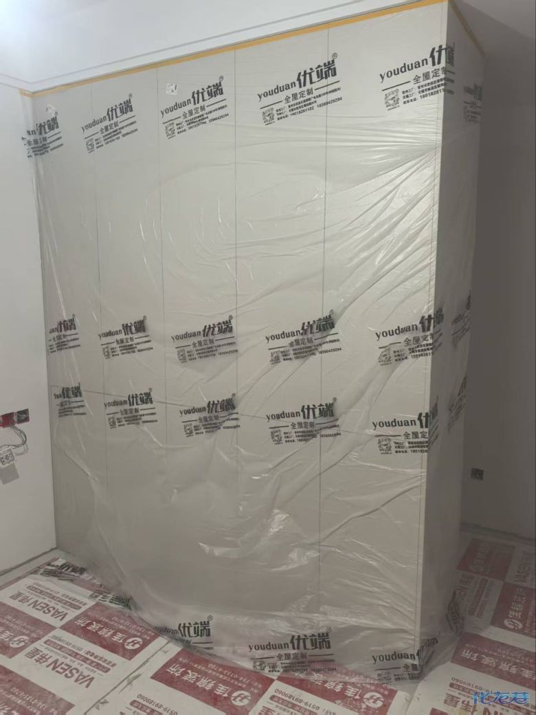 開始封邊啦 封邊的同時,側(cè)面打孔也進行時,雙管齊下。 進入打包環(huán)節(jié),我家柜子每塊板都是整個打包起來的,以防運輸過程中劃傷或者磕碰到,跟板材下面墊板一個原理哦!重新訂板會存在色差,這是重點,圈起來必考。全部打包好就可以聯(lián)系客戶送貨咯! 貨已安全送到客戶家了 安裝完成的柜子都用塑料膜保護起來了