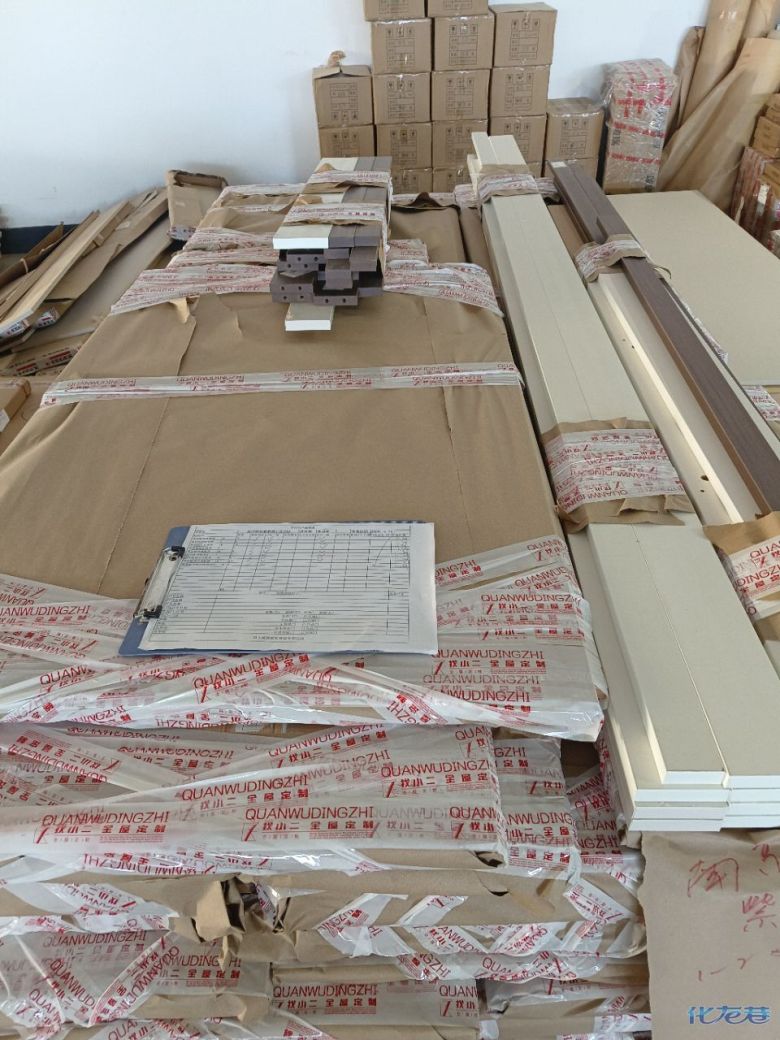 進入打包環節,我家柜子每塊板都是整個打包起來的,以防運輸過程中劃傷或者磕碰到,跟板材下面墊板一個原理哦!重新訂板會存在色差,這是重點,圈起來必考。全部打包好就可以聯系客戶送貨咯!