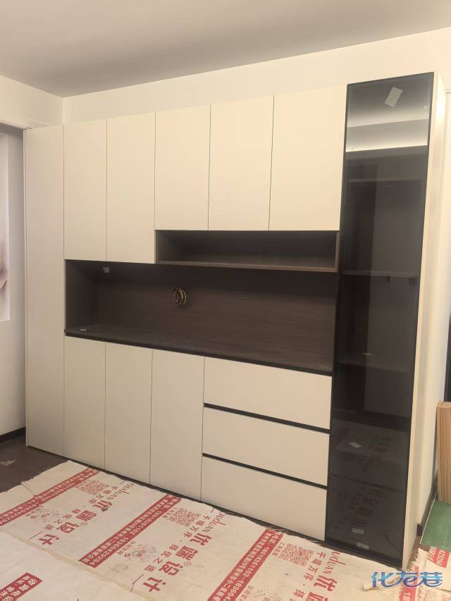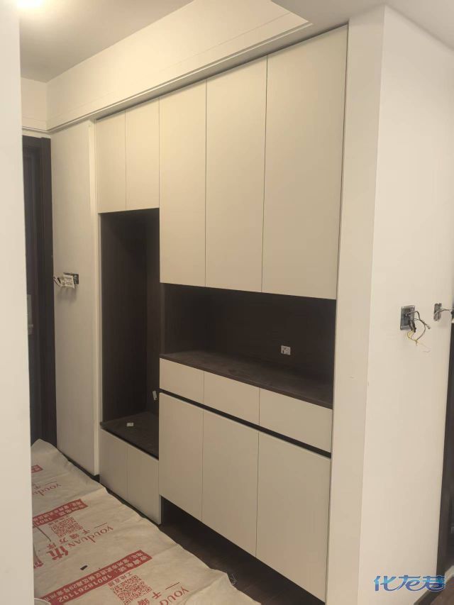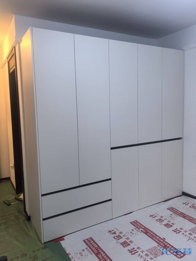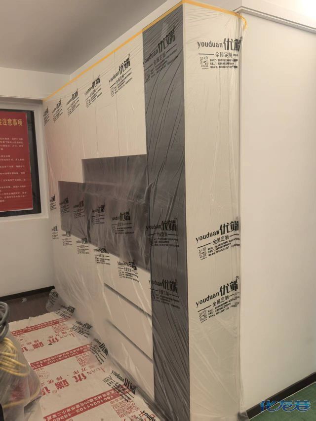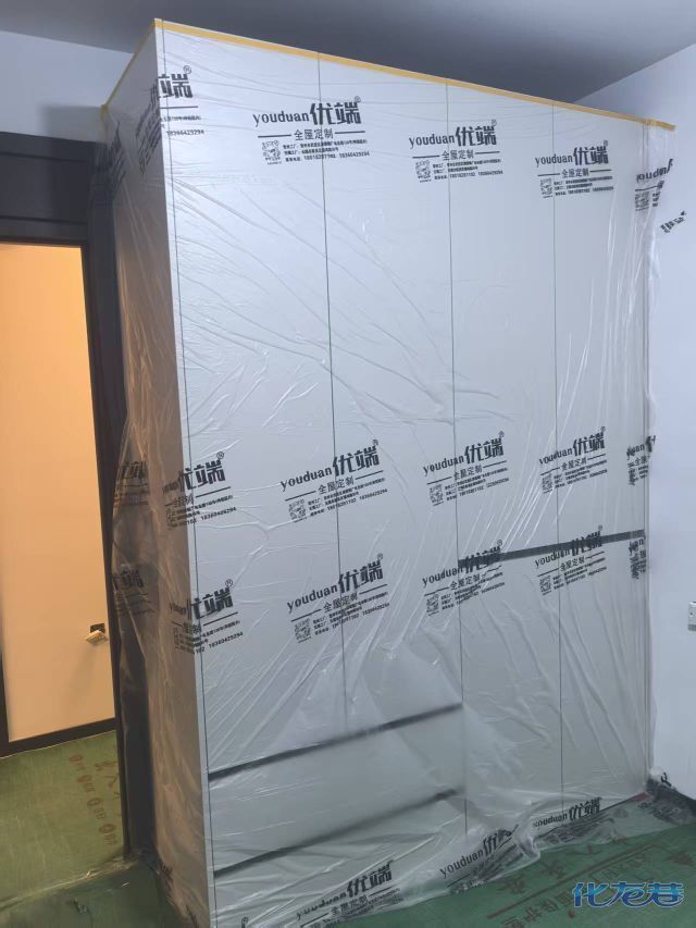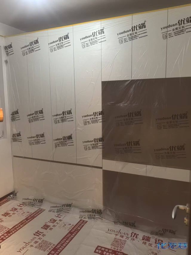 安裝完成的柜子都用塑料膜保護起來了