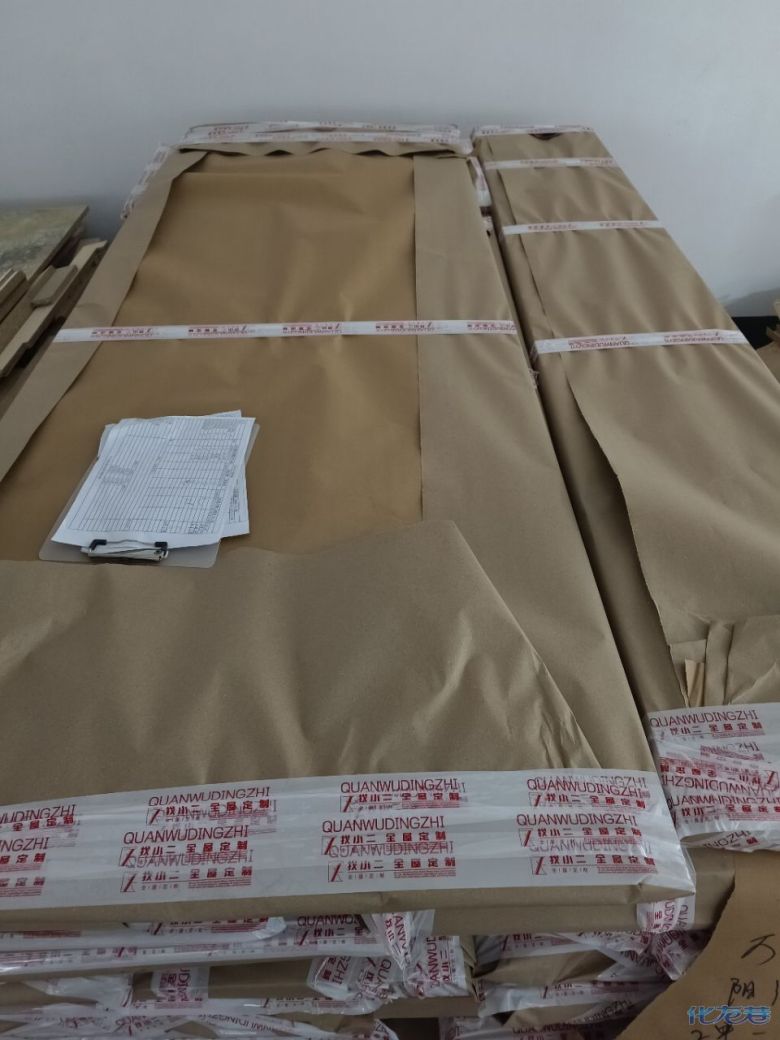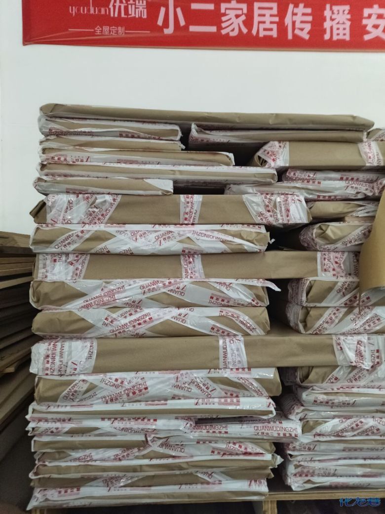 進(jìn)入打包環(huán)節(jié),我家柜子每塊板都是整個(gè)打包起來的,以防運(yùn)輸過程中劃傷或者磕碰到,跟板材下面墊板一個(gè)原理哦!重新訂板會(huì)存在色差,這是重點(diǎn),圈起來必考。全部打包好就可以聯(lián)系客戶送貨咯!