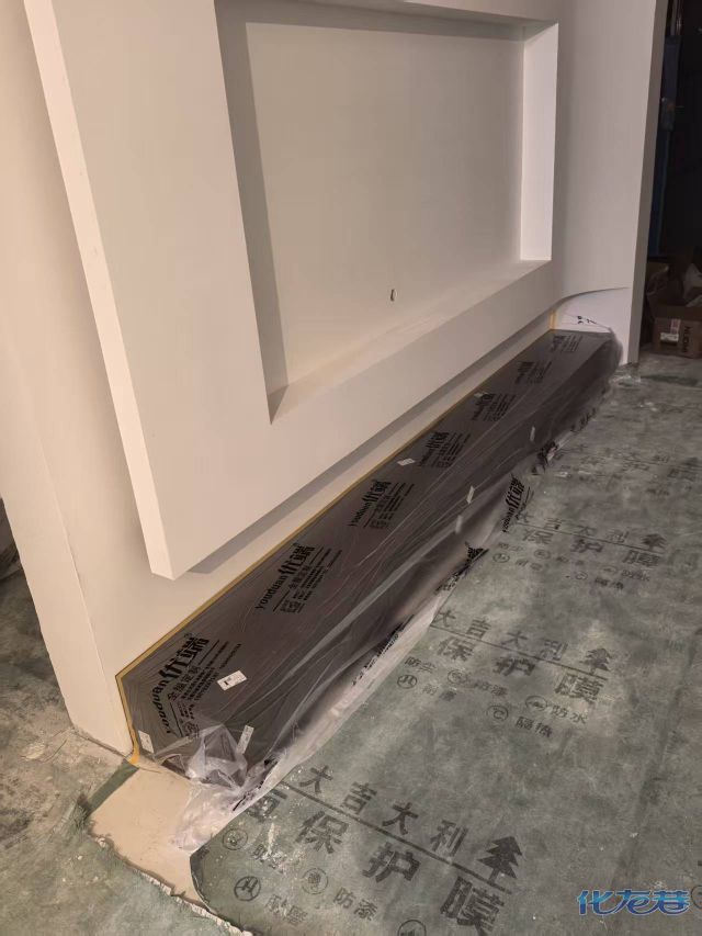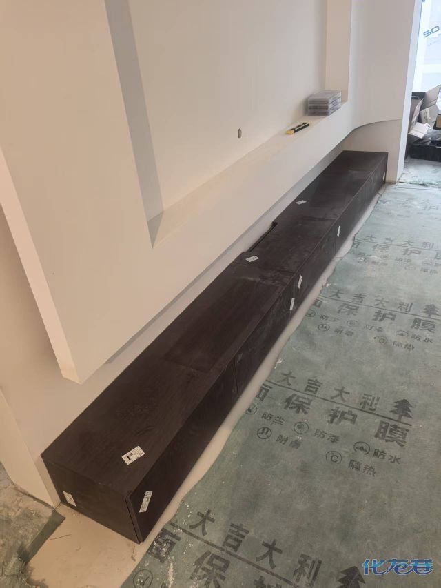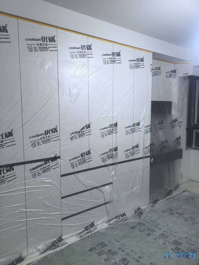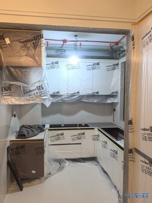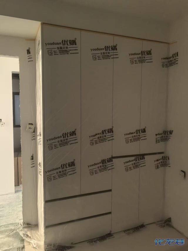 安裝完成的柜子都用塑料膜保護起來了