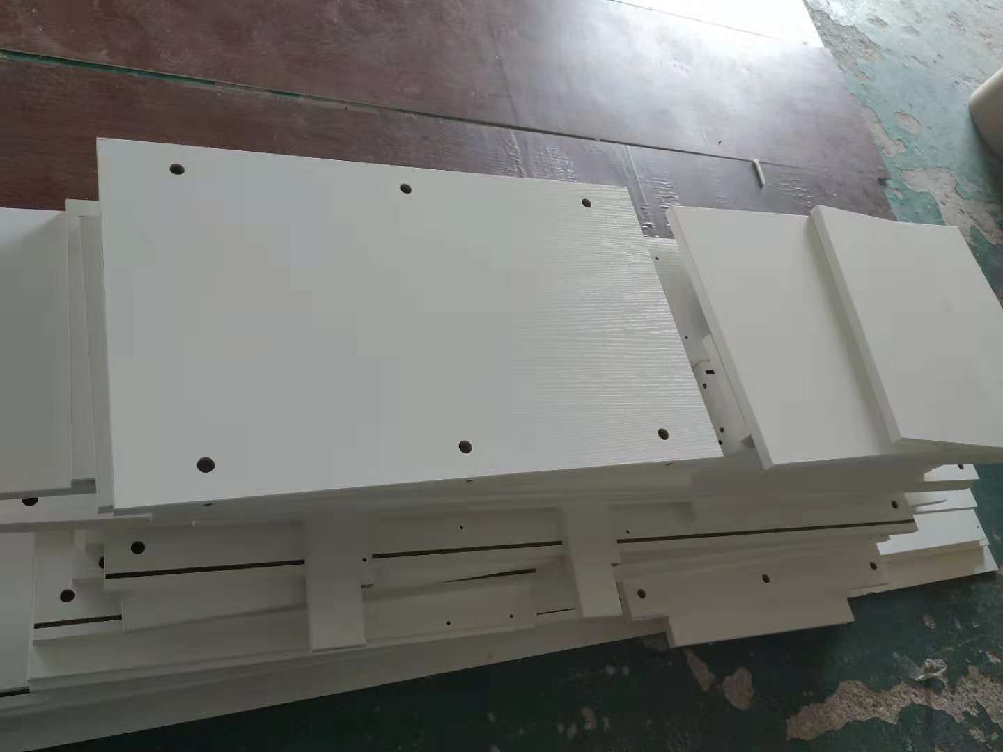 柜體使用暖白色板材制作,柜門使用清水橡木色板材制作,門板板材待封邊。