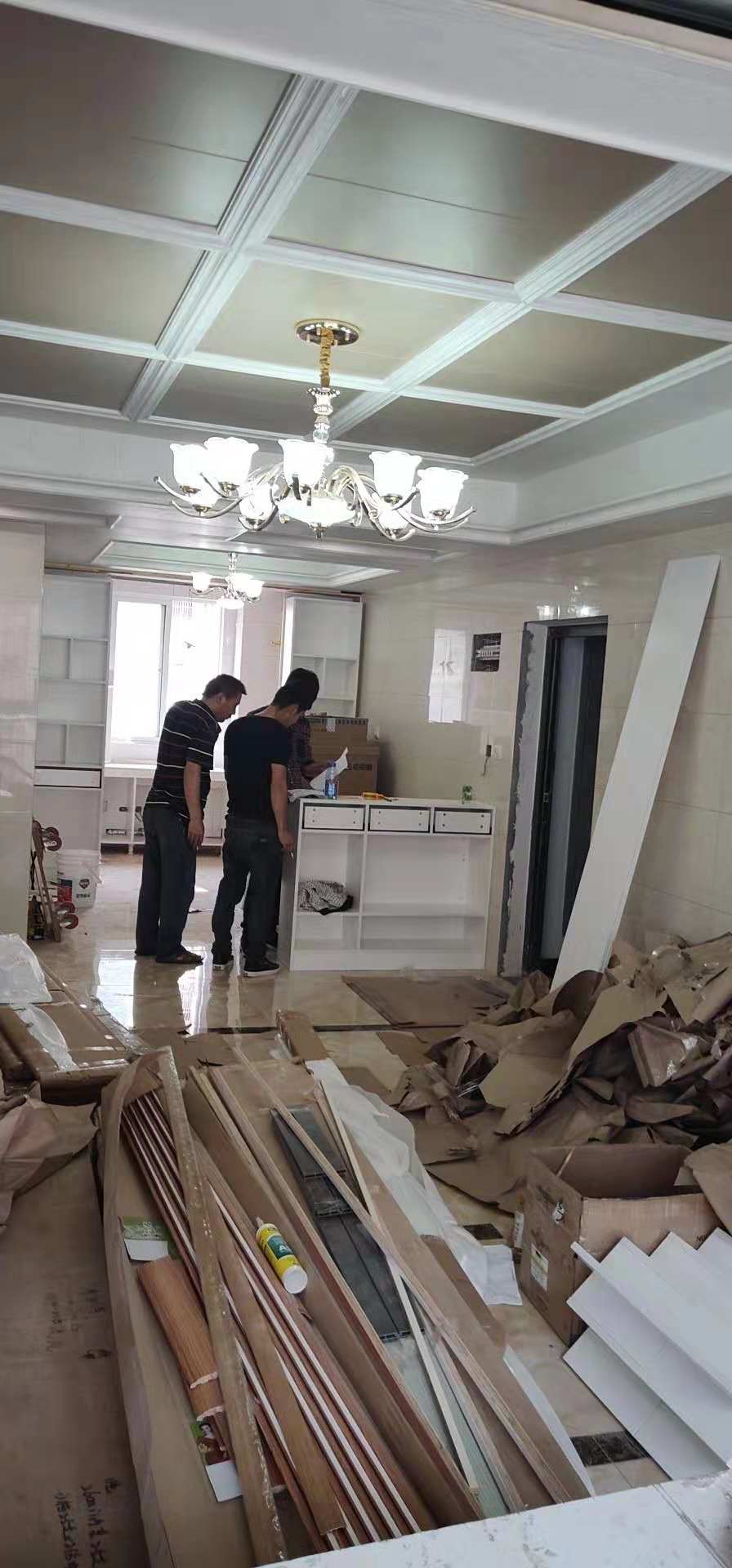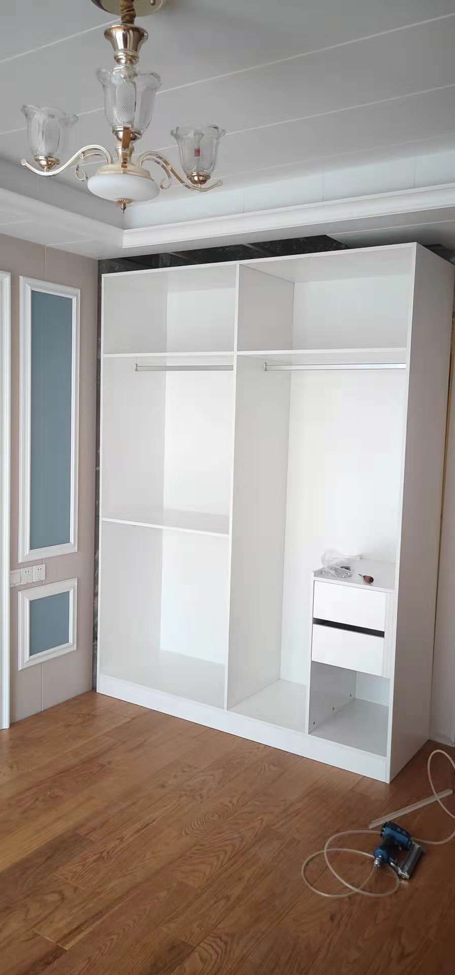 已經在安裝啦,簡歐風格的柜子,先把柜體裝好,剩下的柜門和移門基本明天就能完成啦
