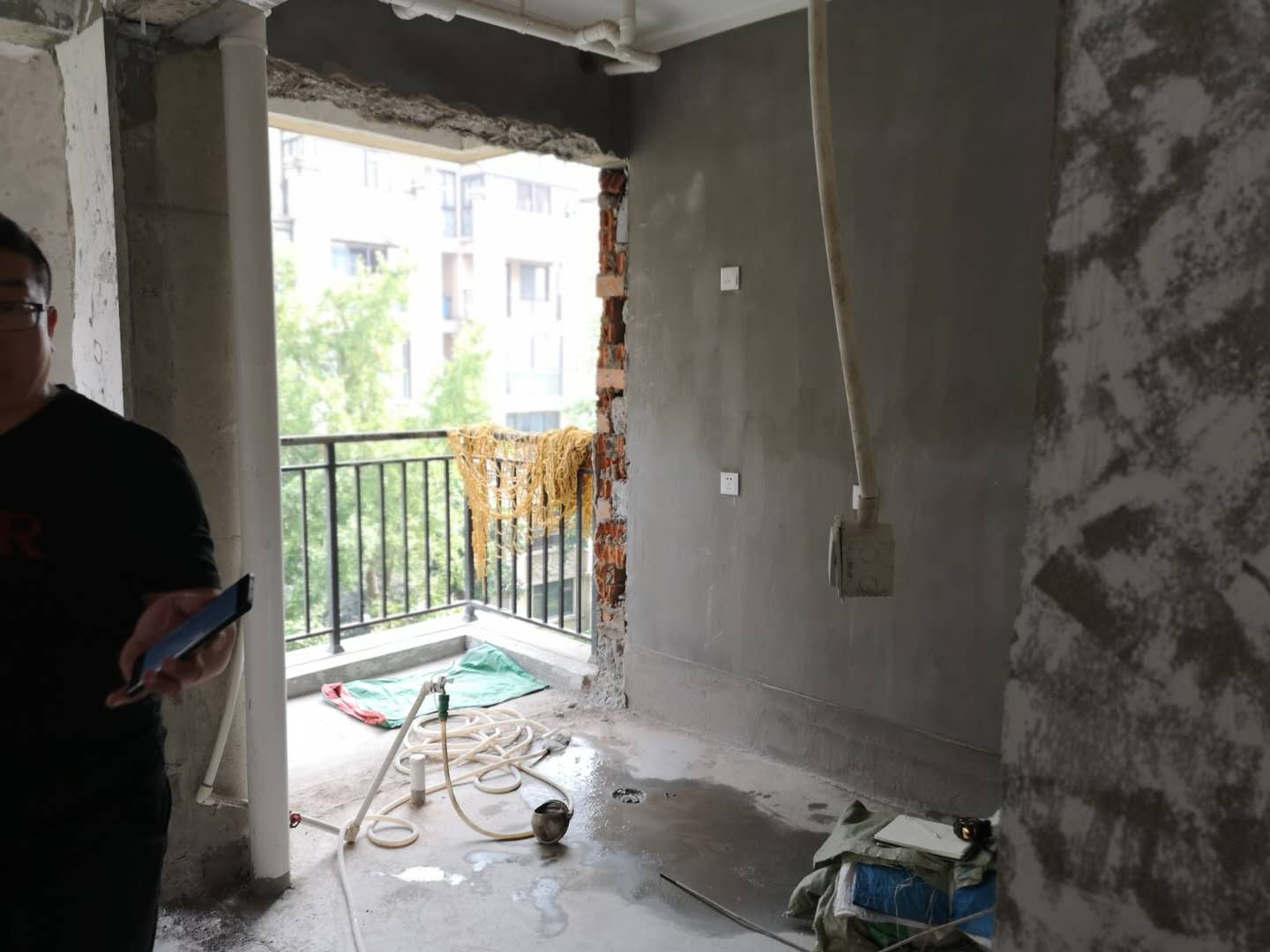 設計師上門測量啦!測量出水電位置,好為后面的定制家具安裝更為方便!