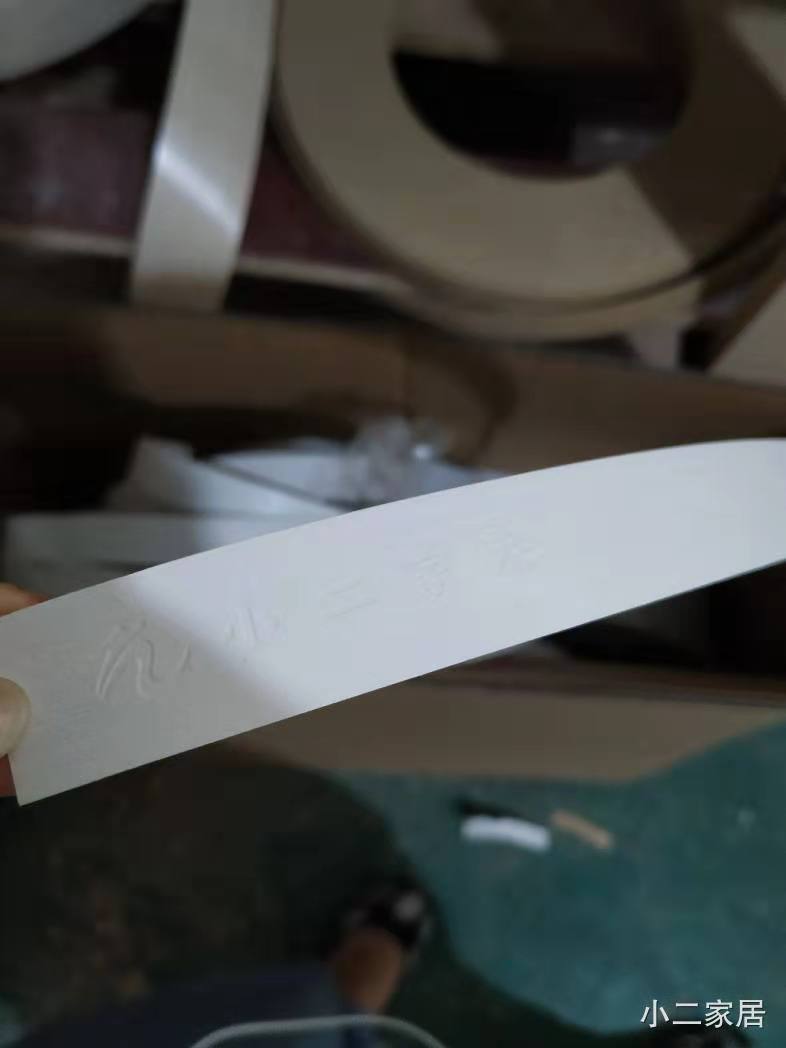 封邊采用的是熱容顆粒膠,封邊條上印有小二家居的logo!
